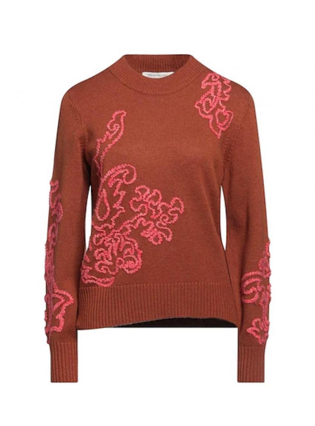 gestrickt, leicht gestrickt, Stickerei, glatte Farbe mit Applikationen, runder Hals, lange Ärmel, ohne Taschen