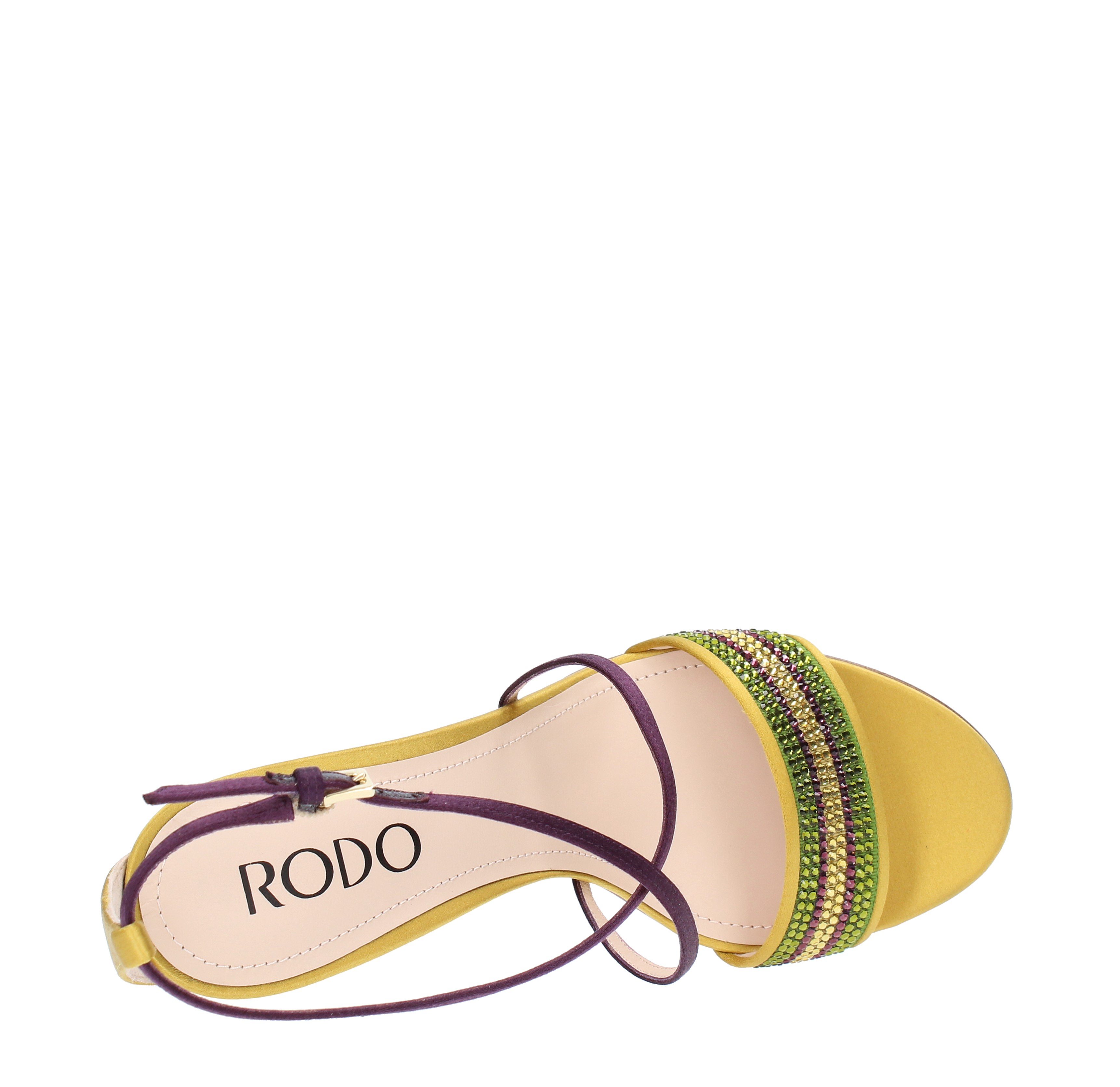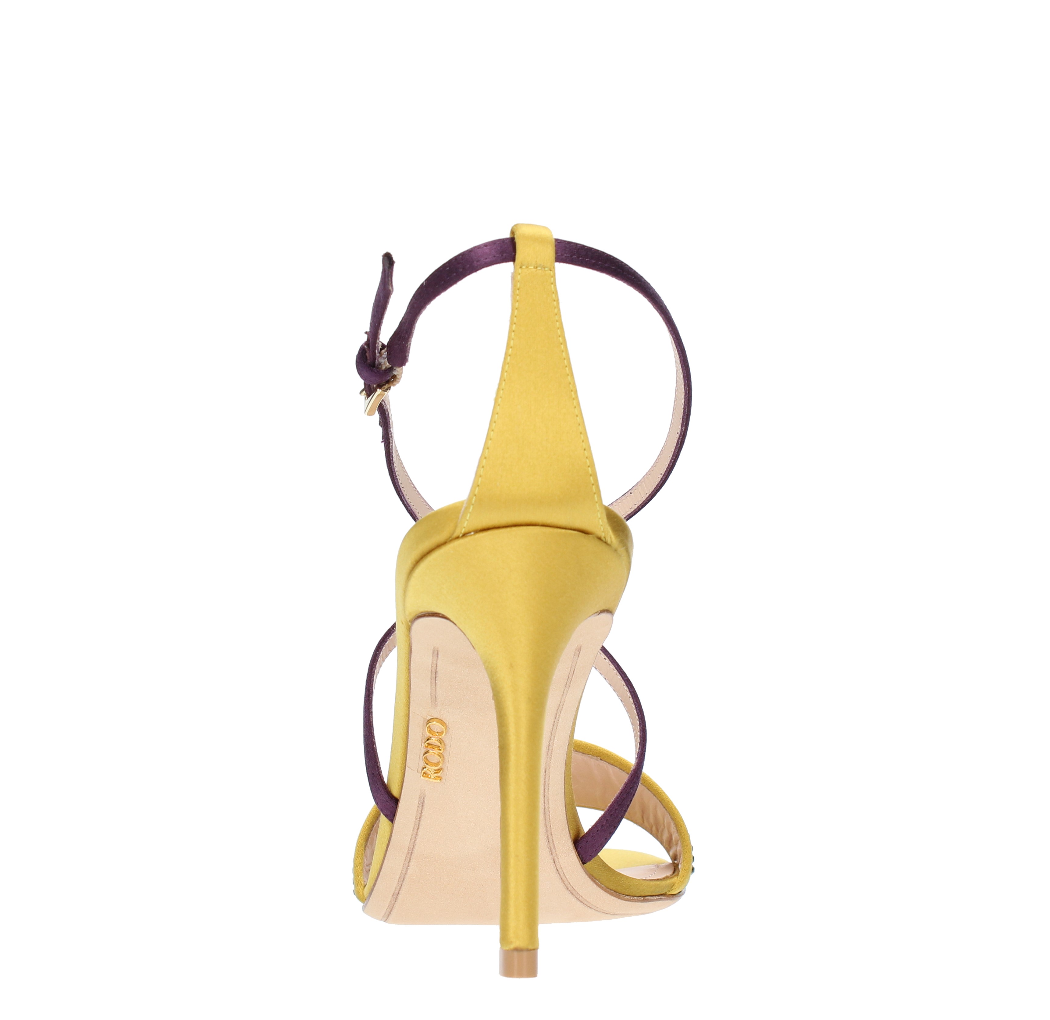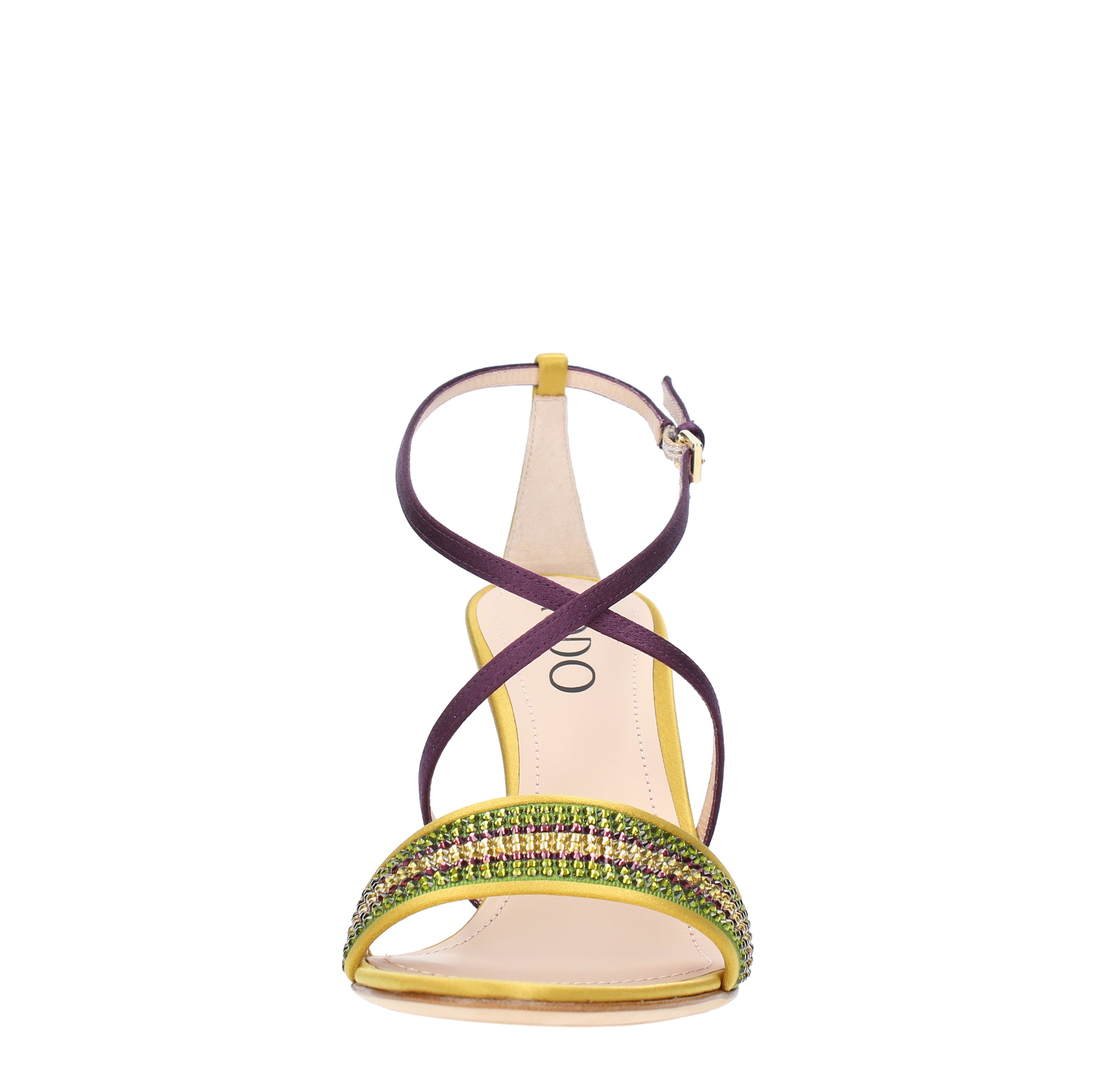Sandalenmodell S0219 aus Satin und Strasssteinen. Riemen mit Schnalle. Außensohle aus Leder. Innenmaterial aus Leder.