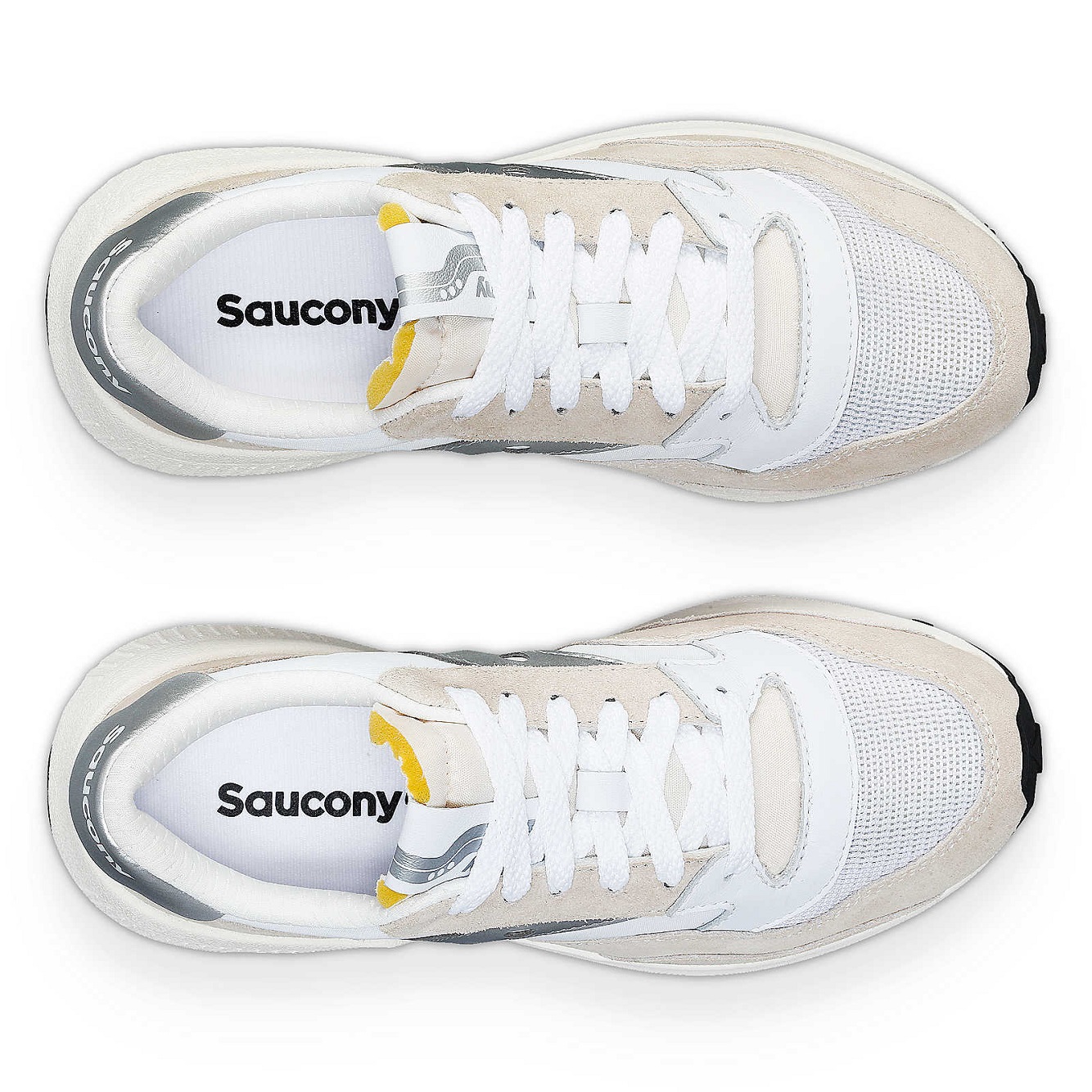 JAZZ NXT – WEISS/SILBER S60790-11 Upgrades sind immer eine Option. Der Jazz NXT erfindet eine Ikone der 80er Jahre neu. Er ist eine einzigartige Variante des historischen Läufers und kombiniert geschlossenes Mesh mit Schweinsleder und Leder, um das klassische Design aufzuwerten. Die dekonstruierte Schaumstoffzunge ist eine kleine Anspielung auf die Vergangenheit.