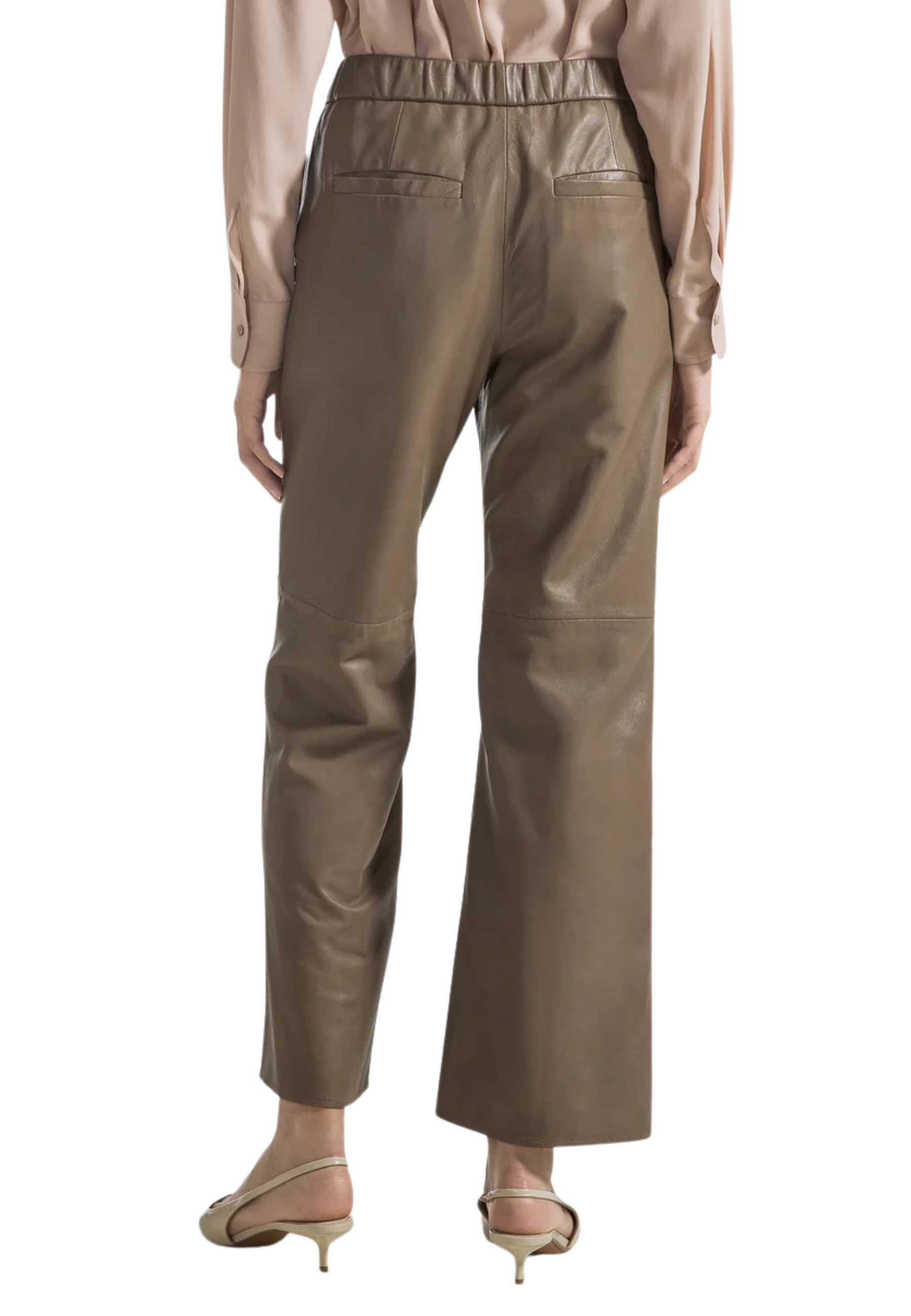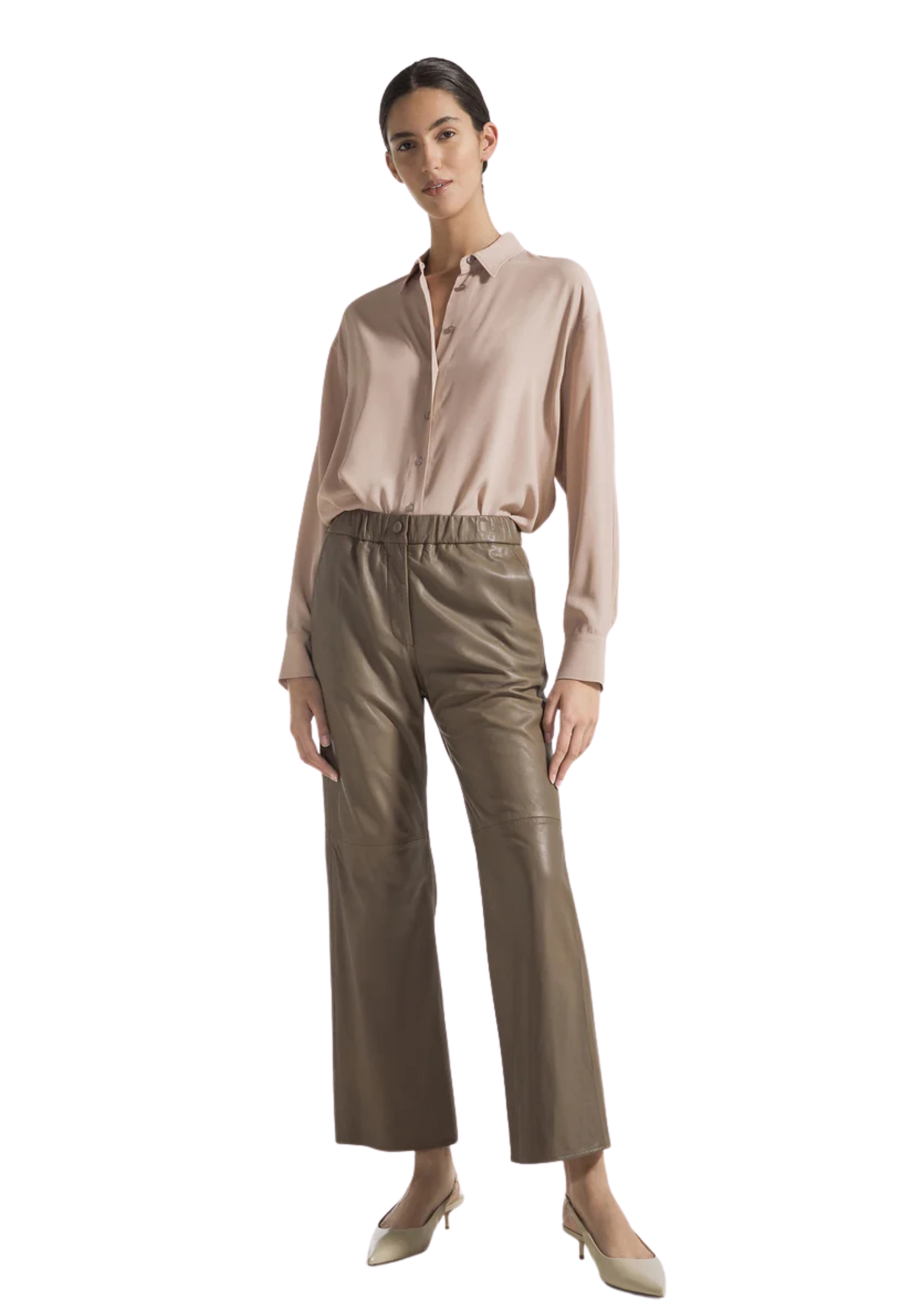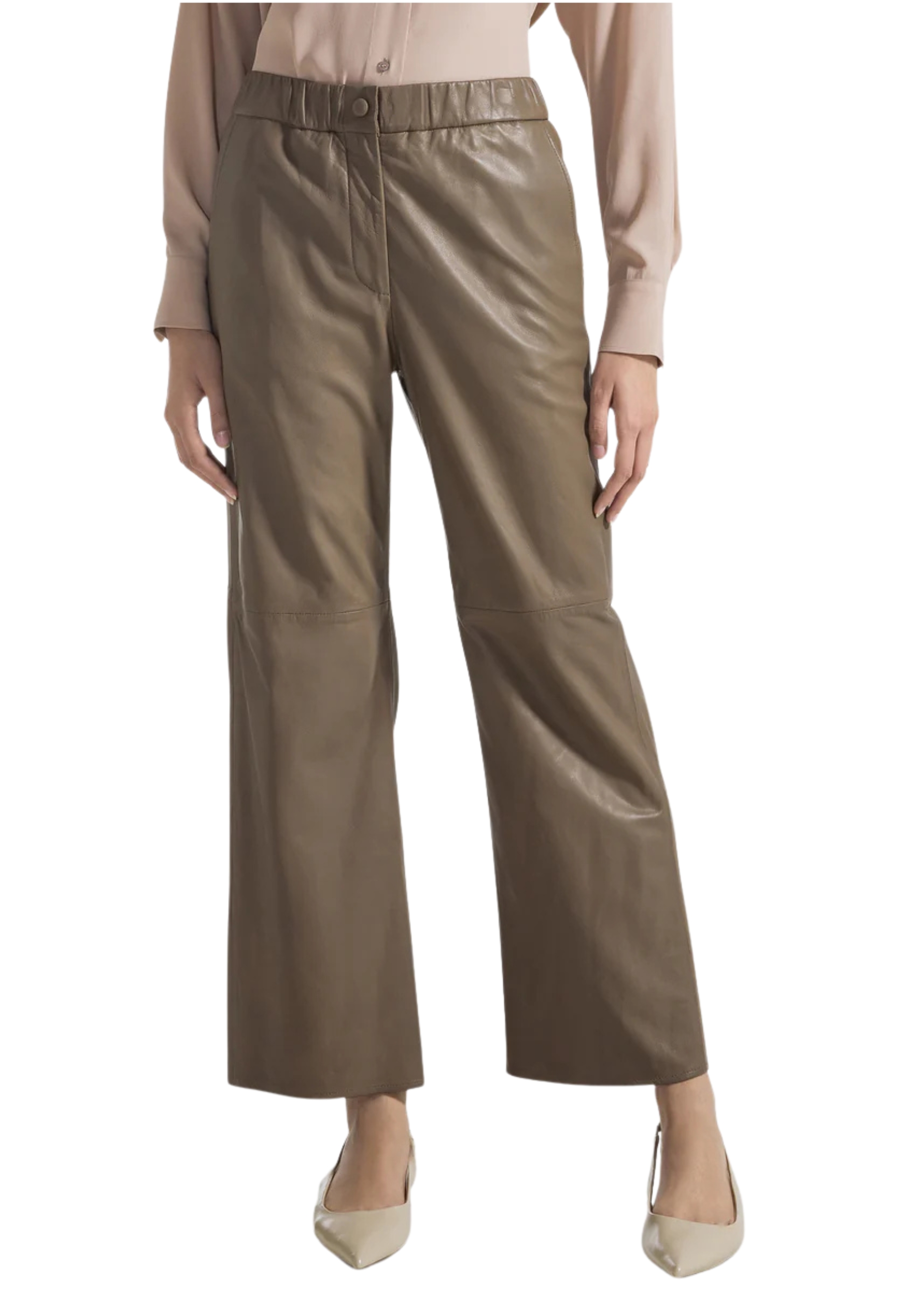 Weiche Lederhose mit elastischer Taille und Reißverschluss und Druckknopf bedeckt. Side America Tasche und Fadentasche auf der Rückseite. Reguläre Passform.