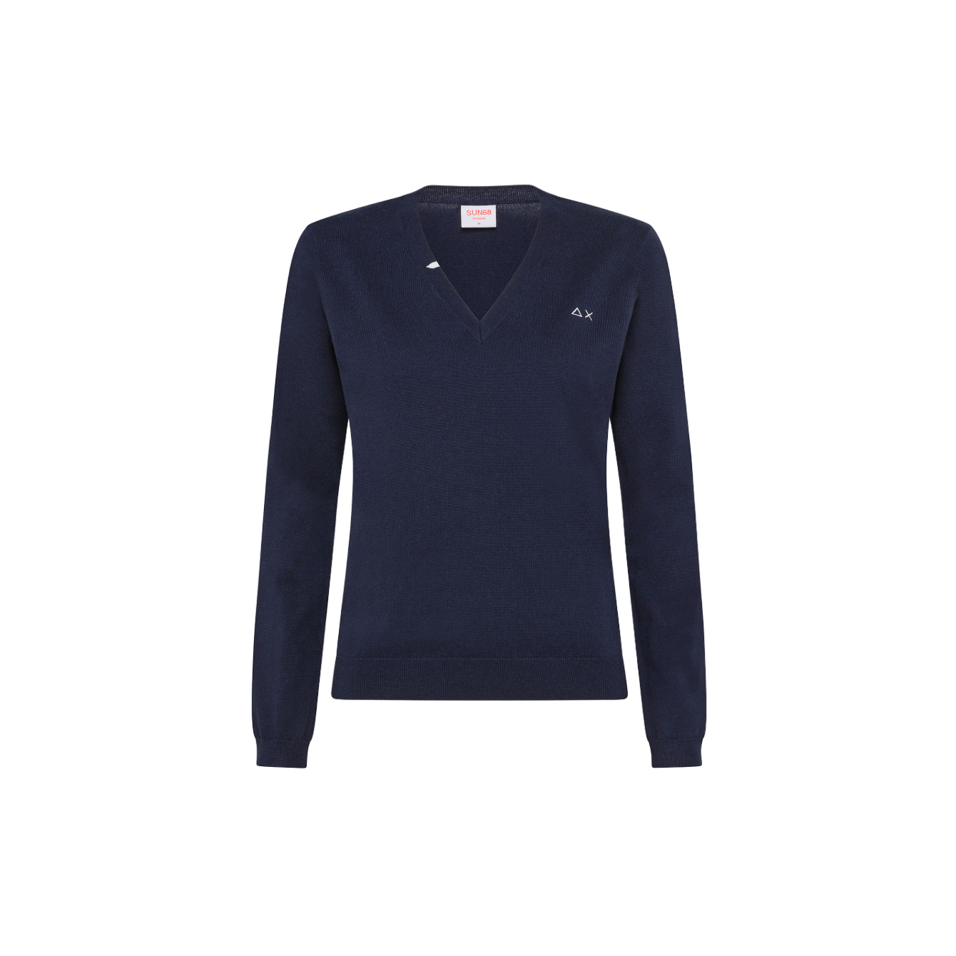 Sun68 - V Neck Solid L/s Navy Blue K30201