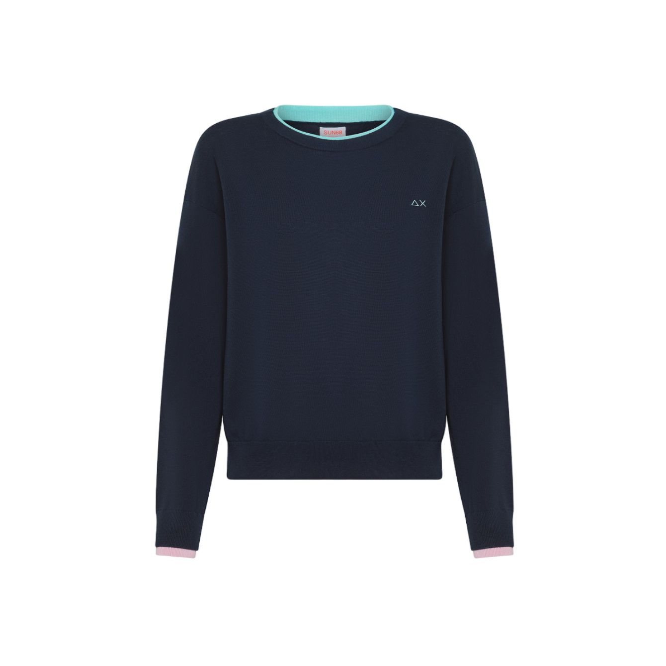 Sun68 - Doppelband Marine Blauer Pullover K34211