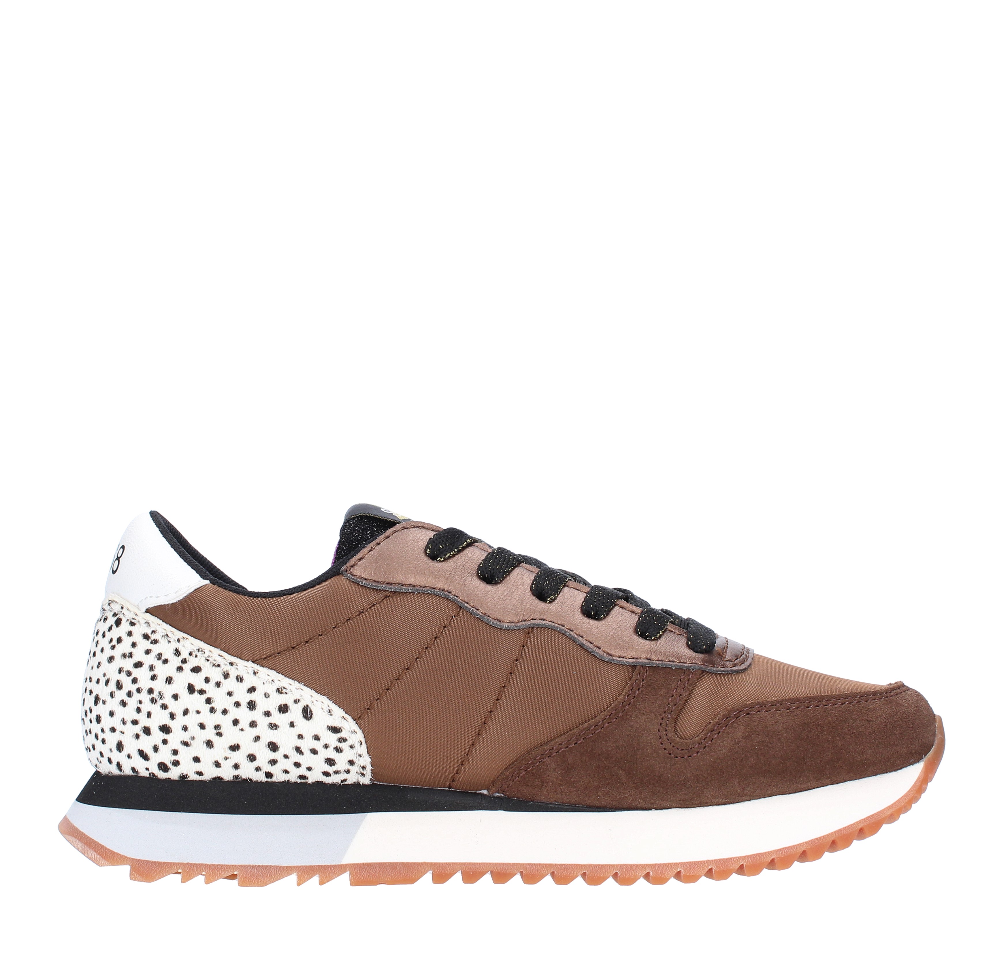 Z43211 Sneakers Modell SUN68 aus Wildleder, atmungsaktivem Stoff und Ponyfell. Vorderer Verschluss mit Schnürsenkeln. Gummiaußensohle mit Logo. Internes Obermaterial aus Stoff mit Logo-EVA-Zwischensohle, die Stabilität und Dämpfung garantiert.