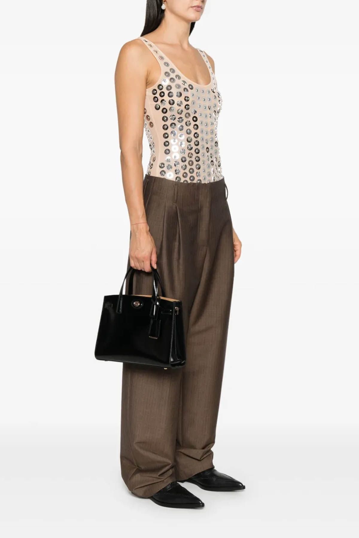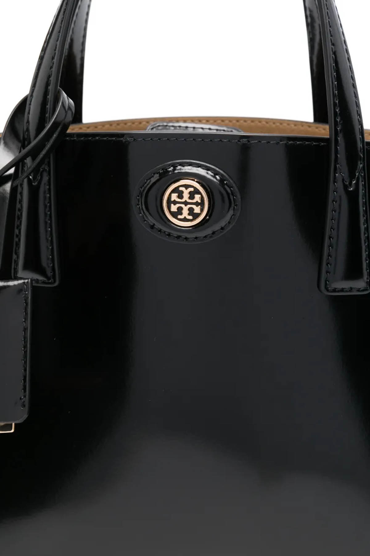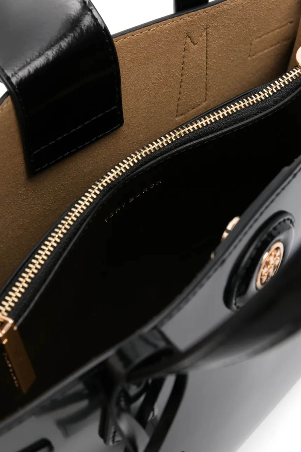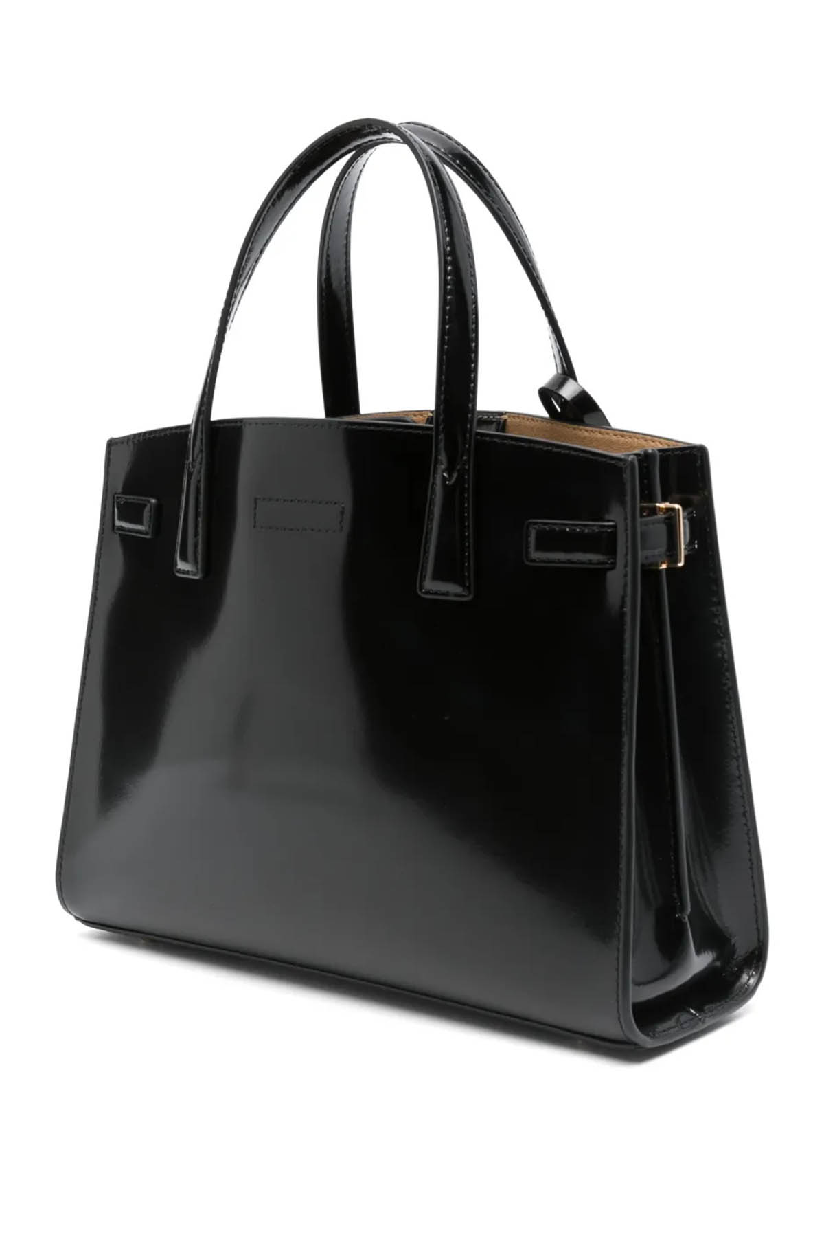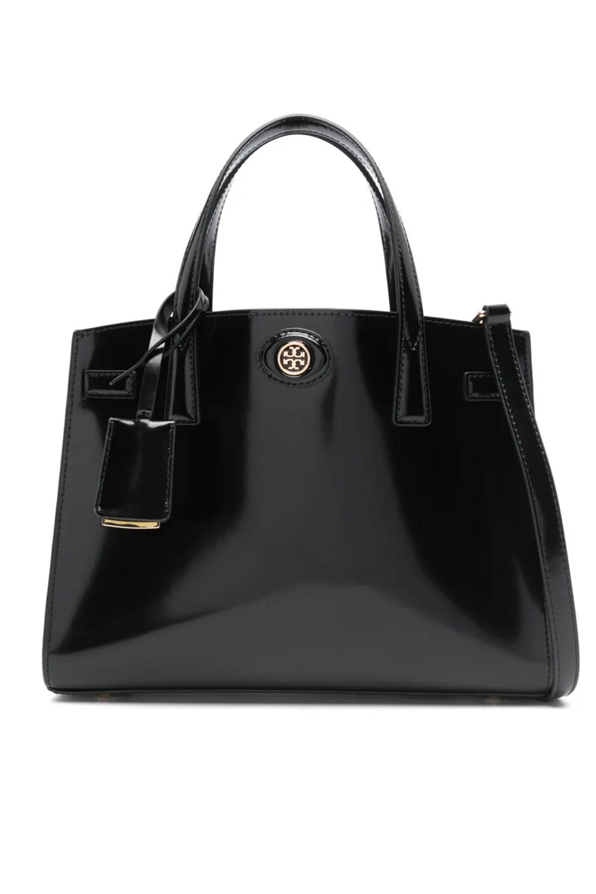 Ledermodell, glänzendes Finish, Verschluss mit Frontklappe, zwei Griffe, verstellbarer und abnehmbarer Schultergurt, charakteristisch Doppeltes T-Muster, Schlüsselanhänger, geteiltes Innenfach, Innentasche mit Reißverschluss, Innenbalg, Integralfutter. Zusammensetzung Leder lackiert 100%