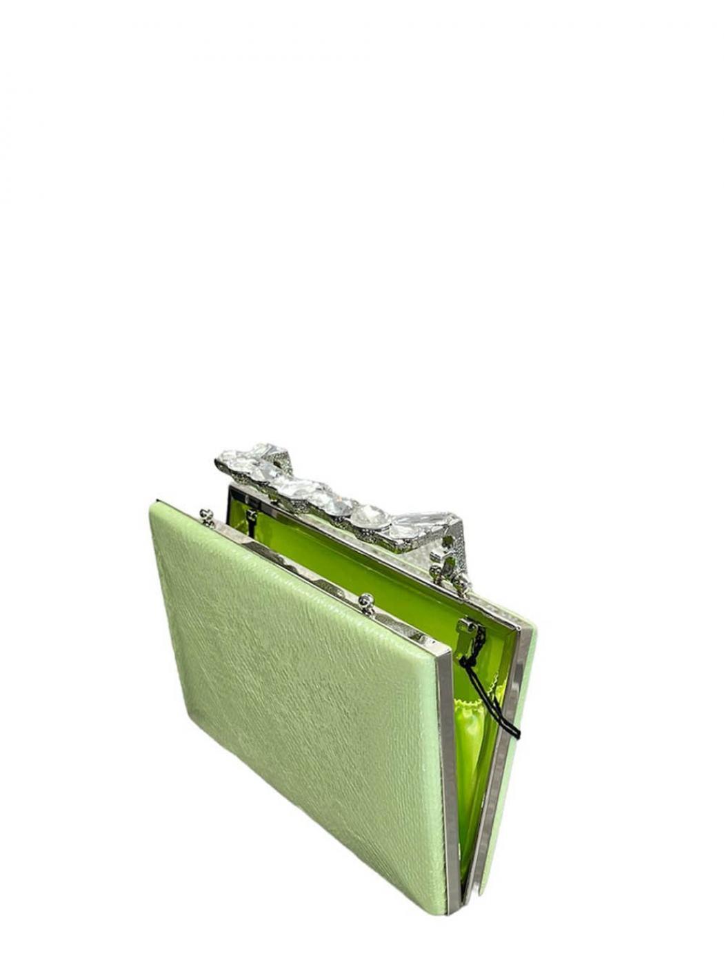 Beschreibung: Kupplung in nassem Effekt Stoff mit Juwel Verschluss. Größe: W20cm x H13cm x D4cm