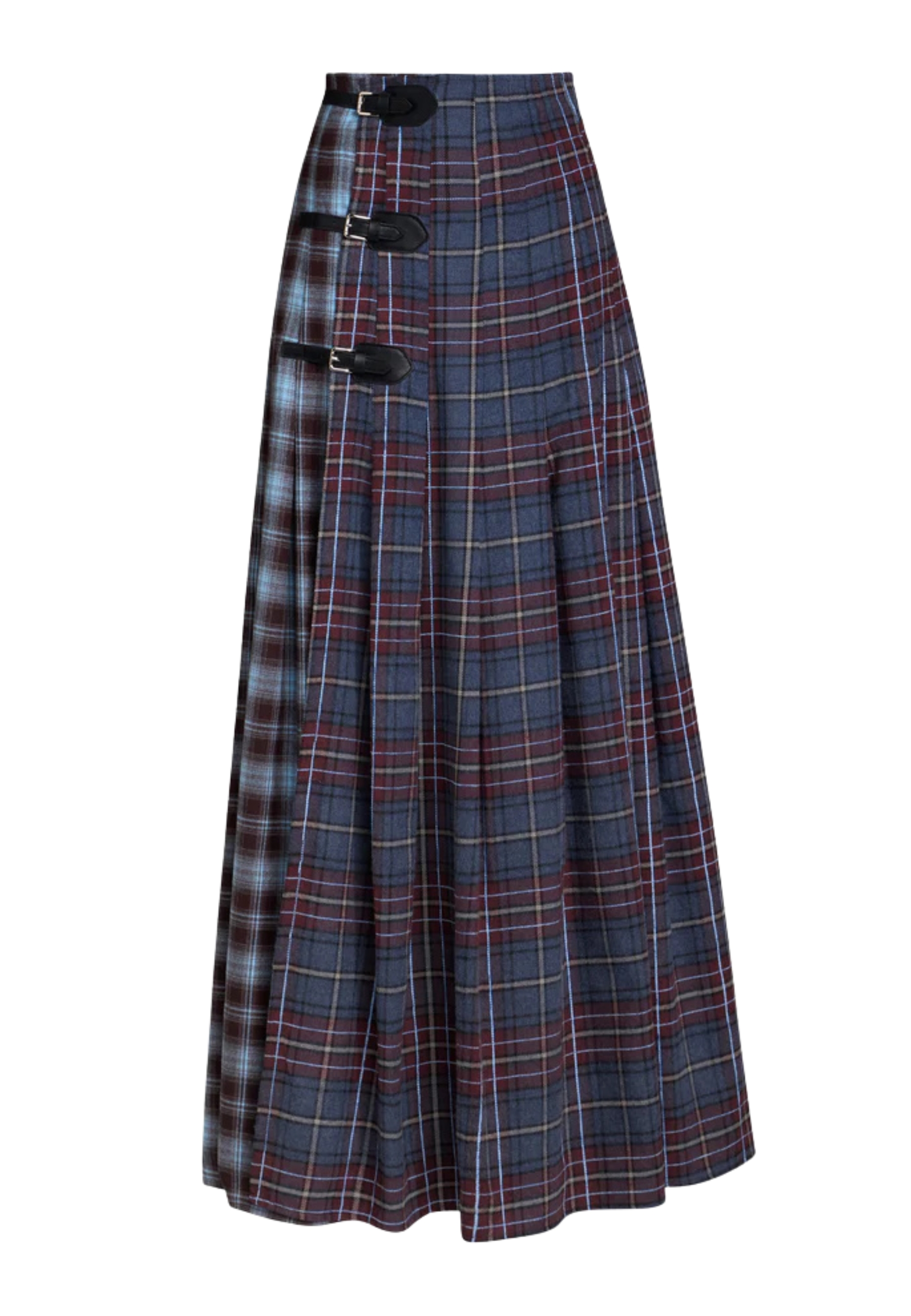 Mittlerer Rock mit zweifarbigen blauen, schwarzen und burgundigen Gemälden.