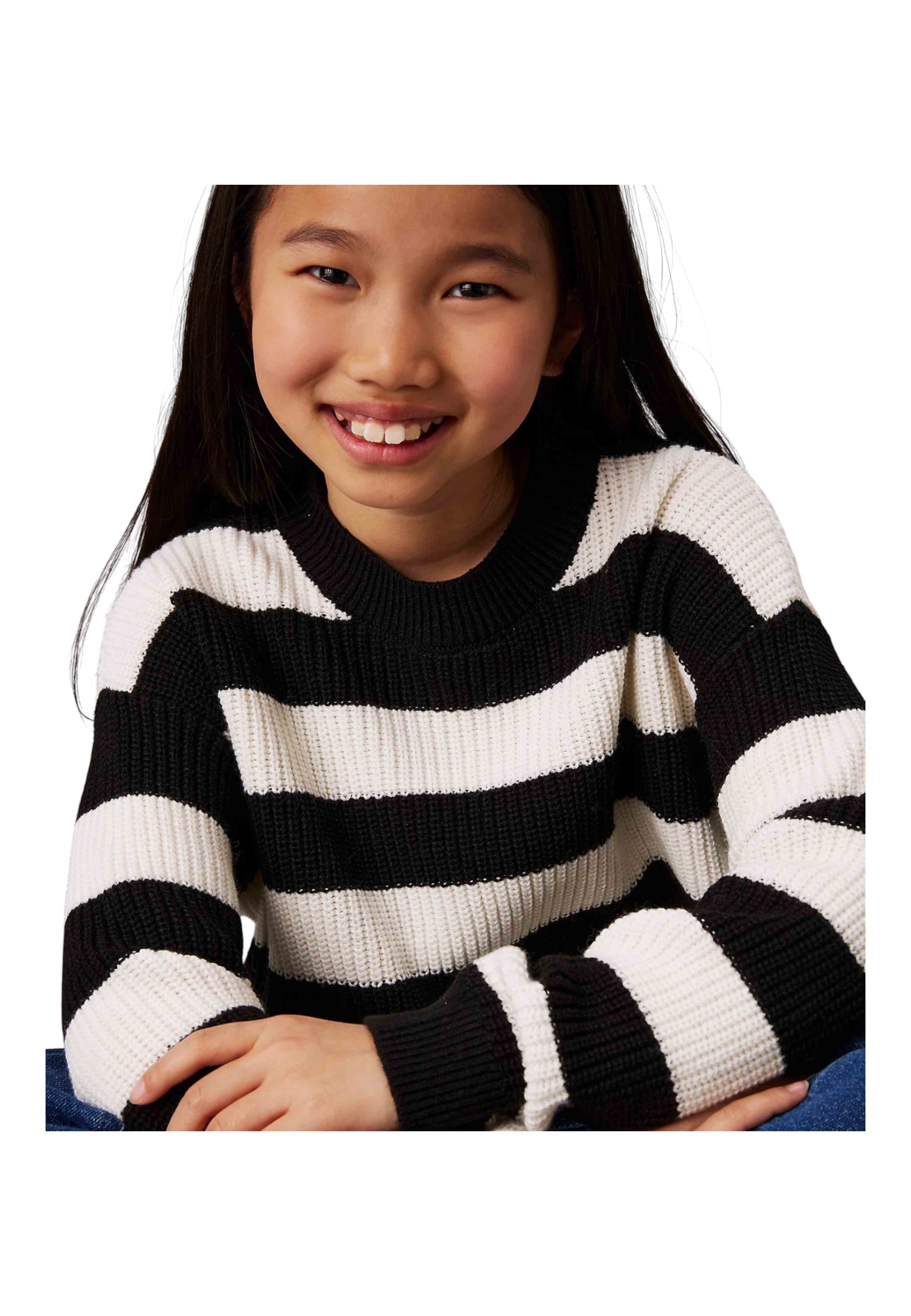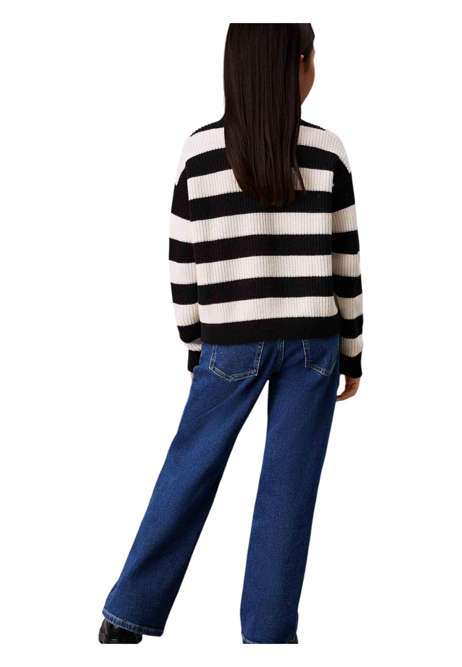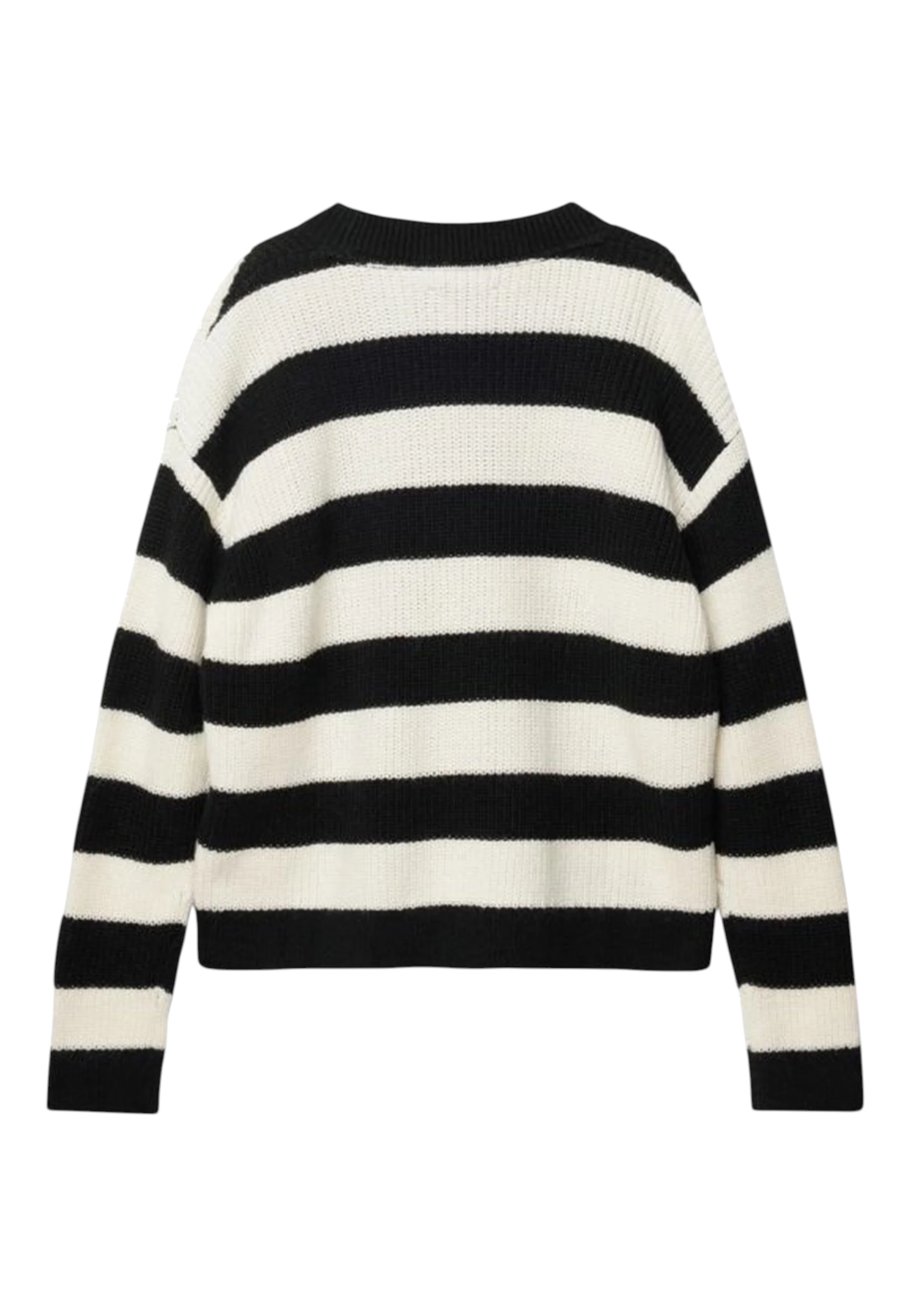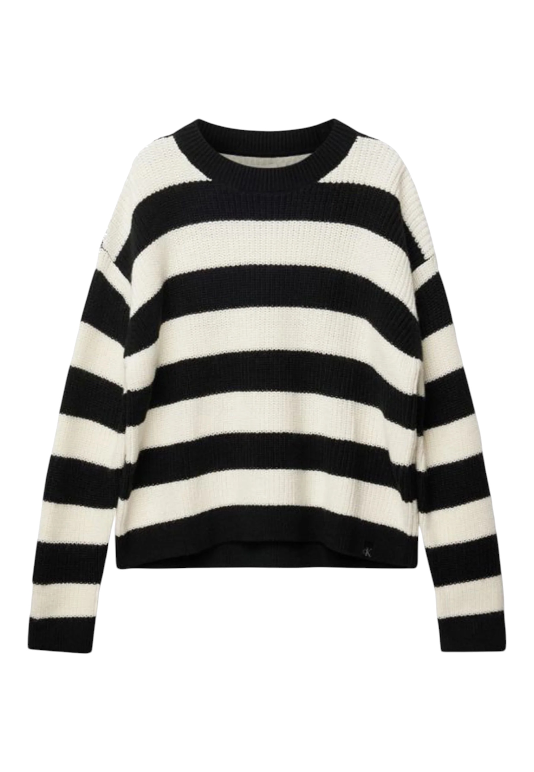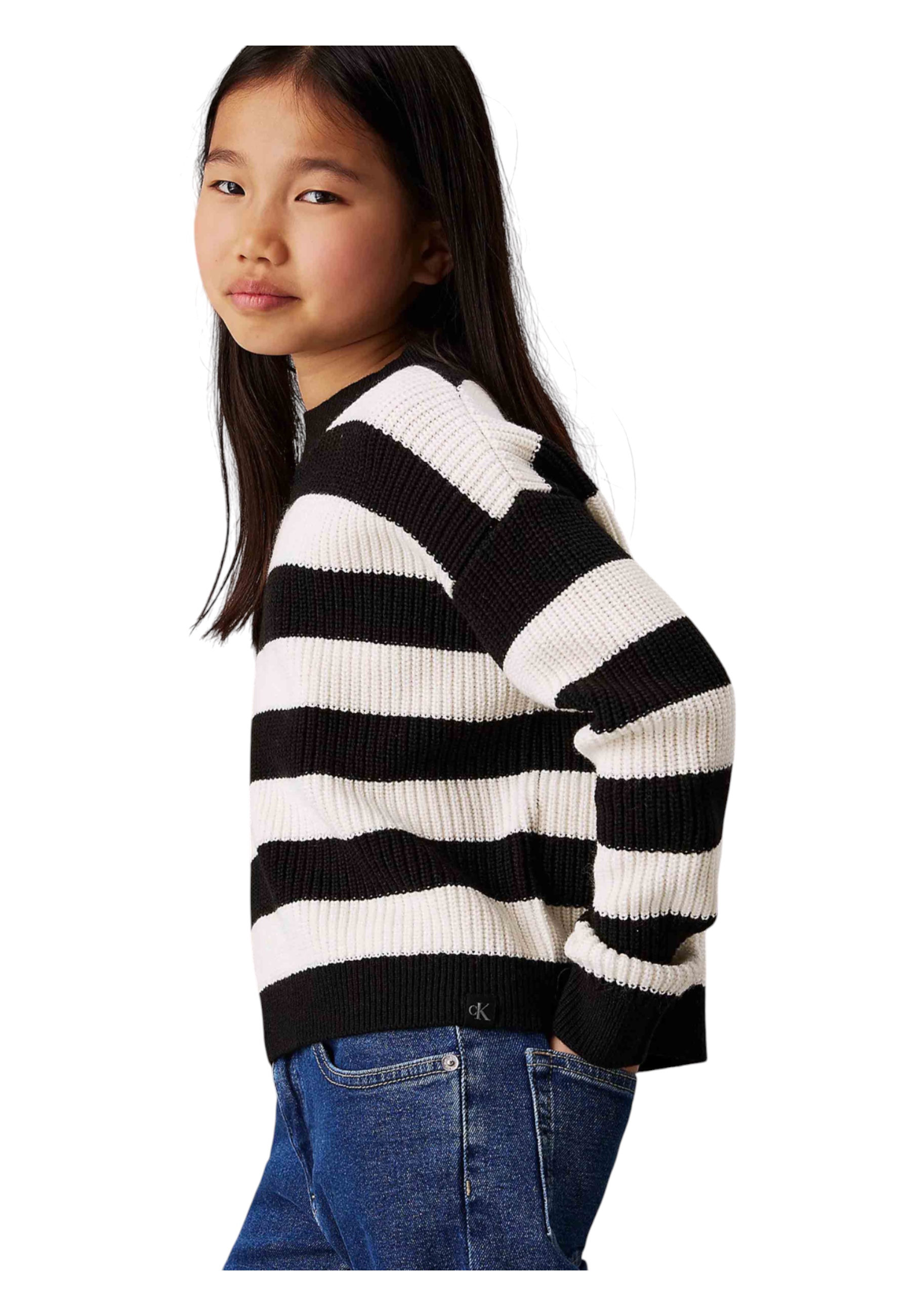Round neck knit in pattern Rigata. Long sleeve made of fine wire with ribbed bottom and wrists Follow carefully the washing instructions on the label inside the garment.