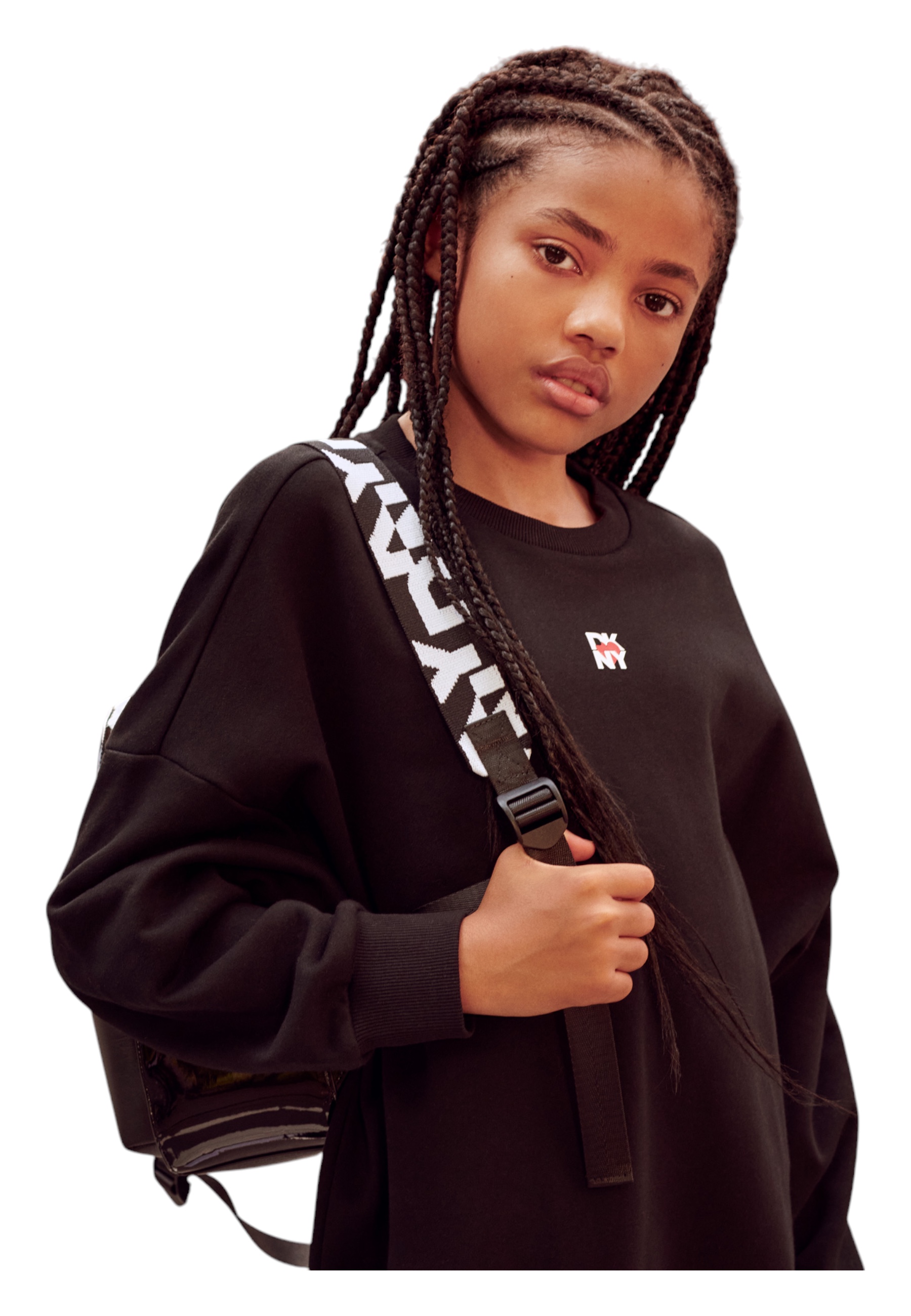 The long sleeve dress Dkny, inspired by the adult collection and embellished with a signed illustration, combines elegance and ease. Coming from the "Heart" collection, it consists of felpato dress with popeline cutout and is made of 100% cotton.