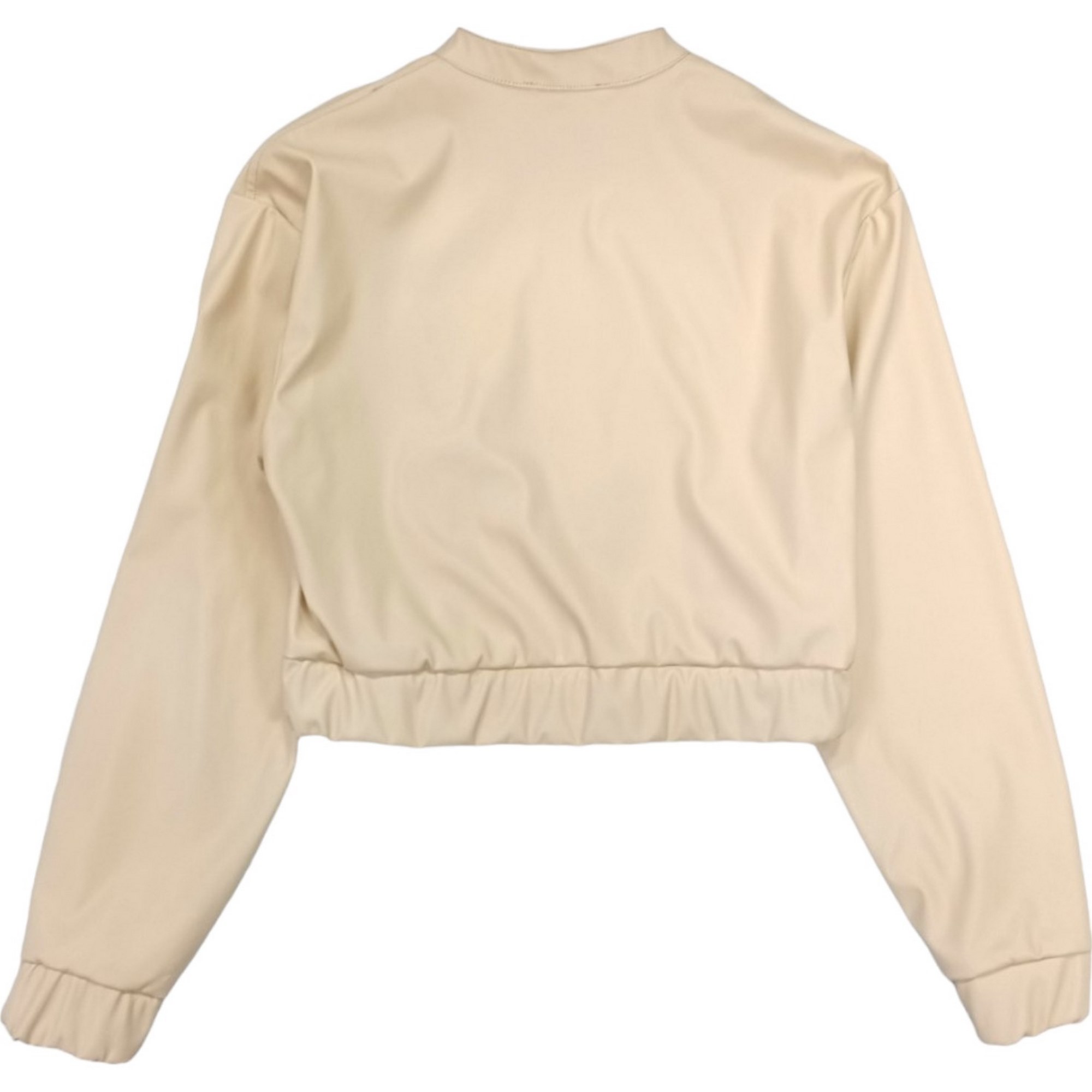 Beige leather bomber, short model with elastic waist.