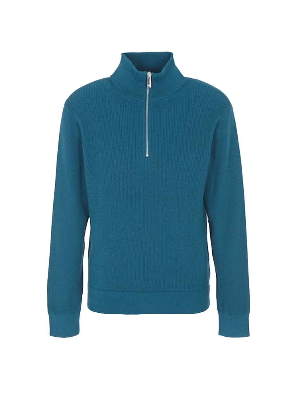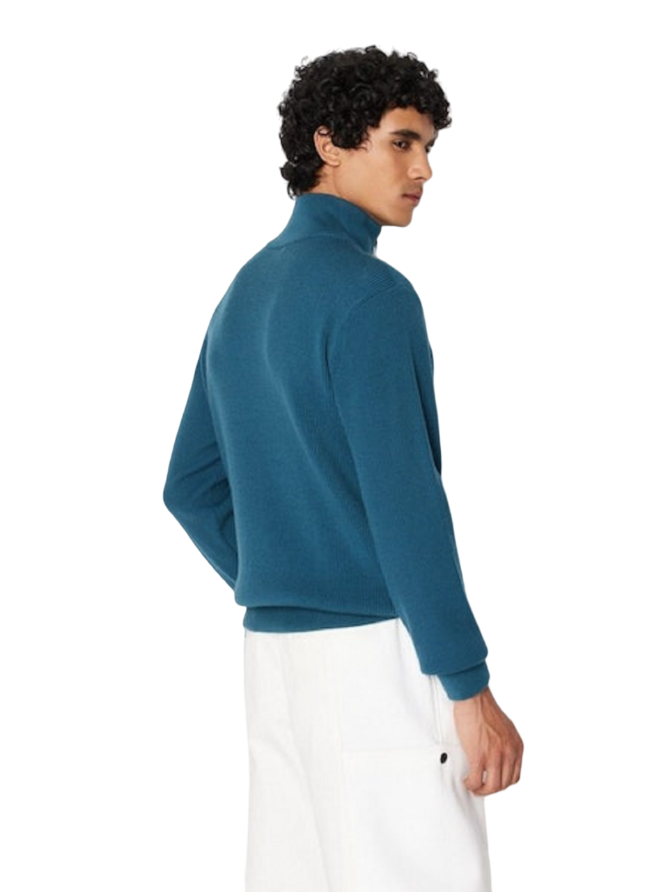Armani Exchange men's sweater in blue wool blend. - Regular fit.- Short zip closure.- Sleeves and bottom edge finished with a comfortable elastic rib.-