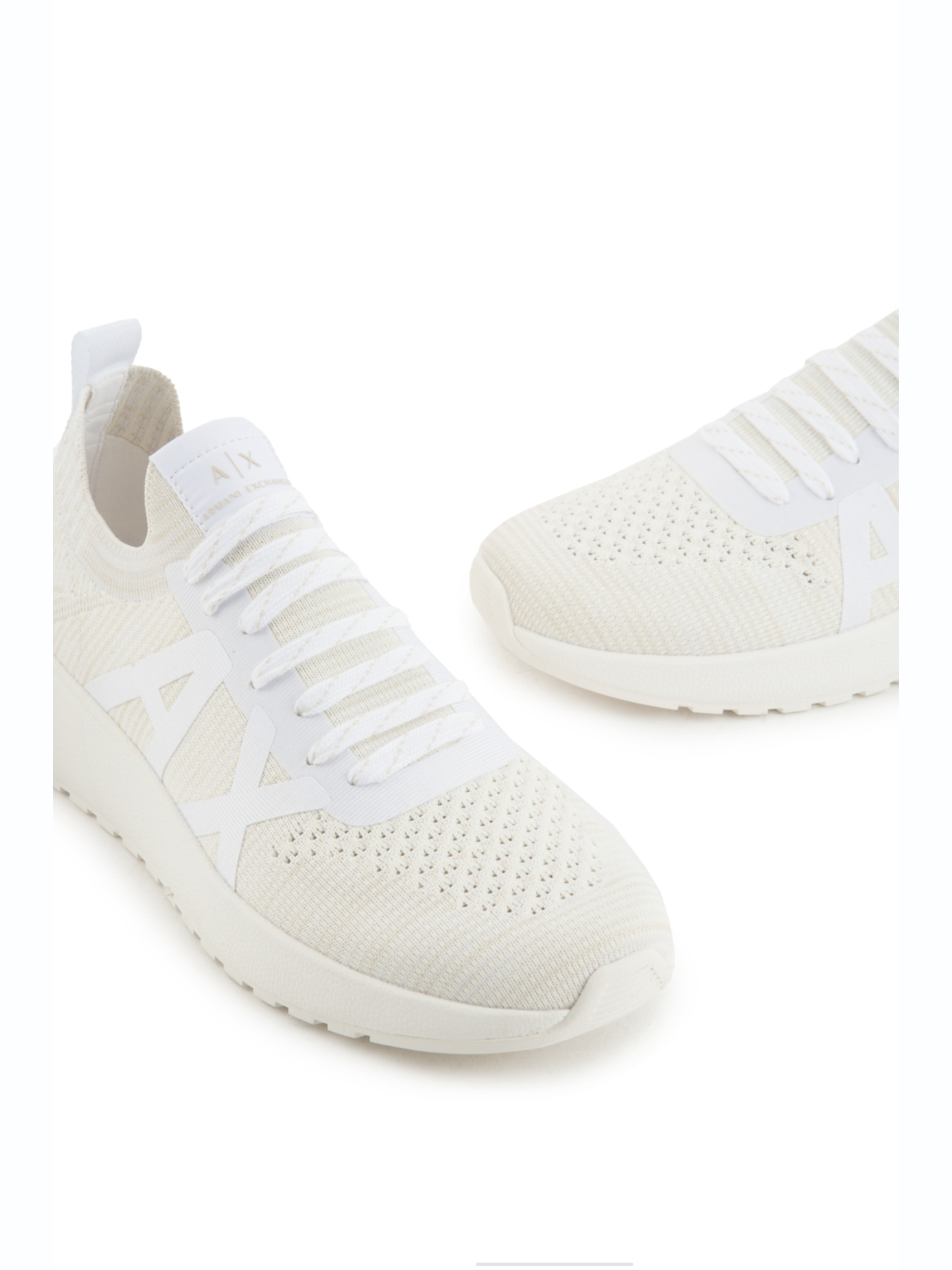 Comfortable Armani Exchange shoe, sock fit. Fresh and stretchy. Brand Armani Exchange Color: White and green Made in Product Name XUX207 Index Material & Care Upper Leather/-Shiny leather