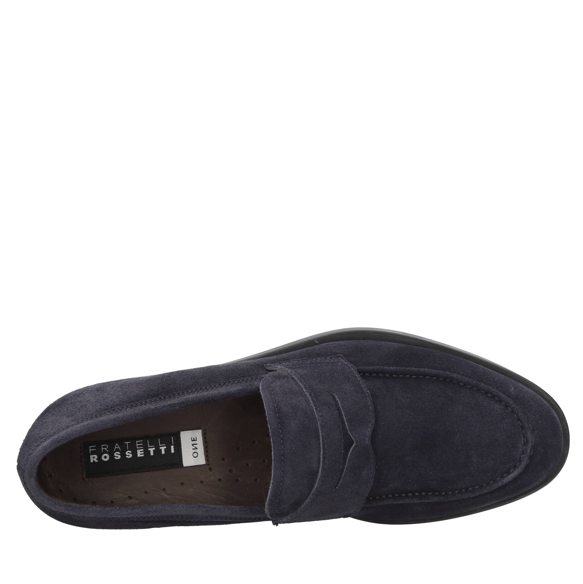 Suede moccasins. Rubber outsole. Leather inner upper.