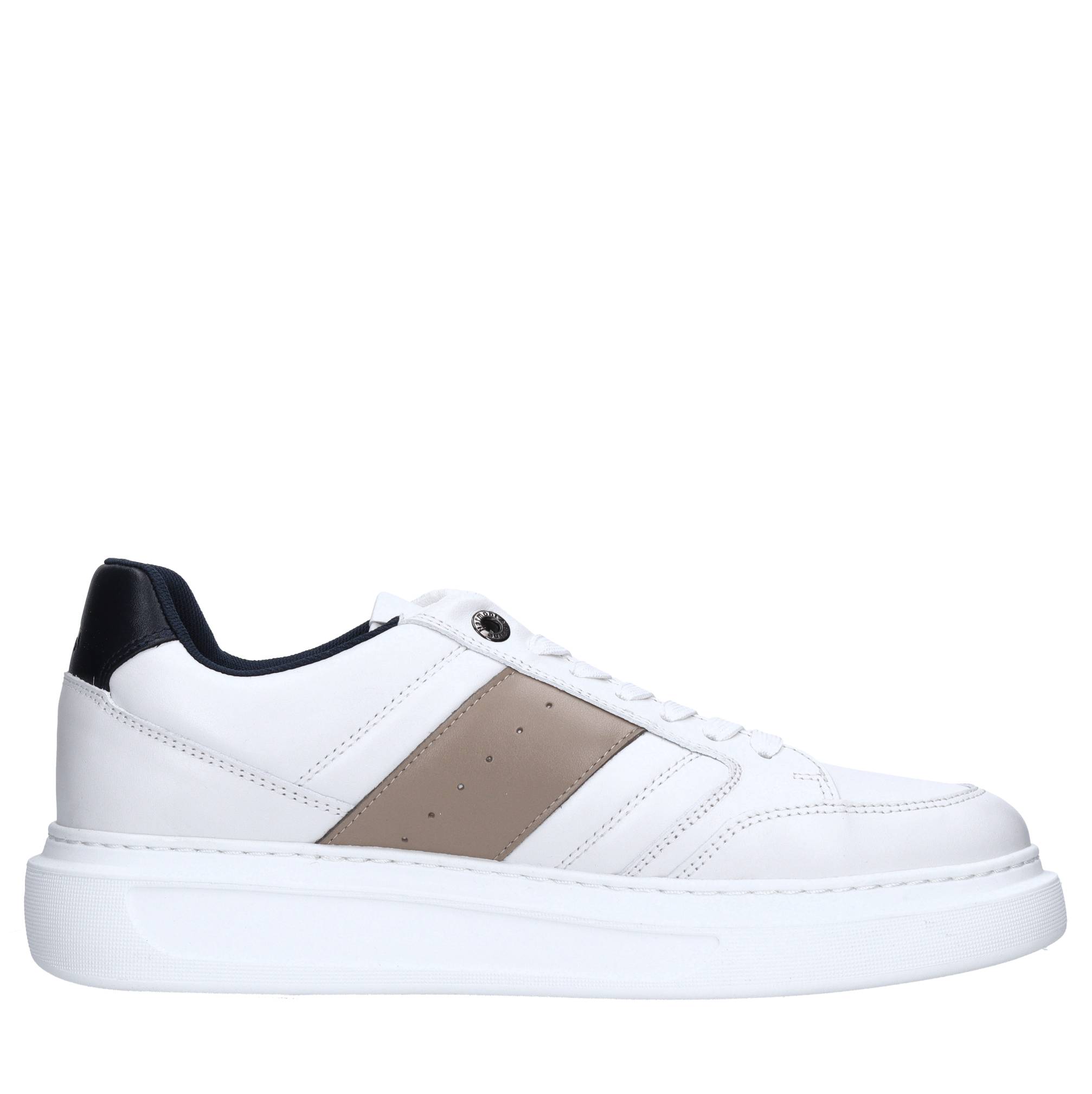 Leather Sneakers. Faux leather and fabric upper. Rubber outsole.