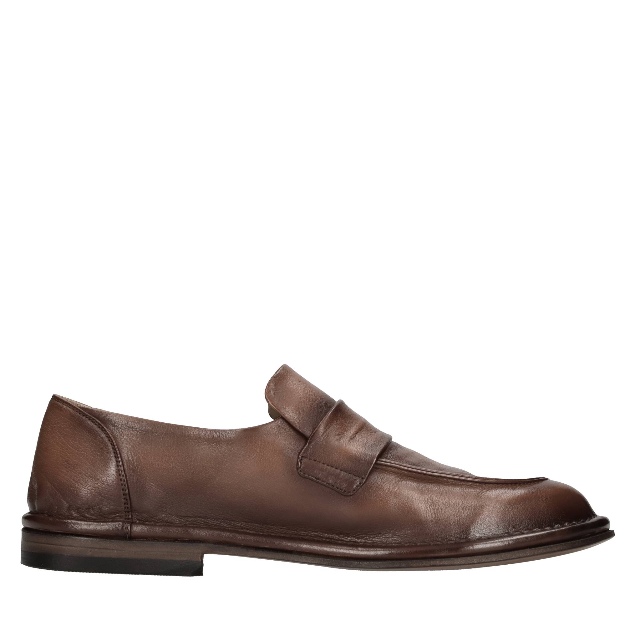 Moccasins in leather. Outer sole in leather and rubber with logo. Inner upper in leather with logo.