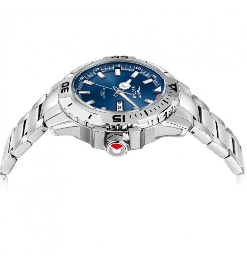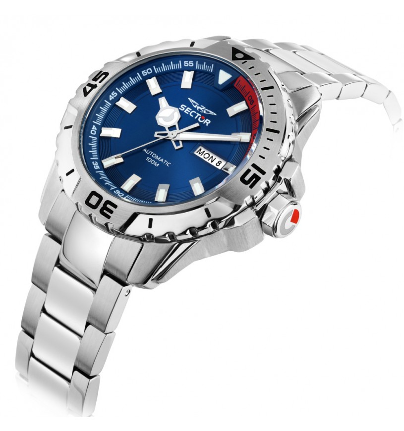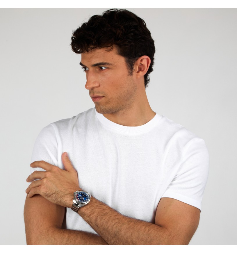Case: Steel With Numerated Iron, Blue Dial With Date Display, Sapphire Glass
