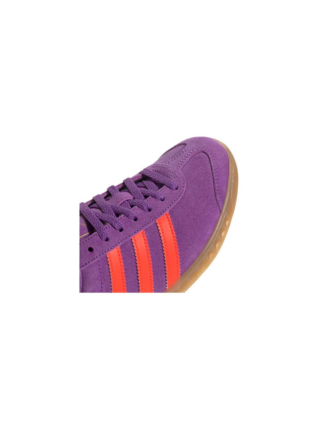 The return of an icon. In 1982, the adidas Hamburg debuted as a visionary model. Today they are ready to create new paths and revolutionize the lifestyle scene. Made of premium leather, they have a T-point with double seam, a reinforcement on the heel and 3 contrasting strips that reinvent an old-school look in a contemporary key. The low-profile rubber sole with shaped side panels and honeycomb grip ensures maximum stability while walking through the city streets. For over forty years, Hamburg is a must Adidas Originals thanks to their sporty and versatile vibe. Pair with a pair of jeans or trousers, or a skirt, and complete your outfit in pure adidas style. Regular fit. Closure with laces. Leather upper. Lining in synthetic material. Rubber sole.