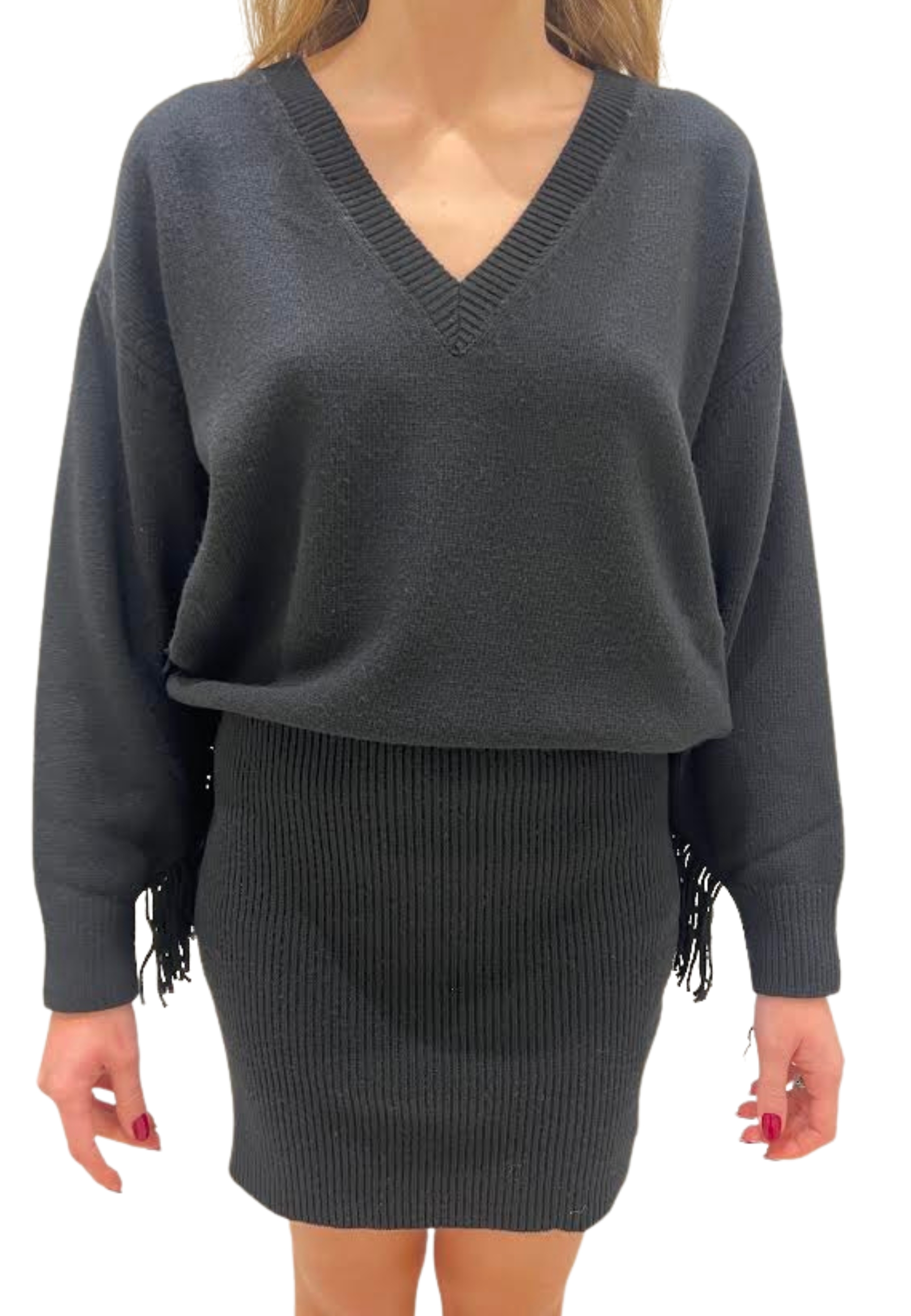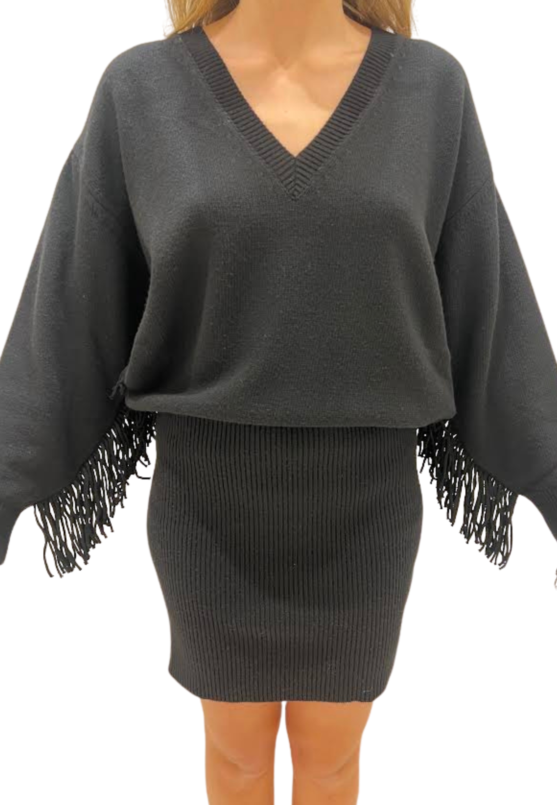 Short dress tight under long sleeve And fringe