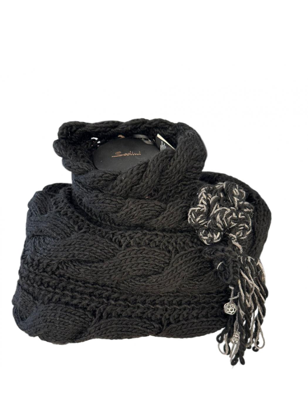 Made in Italy braided wool cover collar Alessandra Cruciani with application on one side.