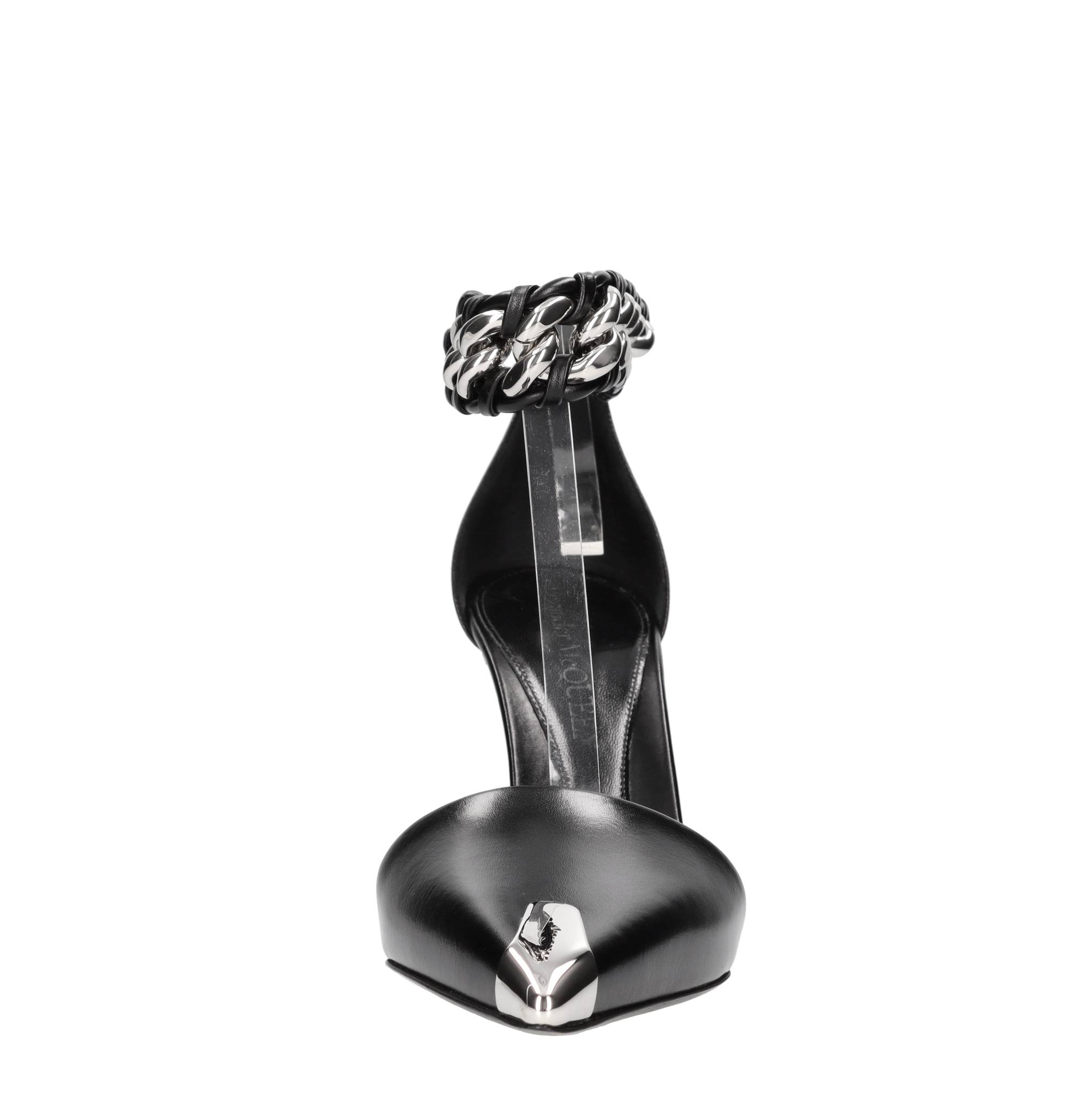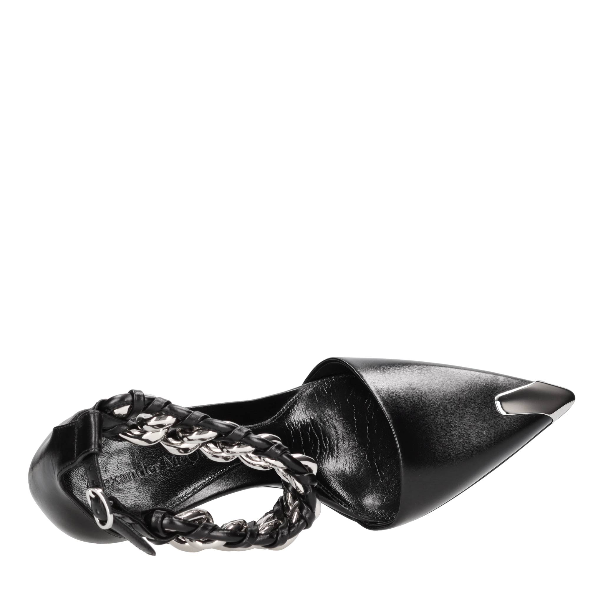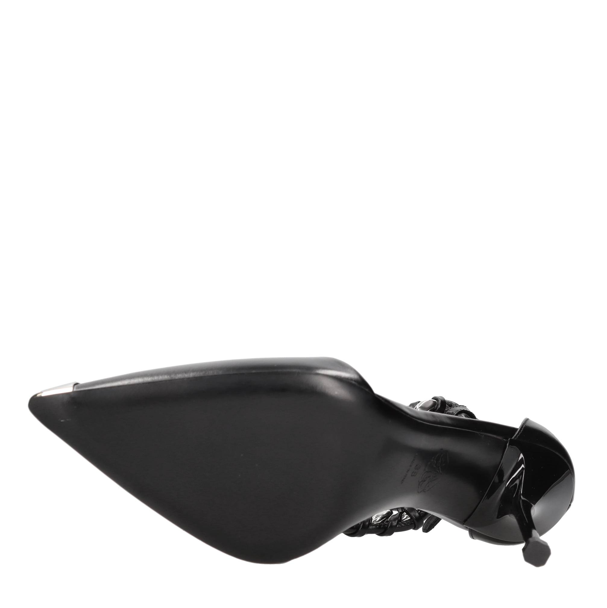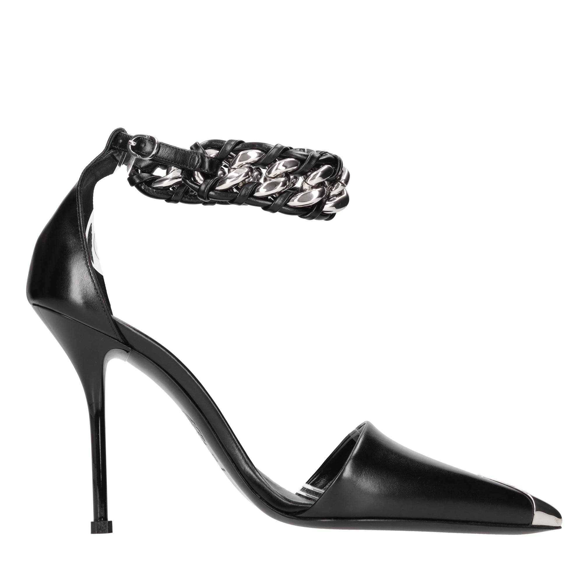 Leather pumps. Leather upper. Leather outsole. Silver chain and toe details.