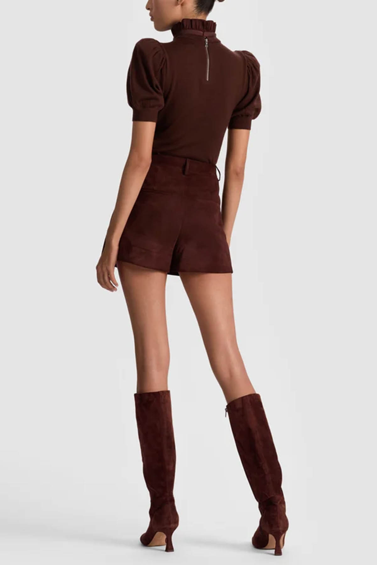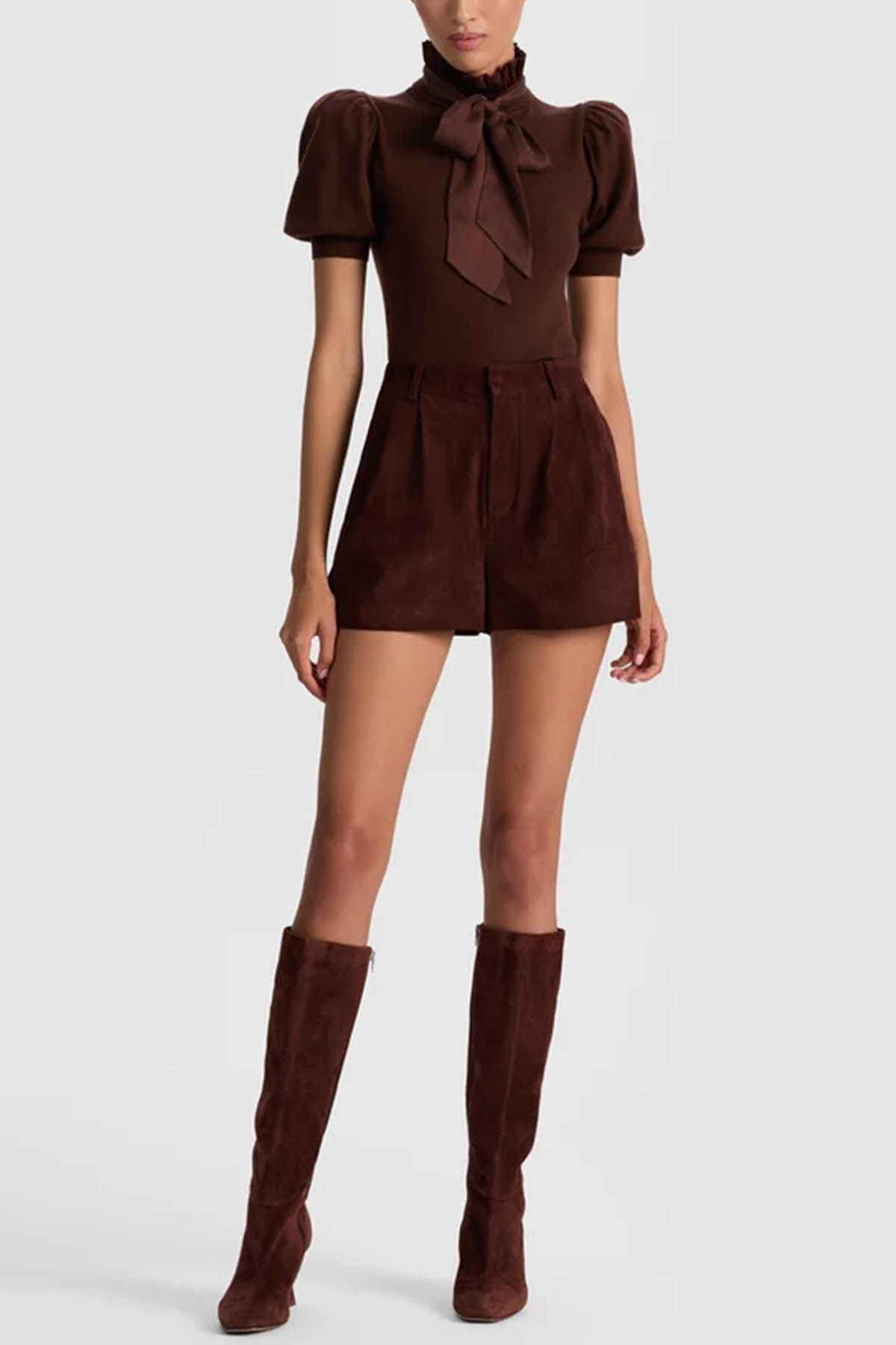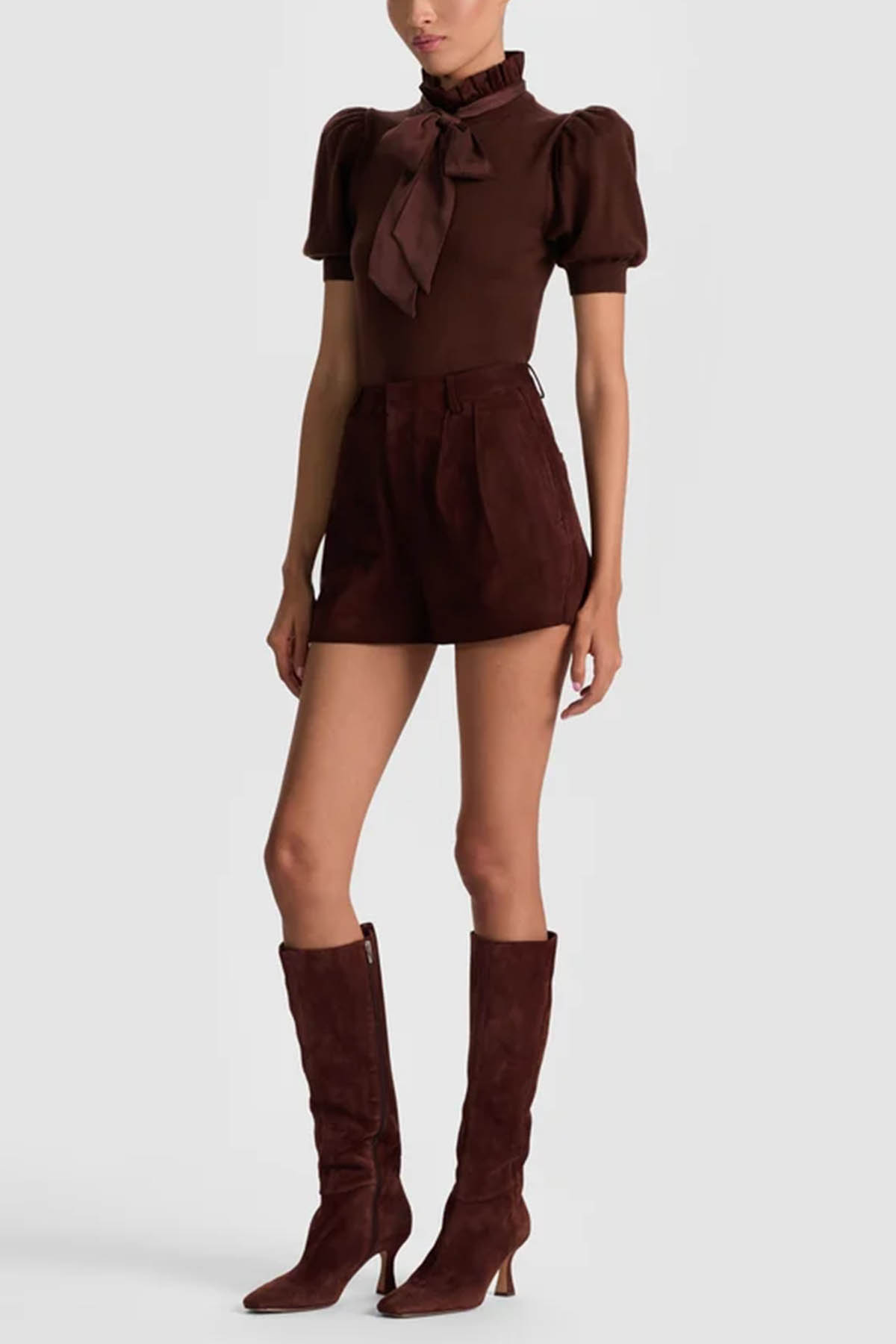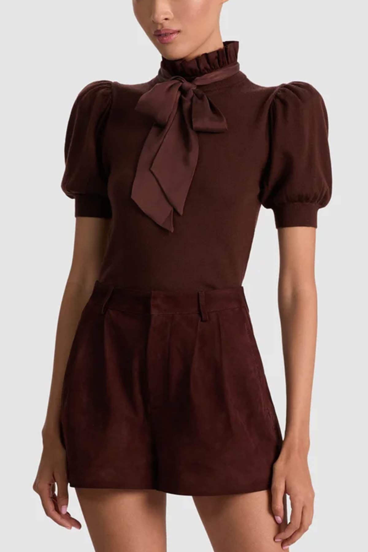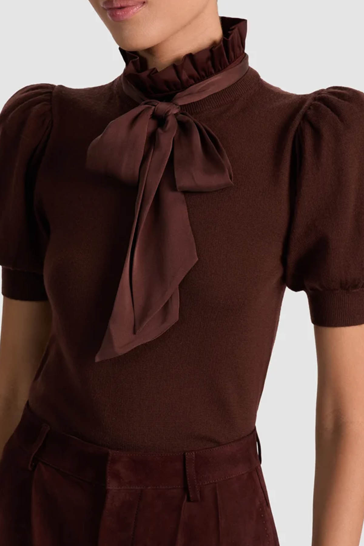 Featuring a removable ruffle collar, an adjustable and removable bow, puff sleeves, a back zip closure, and a cropped design. Composition 96% merino wool, 4% elastane