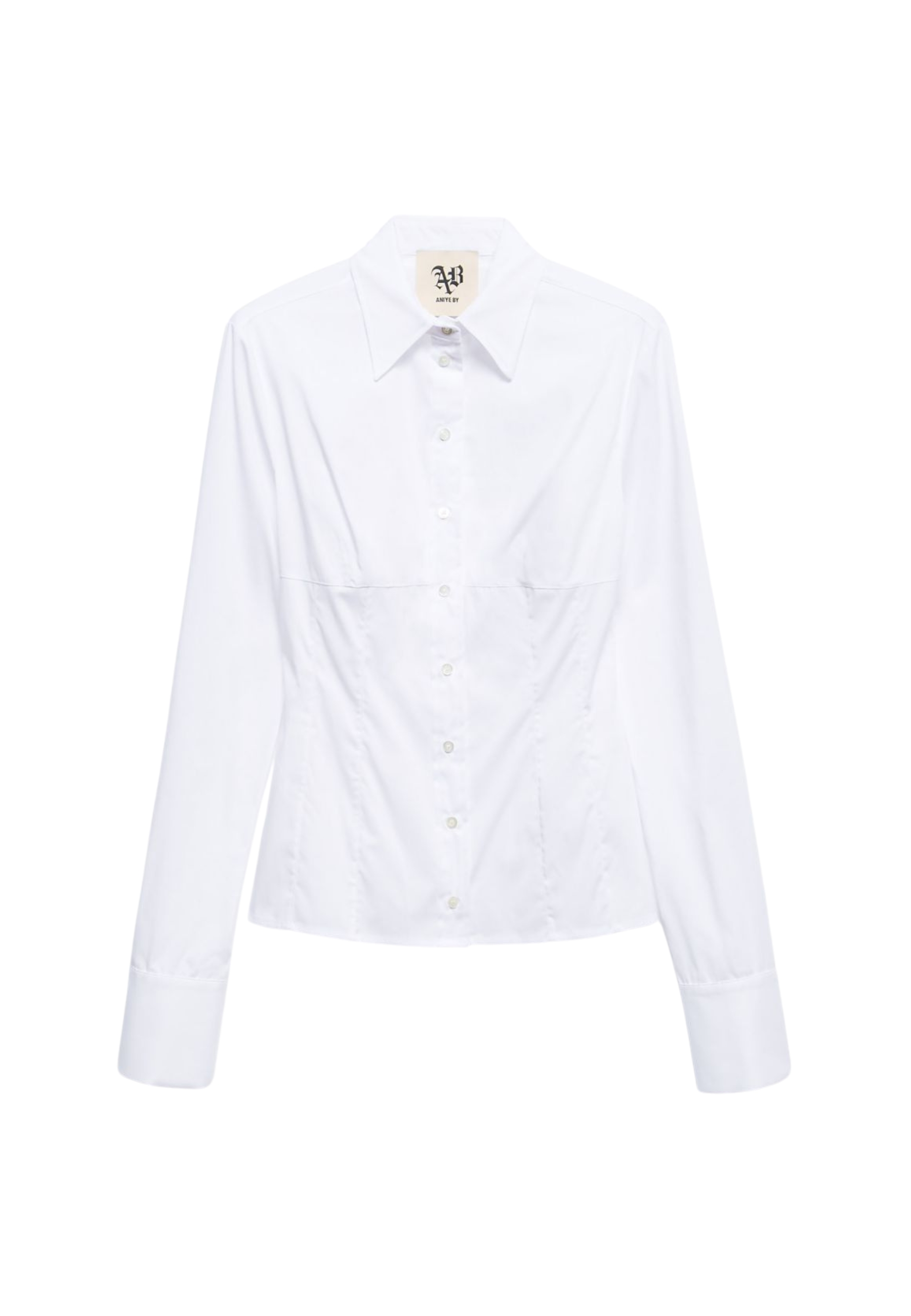 Clean shapes and attention to detail meet in the Moon shirt, for an effortless but decided result. The bustier cut highlights the point of life and creates a slender line, while the classic collar and frontal tapping maintain an essential and versatile appeal.