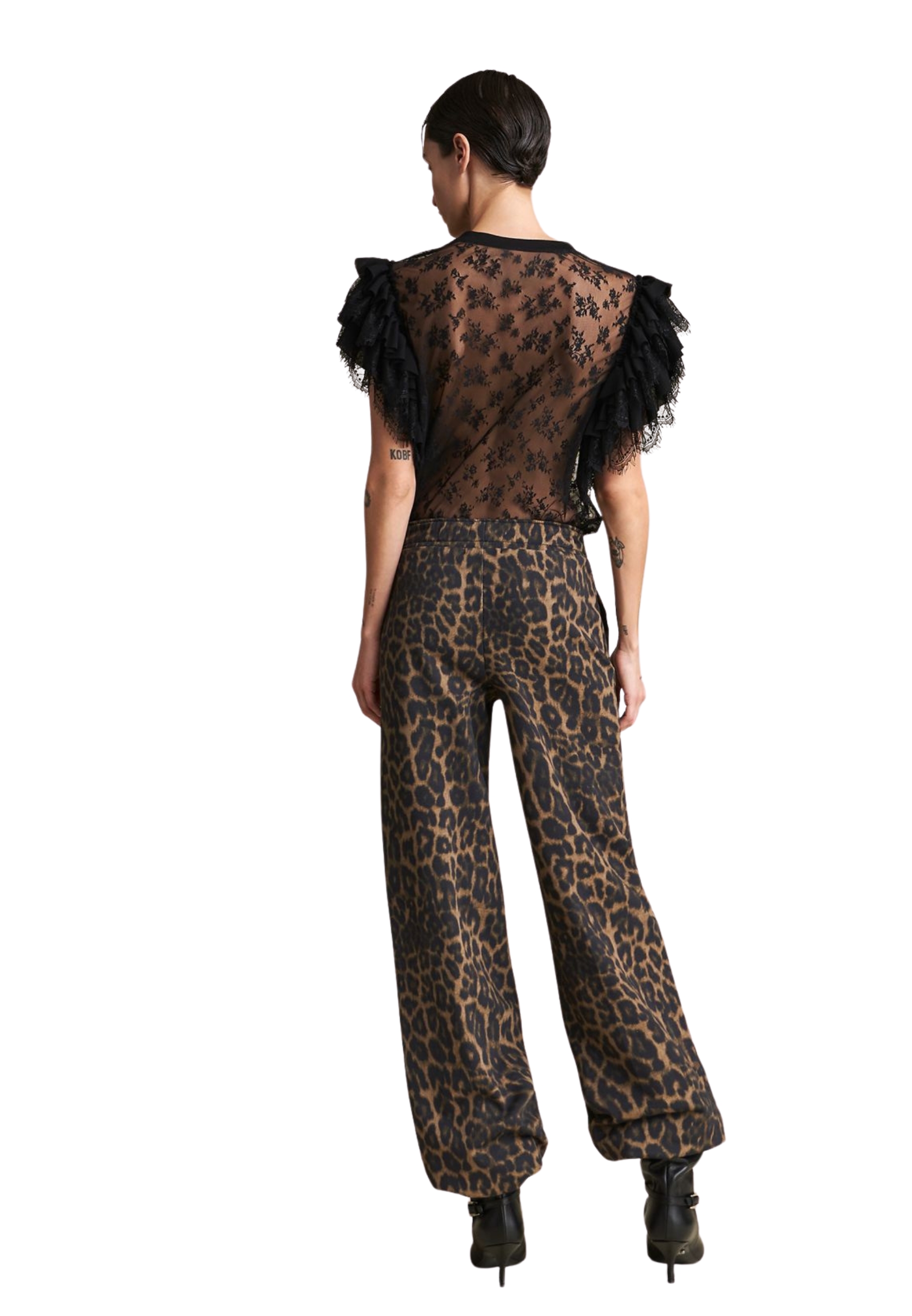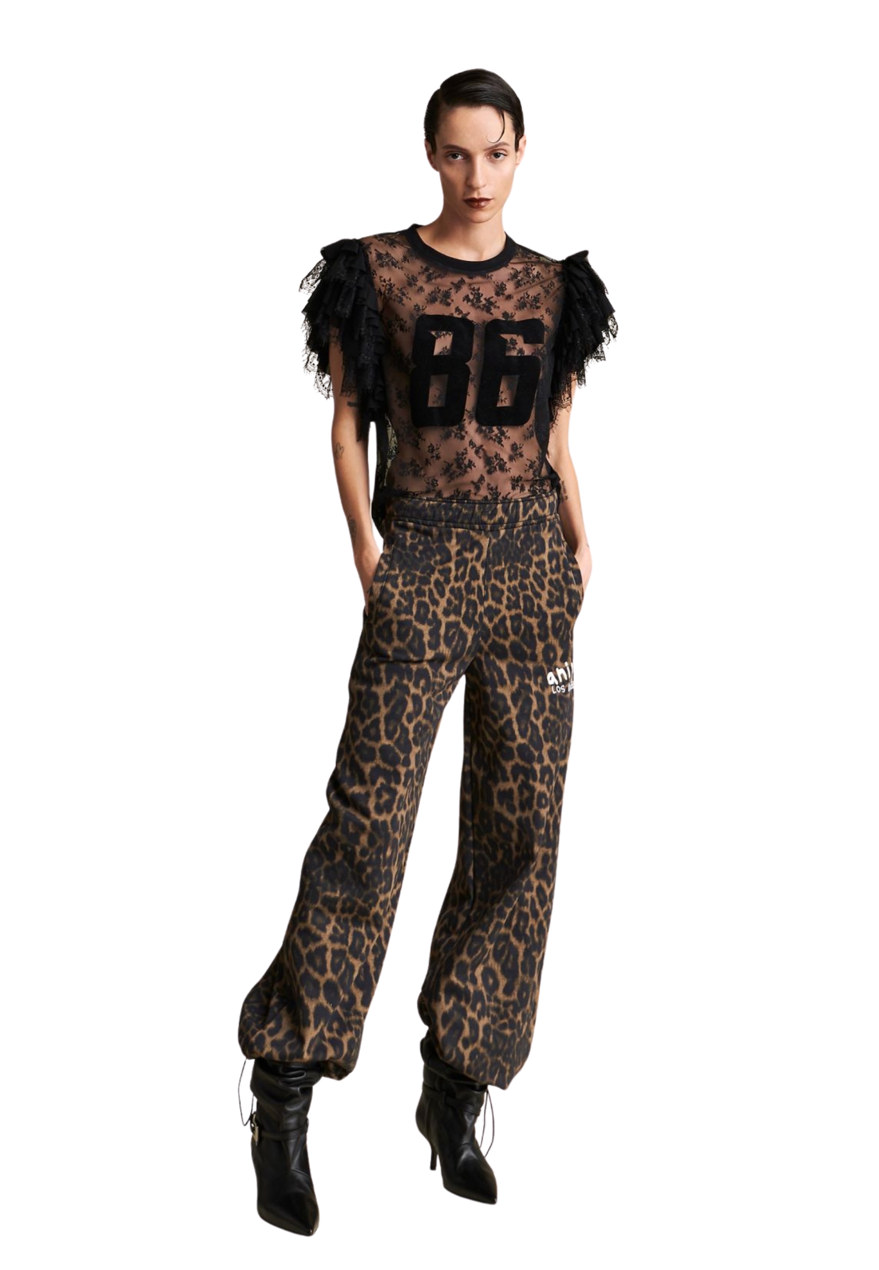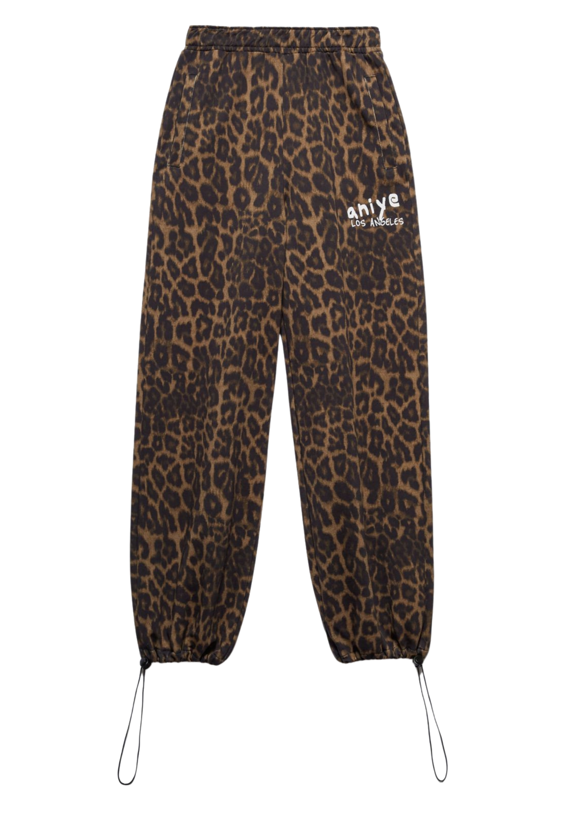 Maku jogging pants rewrite leisurewear rules with a scratching allure. Made of cotton sweatshirts, they feature an all over animal print that does not go unnoticed. The elastic waistband and the ankles with drawstring ensures maximum freedom, while the printed lettering "Aniye Los Angeles" signs the sporty character of the head.