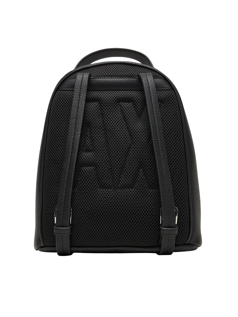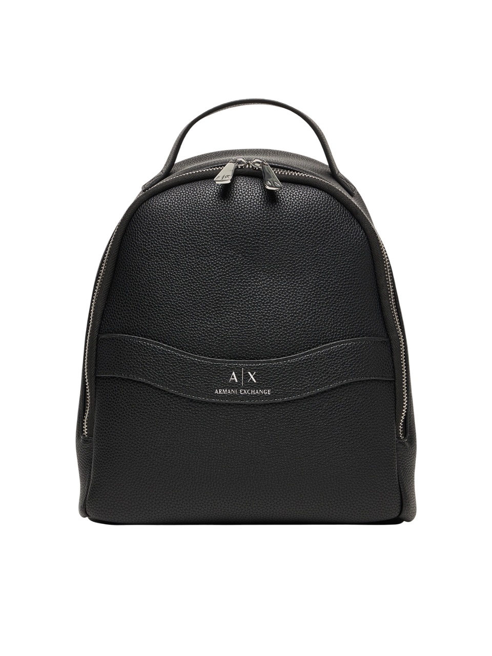 Armani Exchange backpack. Made of faux leather. Single compartment. Handle. Not compatible with A4 format. Smooth material. Adjustable straps allow for a custom fit. With a zipper closure. Zipper closure. The backpack's stiffened bottom helps it maintain its shape. The included dust bag protects the backpack from dust. Lined model. Internal slip-on pocket for securely storing small items.
