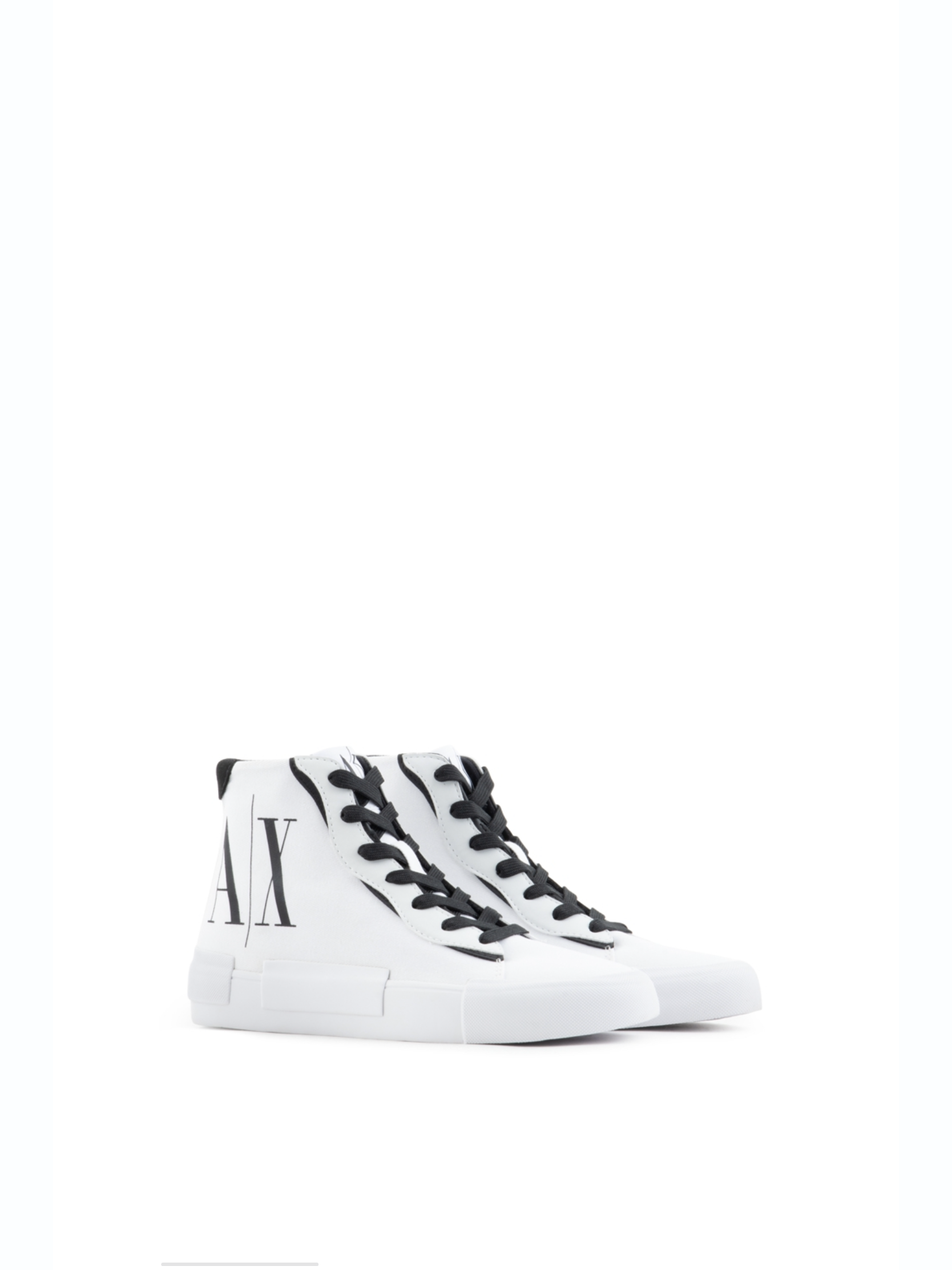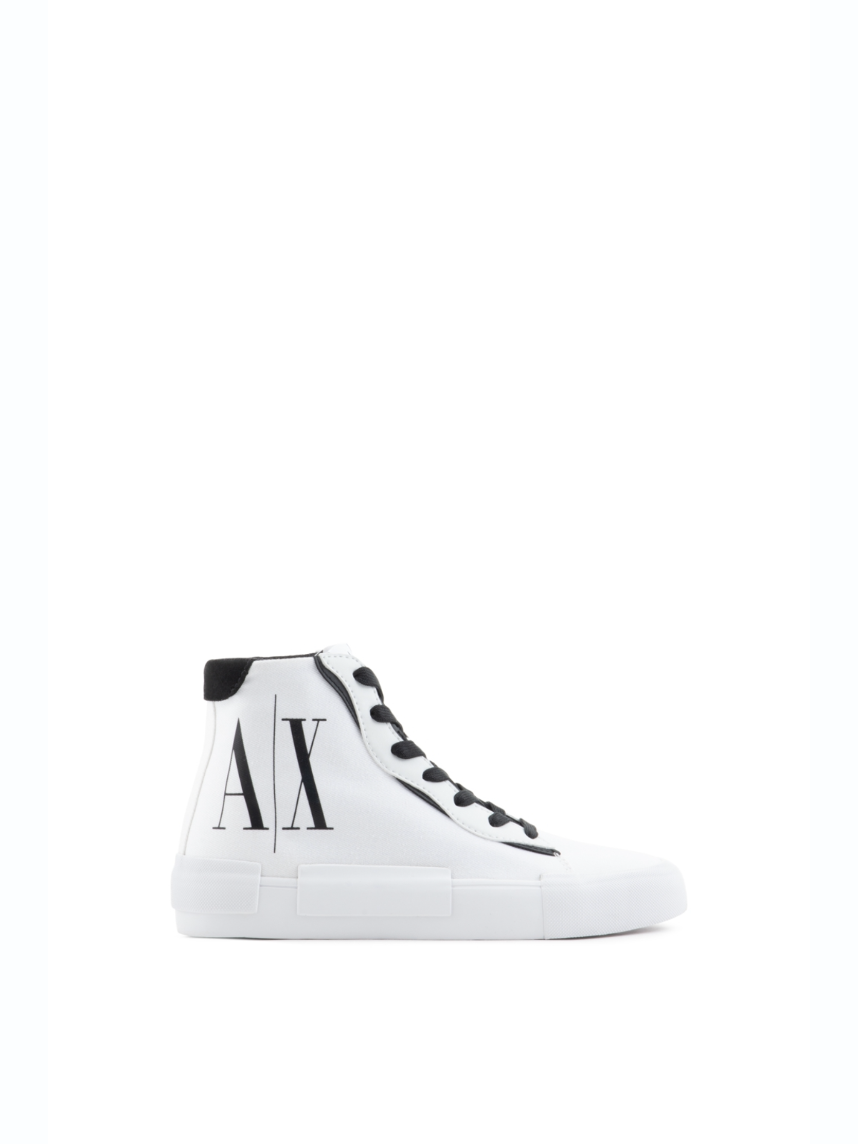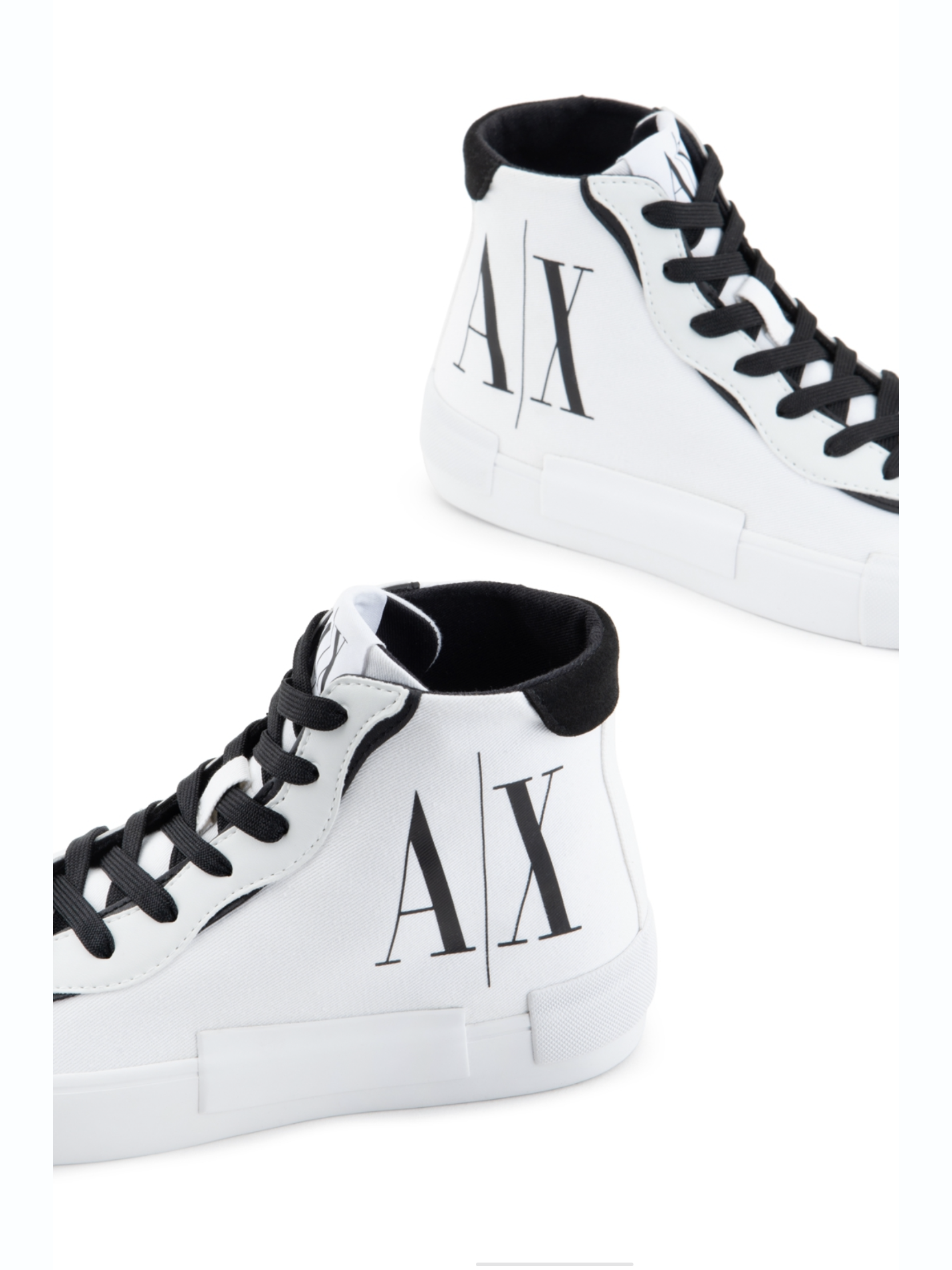 The Icon Project celebrates the iconic 1991 A|X logo by showcasing it on a selection of must have items for every season and any wardrobe. These sneakers feature contrasting, bold details, like the printed Icon logo on the side and the logoed tongue, and a trendy, high top fit. Product Code: XDZ022XV573100152 DETAILS Composition 100% Cotton High top icon logo sneakers Contrasting detail Icon logo Fabric: 100% cotton Imported product XDZ022-XV573