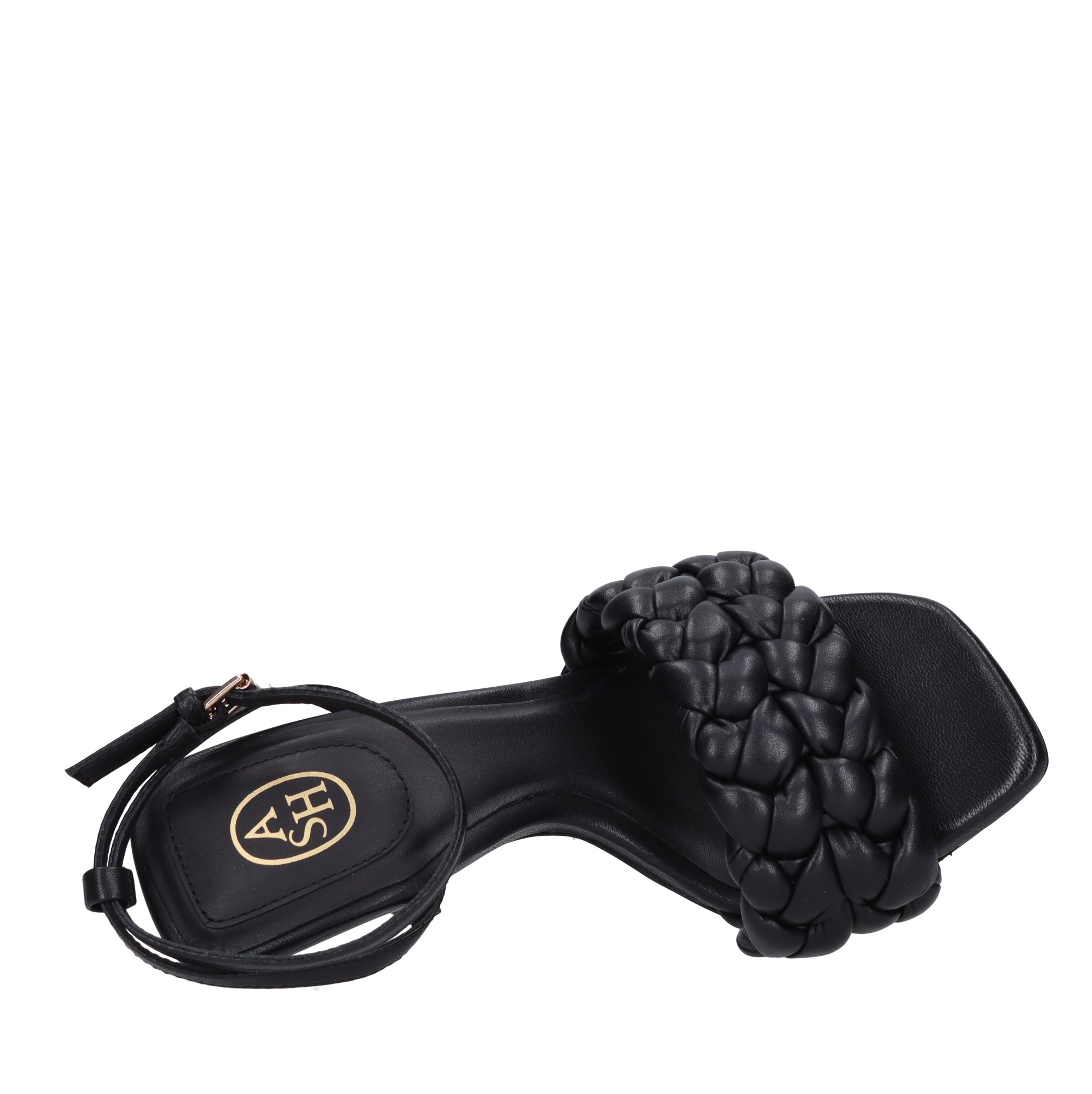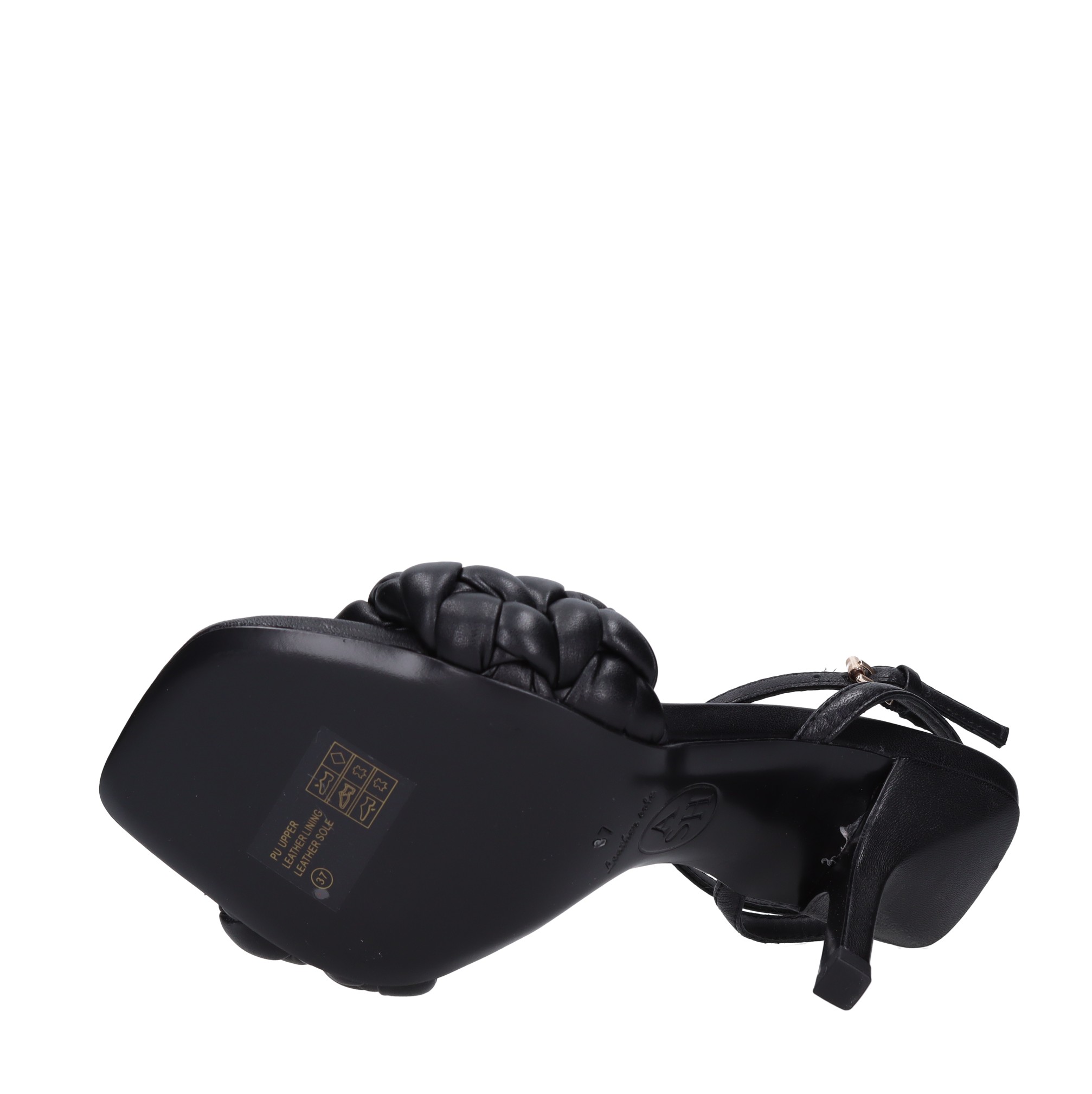 Faux leather sandals. Braided faux leather. Strap with buckle closure. Leather sole.
