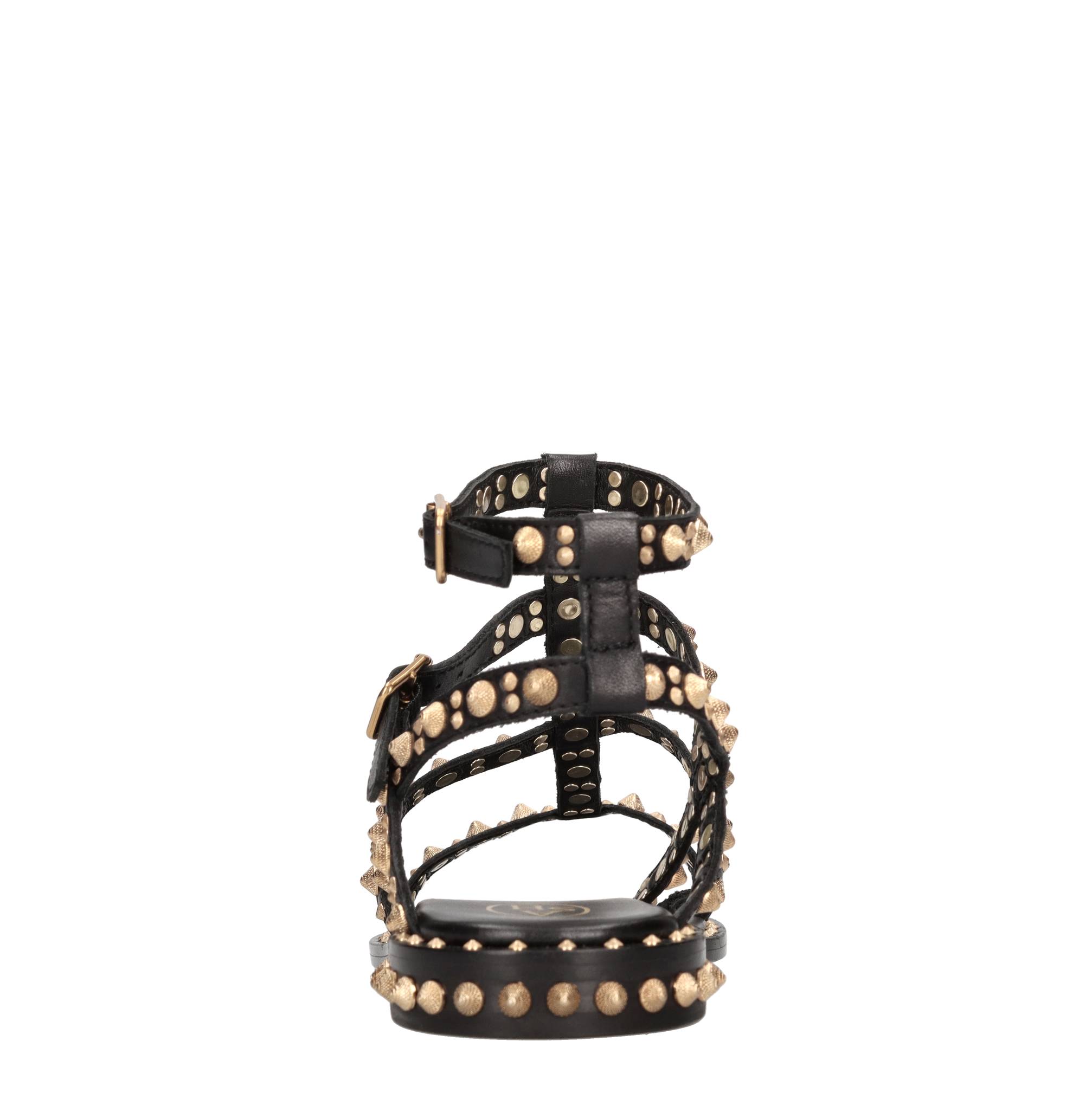 Flat leather sandals. Bronze studs. Logoed leather outer sole. Logoed leather inner upper.