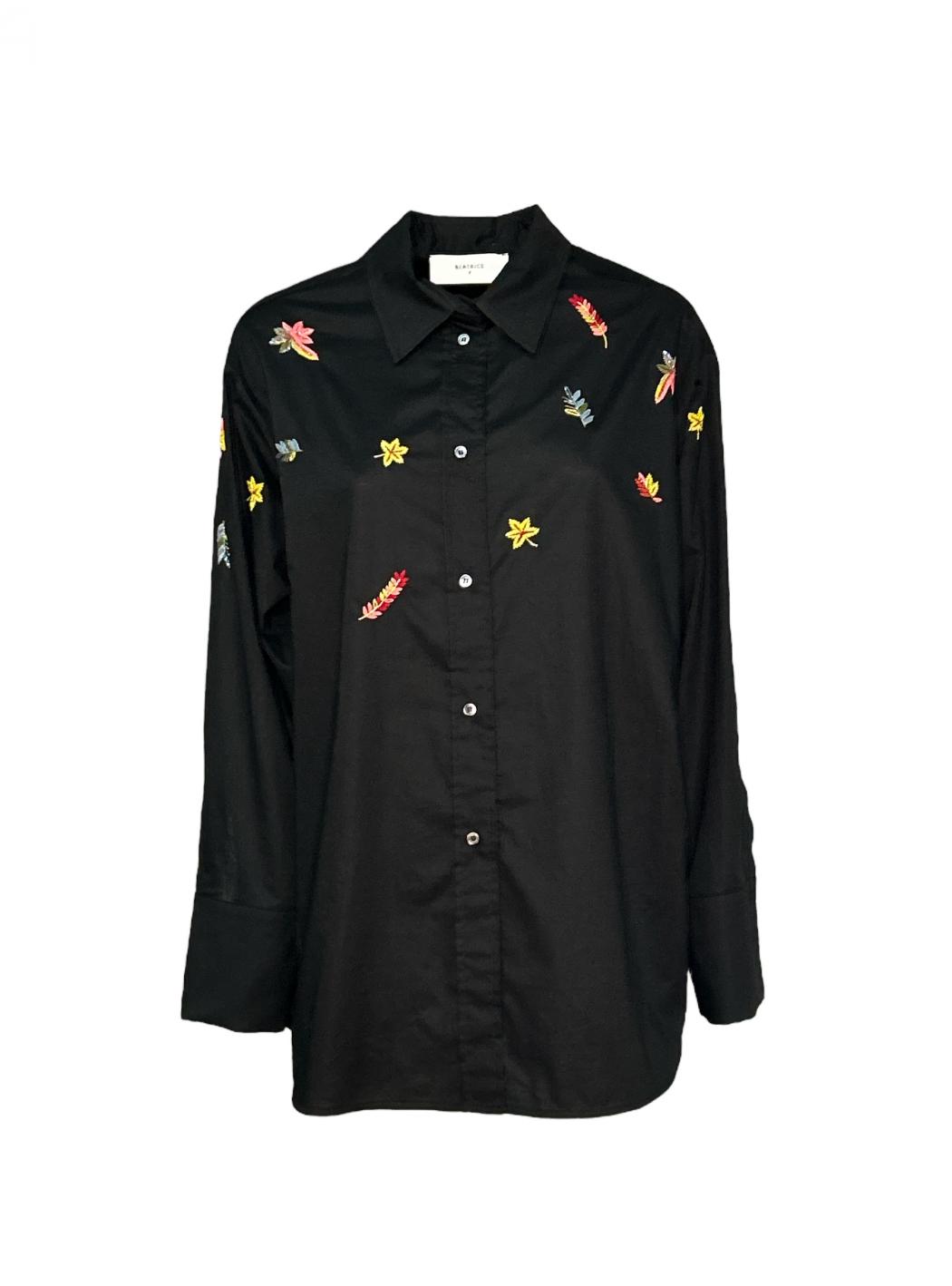 Black cotton shirt with embroideries