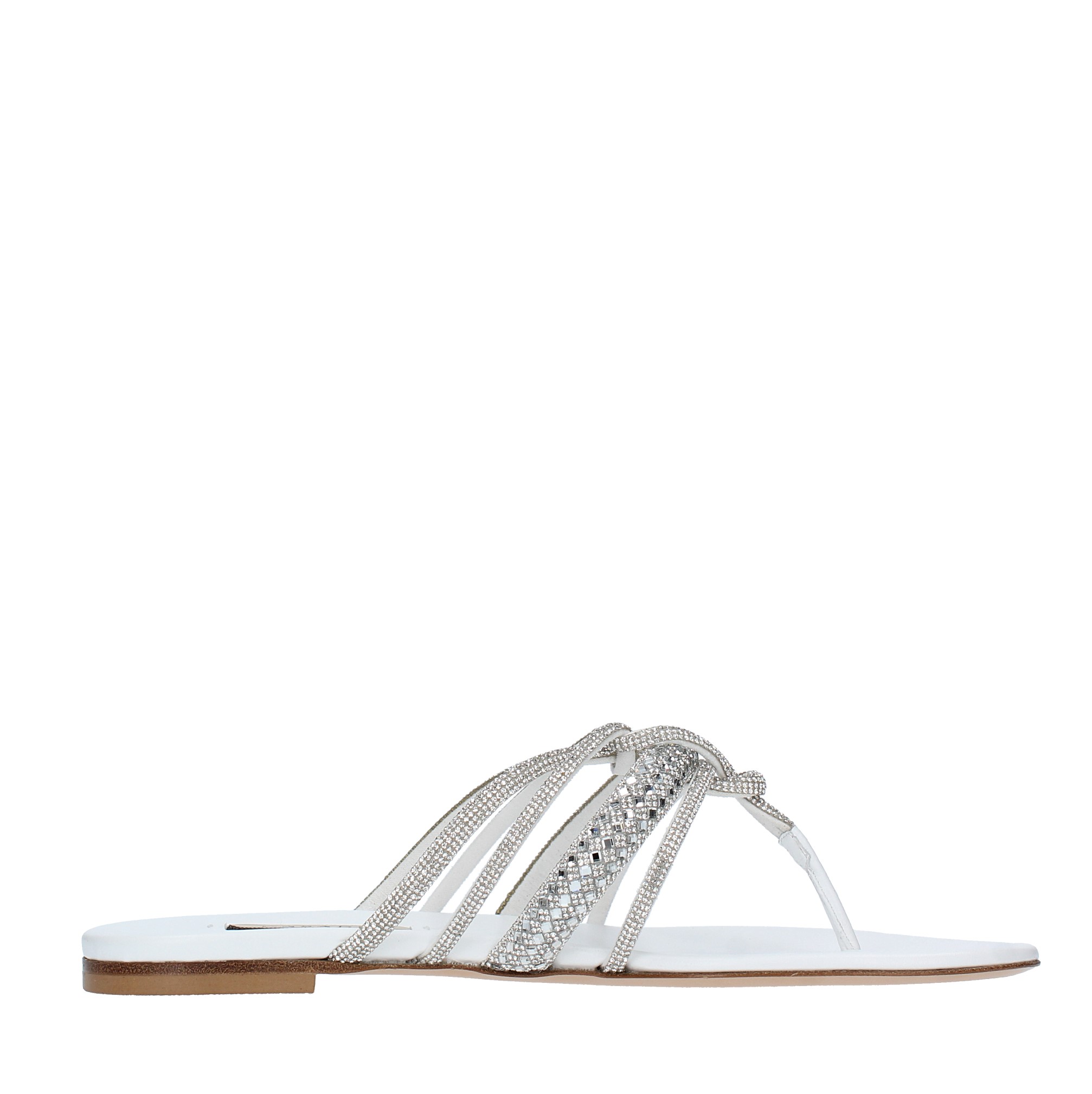 CASADEI model STRATOSPHERE thong sandals in rhinestone fabric and leather. Logo-embossed leather outer sole. Logo embossed leather insole.