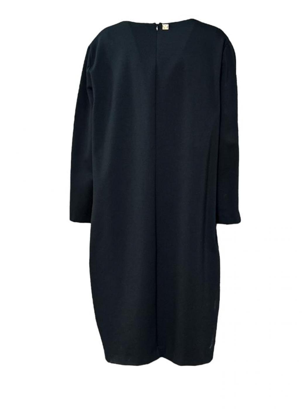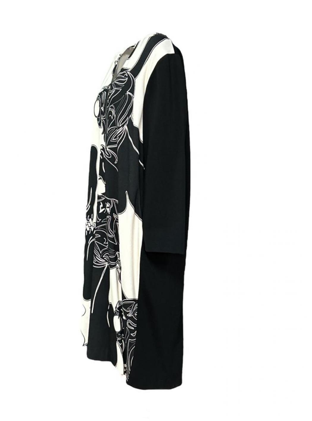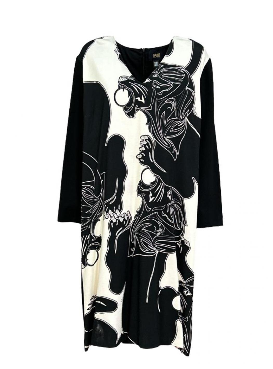 Dress Cavalli Class from straight line with V neckline. Fantasia in black/white on the front and black behind