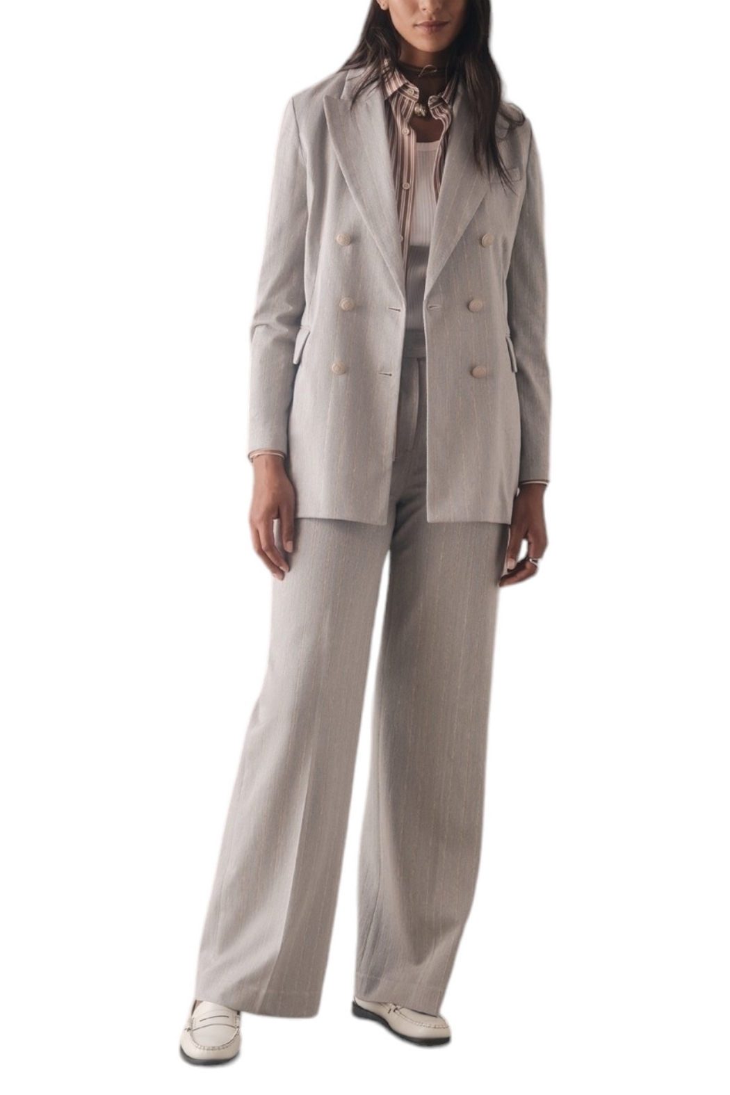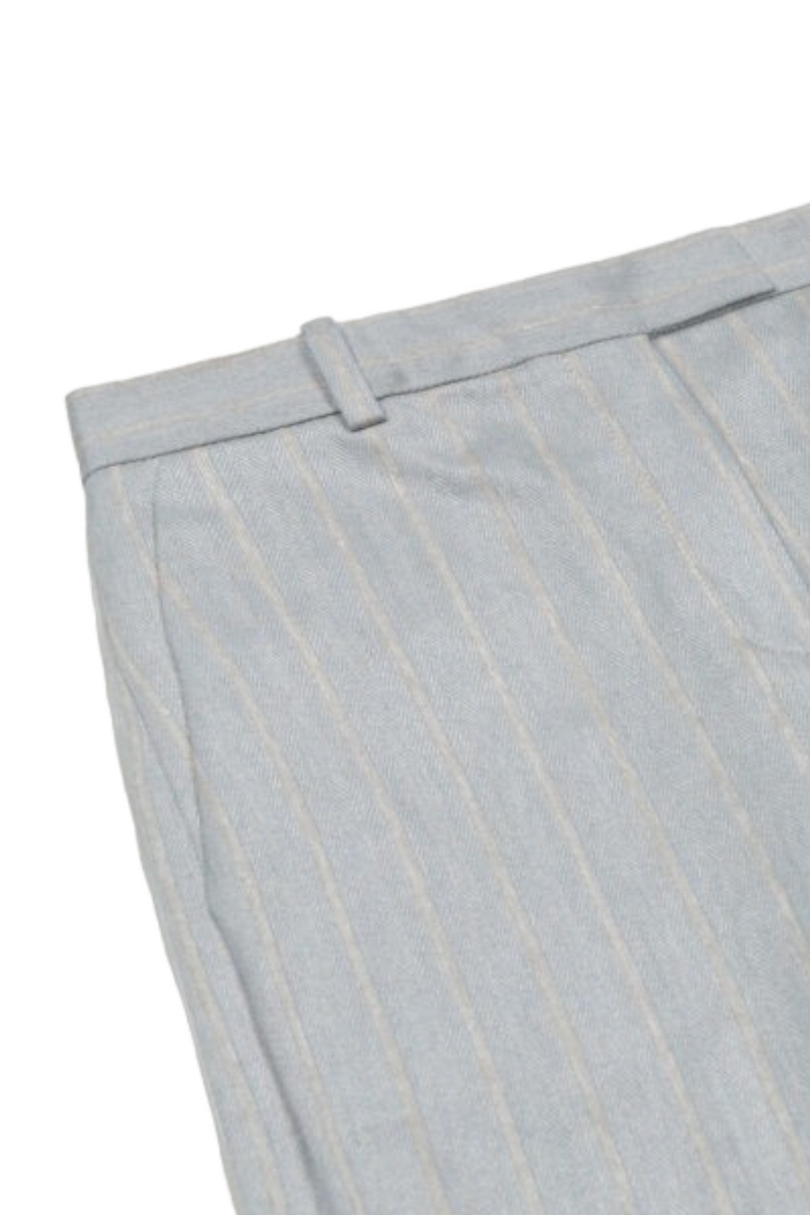 Circolo1901 trousers. Wide leg model, pinstripe pattern, pockets, regular waist, belt loops at the waist. Regular fit. Composition: 66% linen, 34% cotton.