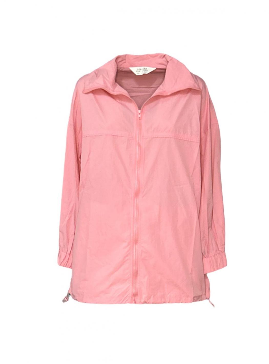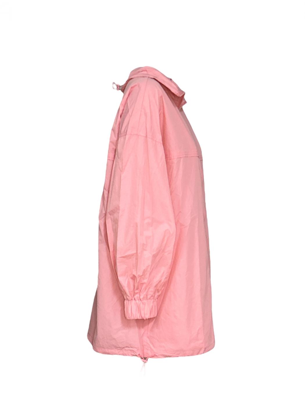 Short jacket in pink technical fabric. With high adjustable neck and long sleeves finished in elastic. Front closure with zipper. Side pockets. Elastic detail on the bottom.