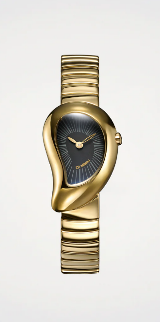 Fluid lines and organic volumes define a case that breaks the rules of symmetry. The metal is shaped like liquid, giving life to a soft and enveloping silhouette. Aesthetic sculptural, designed to transform the watch into a personal and distinctive object.