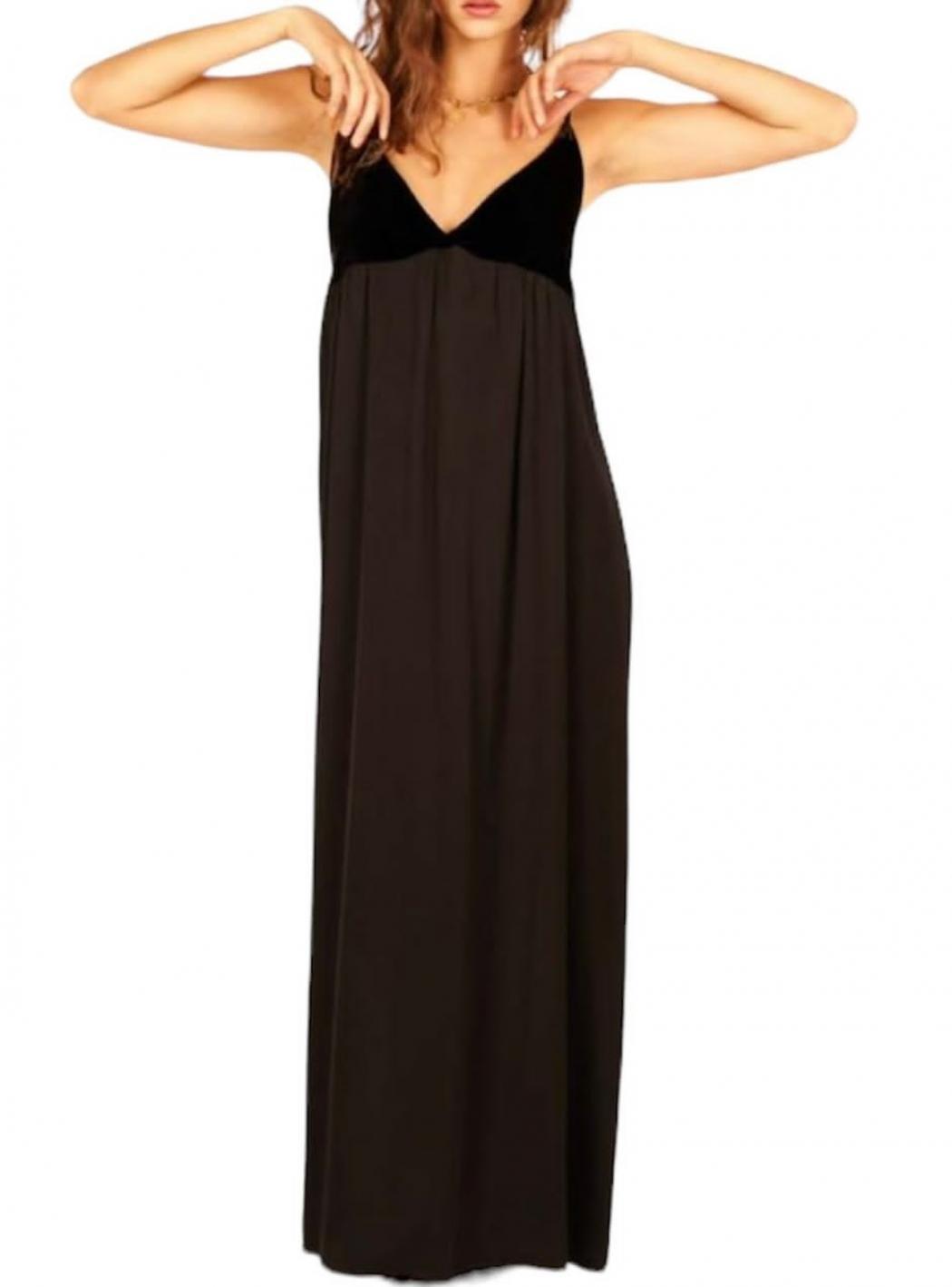 Long dress with velvet insert, a perfect garment for special occasions and elegant evenings.The long dress with velvet insert is designed with a regular fit, making it perfect for an elegant and comfortable look.