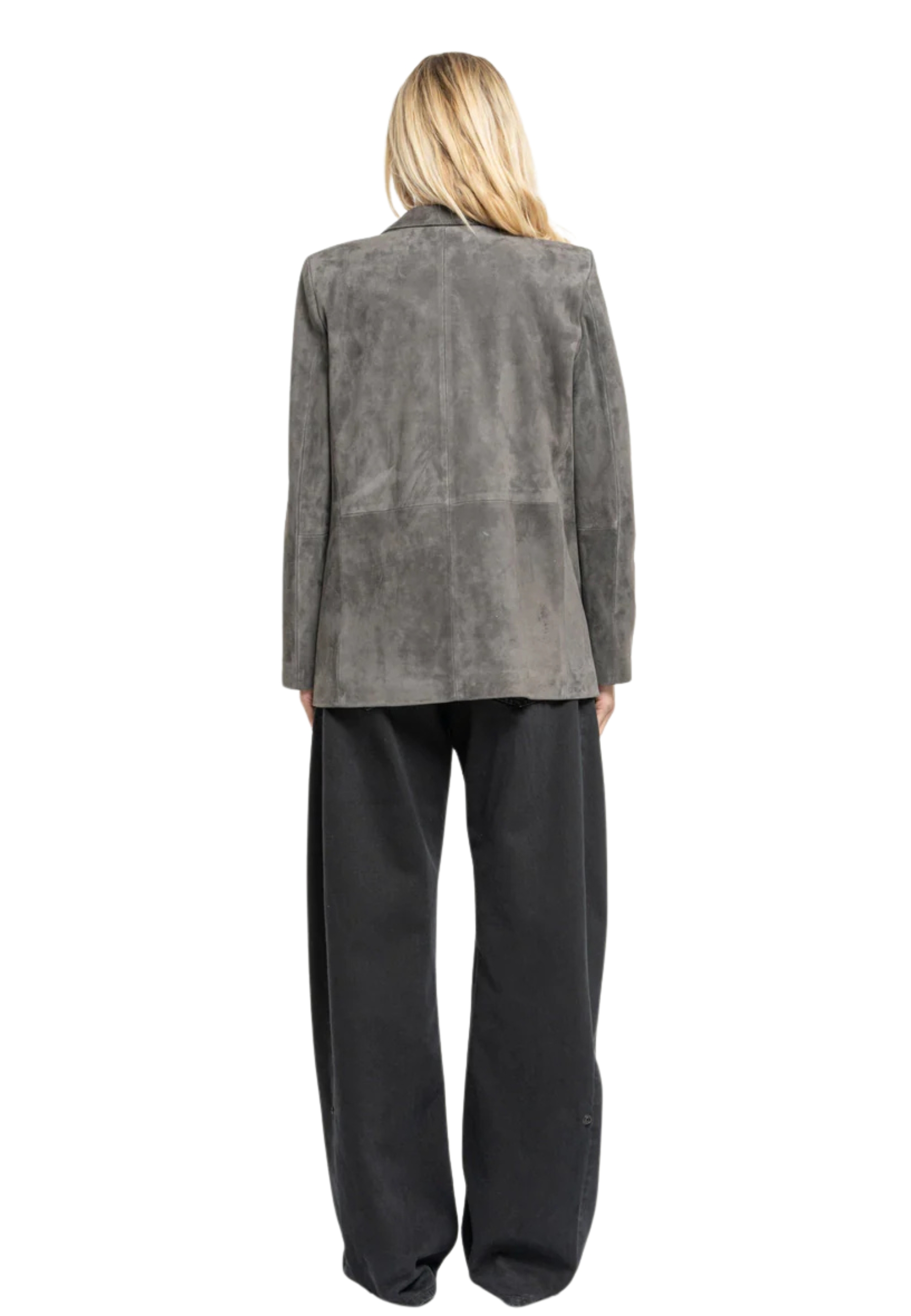 Double-breasted suede blazer colour grey inside completely lined, lance rever, double-breasted closure with buttons, padded shoulder straps, front pockets with skate, straight fit