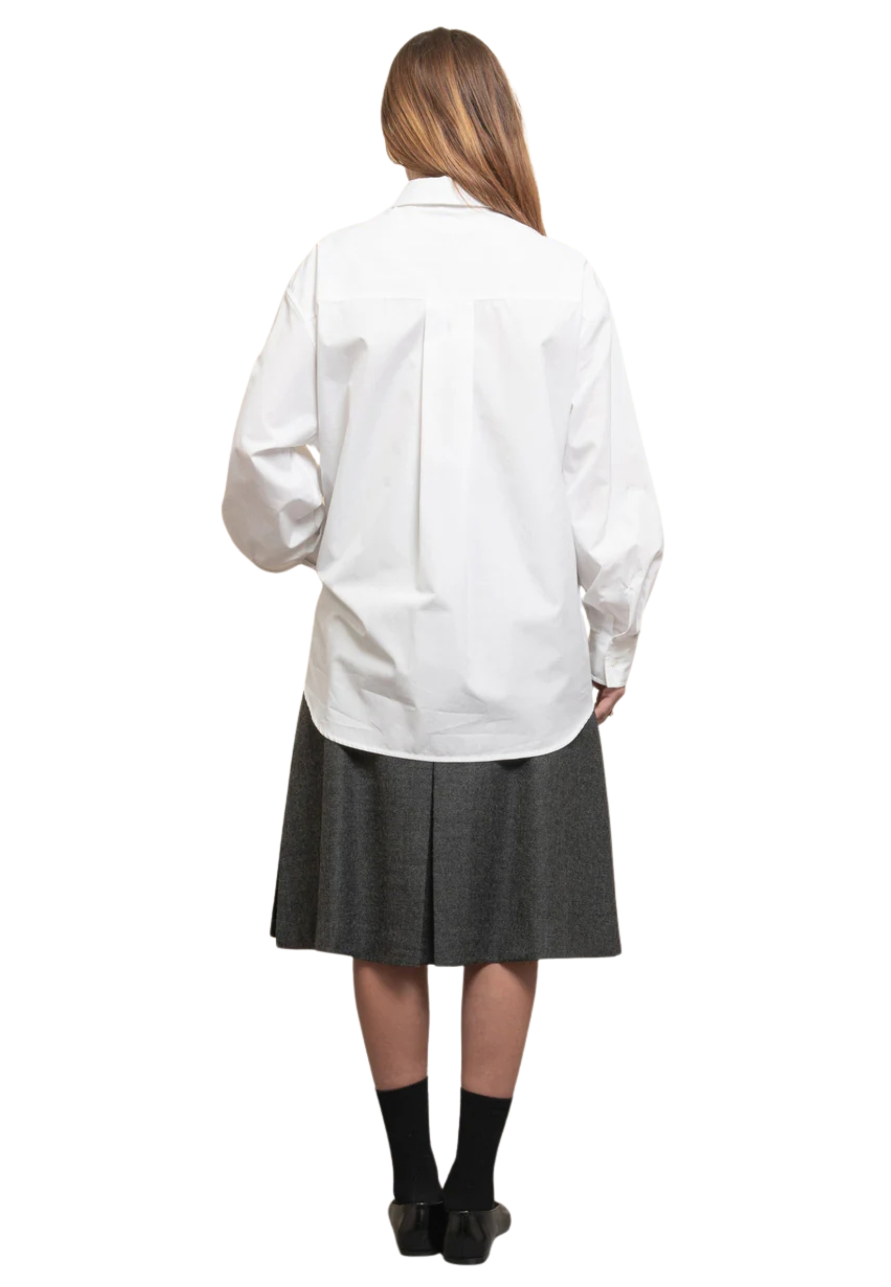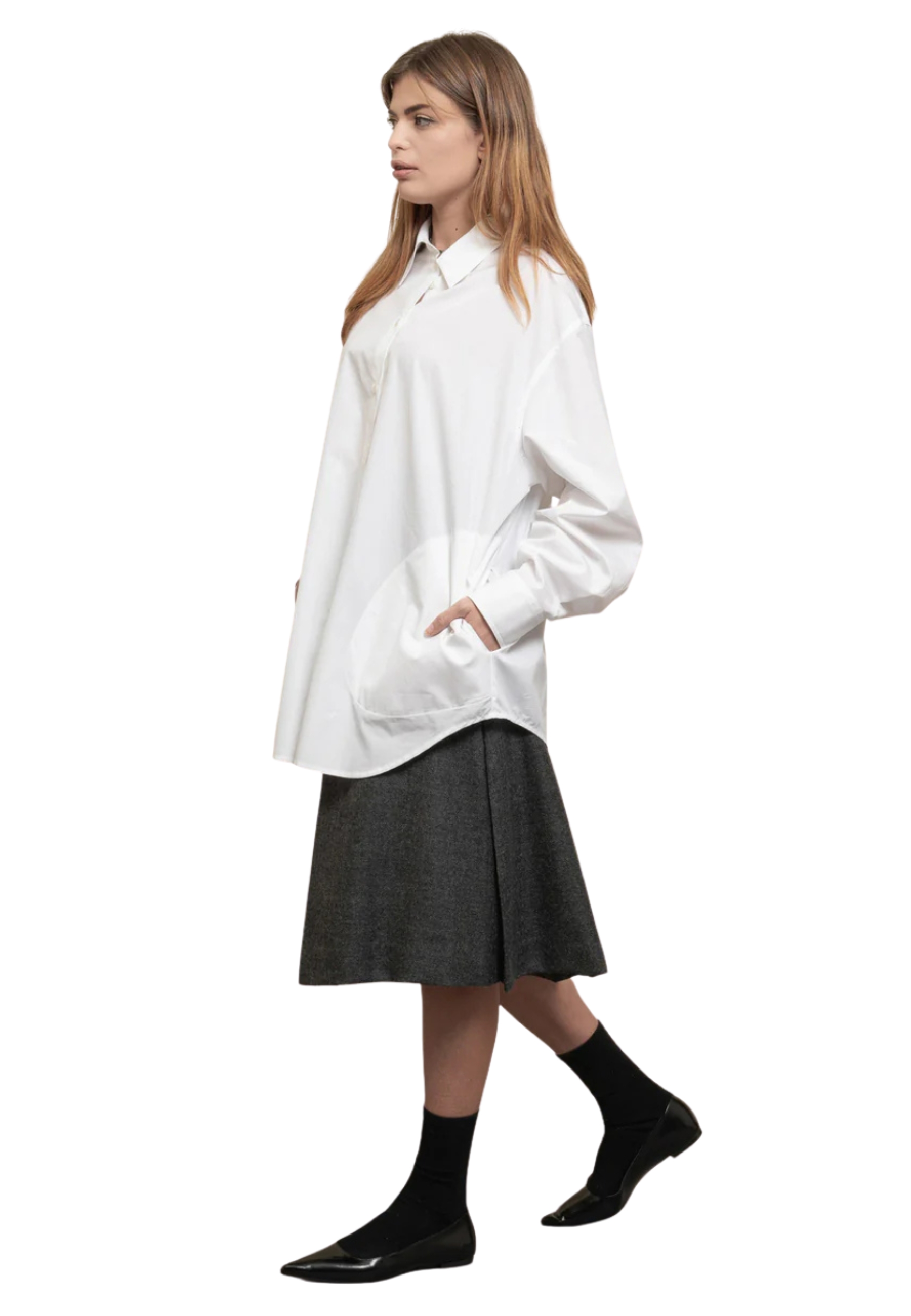 Shirt over with pockets in classic white poplin, long sleeves, side pockets, cuffs with button, curved bottom