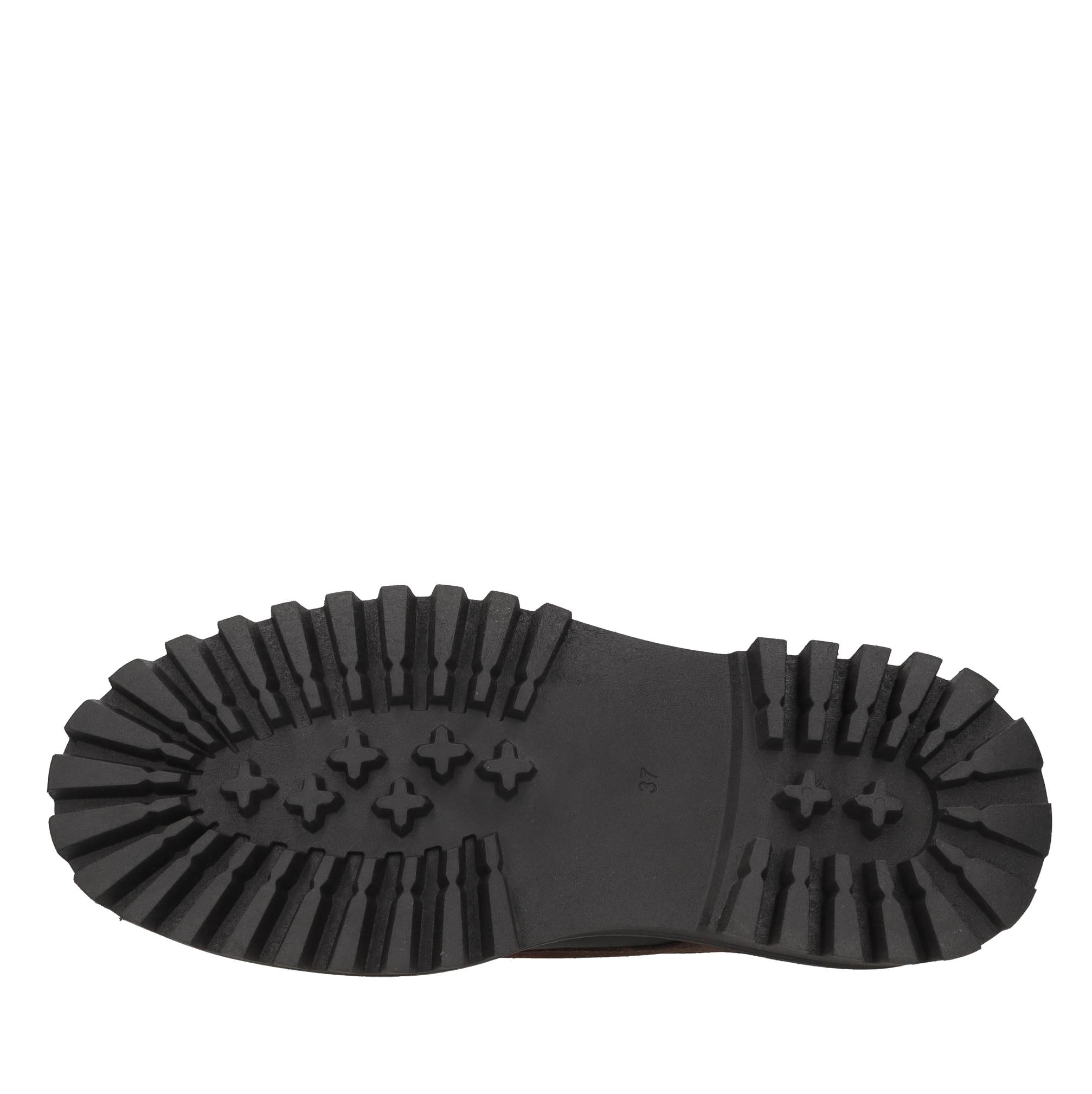 Leather and suede lace-ups. Front closure with laces. Rubber outsole. Leather inner upper.