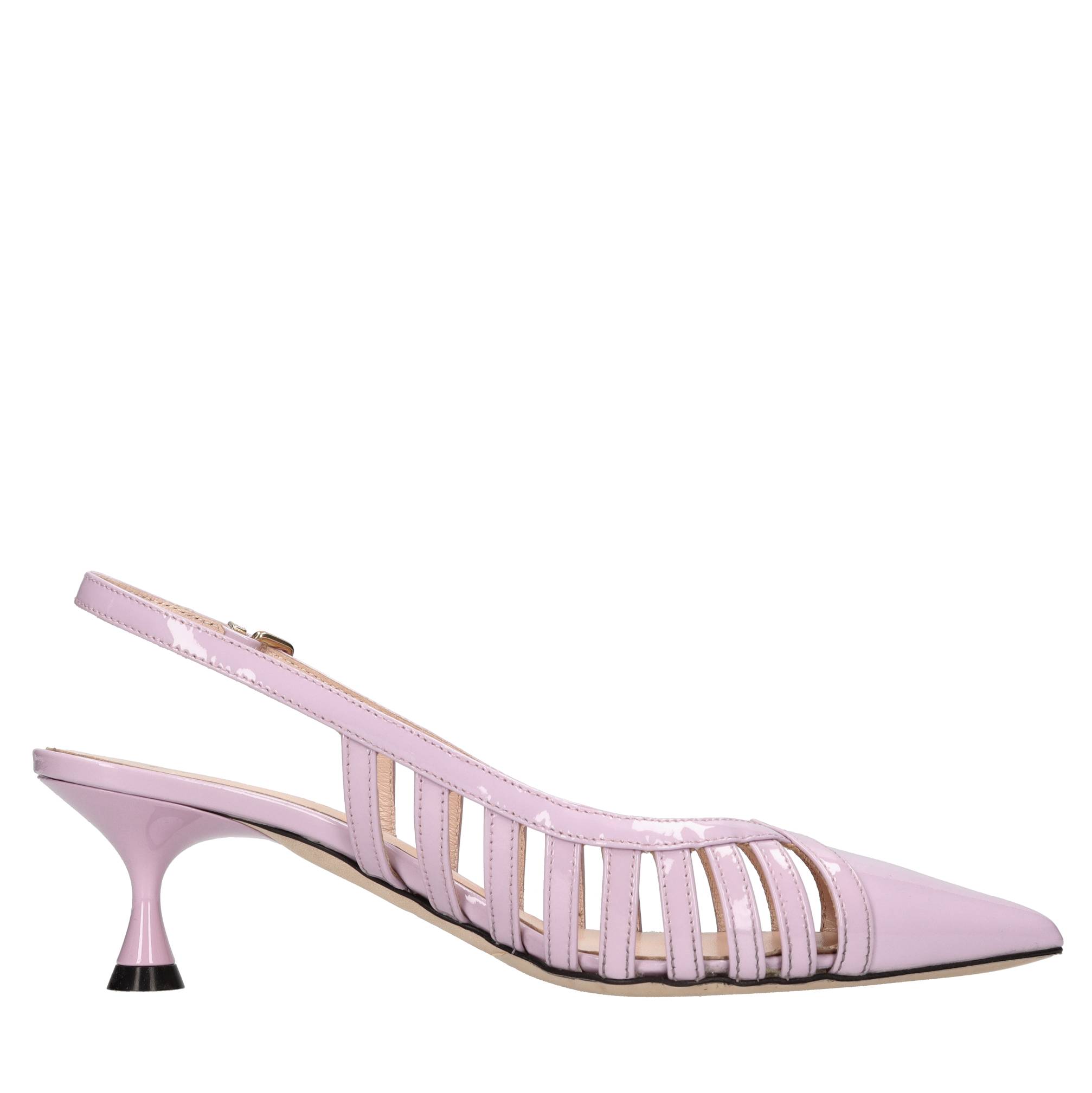 Patent leather slingback pumps. Leather outsole. Logoed leather insole.