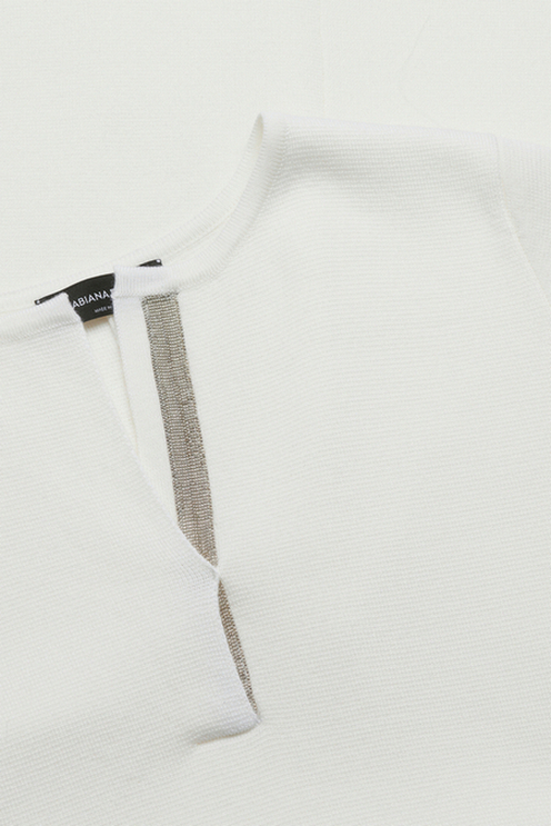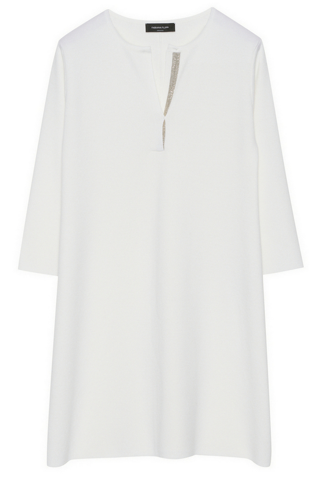 Fabiana Filippi merino wool dress. Polo neckline with light details, 3/4 sleeves, above the knee length. A-line fit. Composition: 100% virgin wool. Made in Italy.
