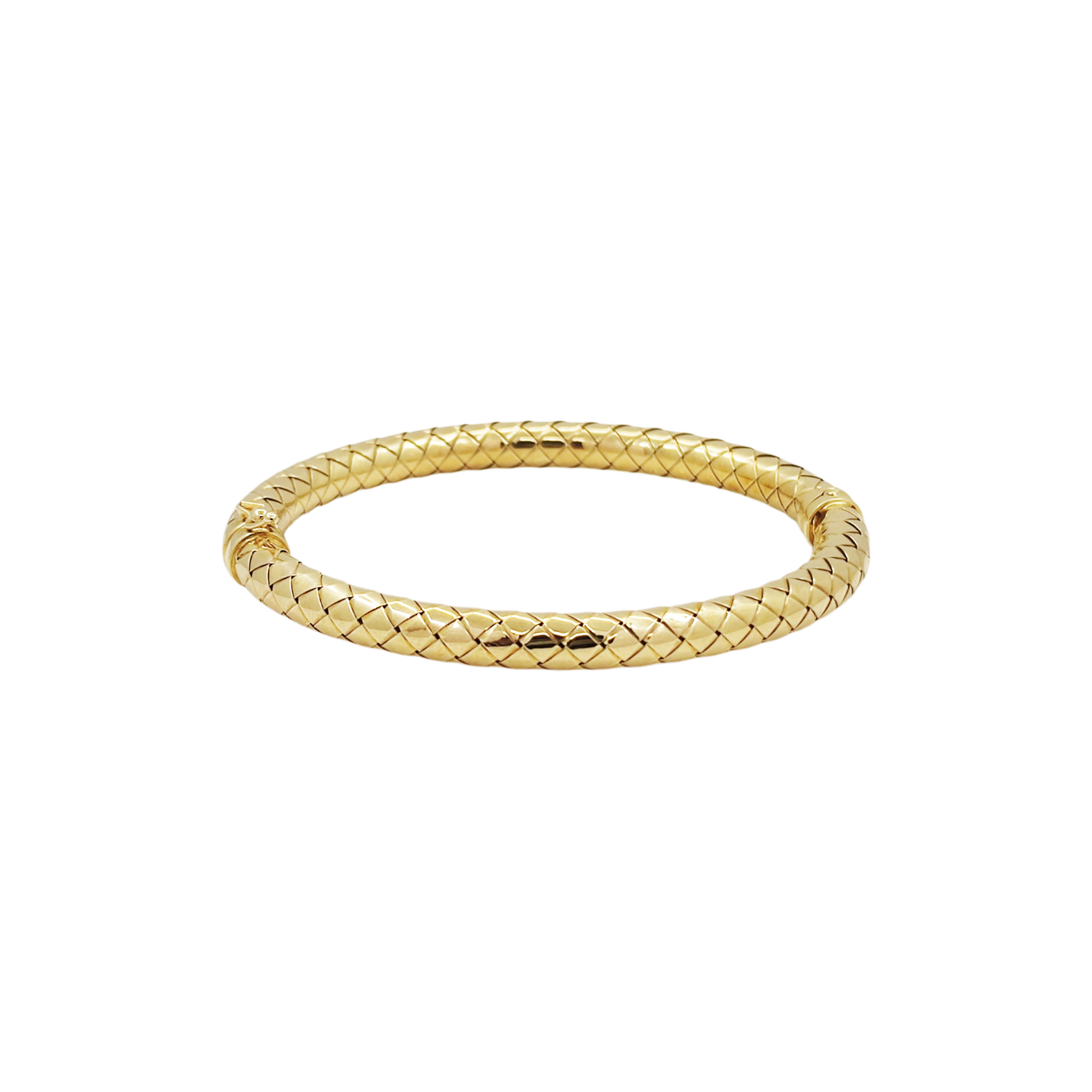 Bracelet Rigid in Silver 925% Golden, Round section With Knife texture, Central hinge and Flat closure.