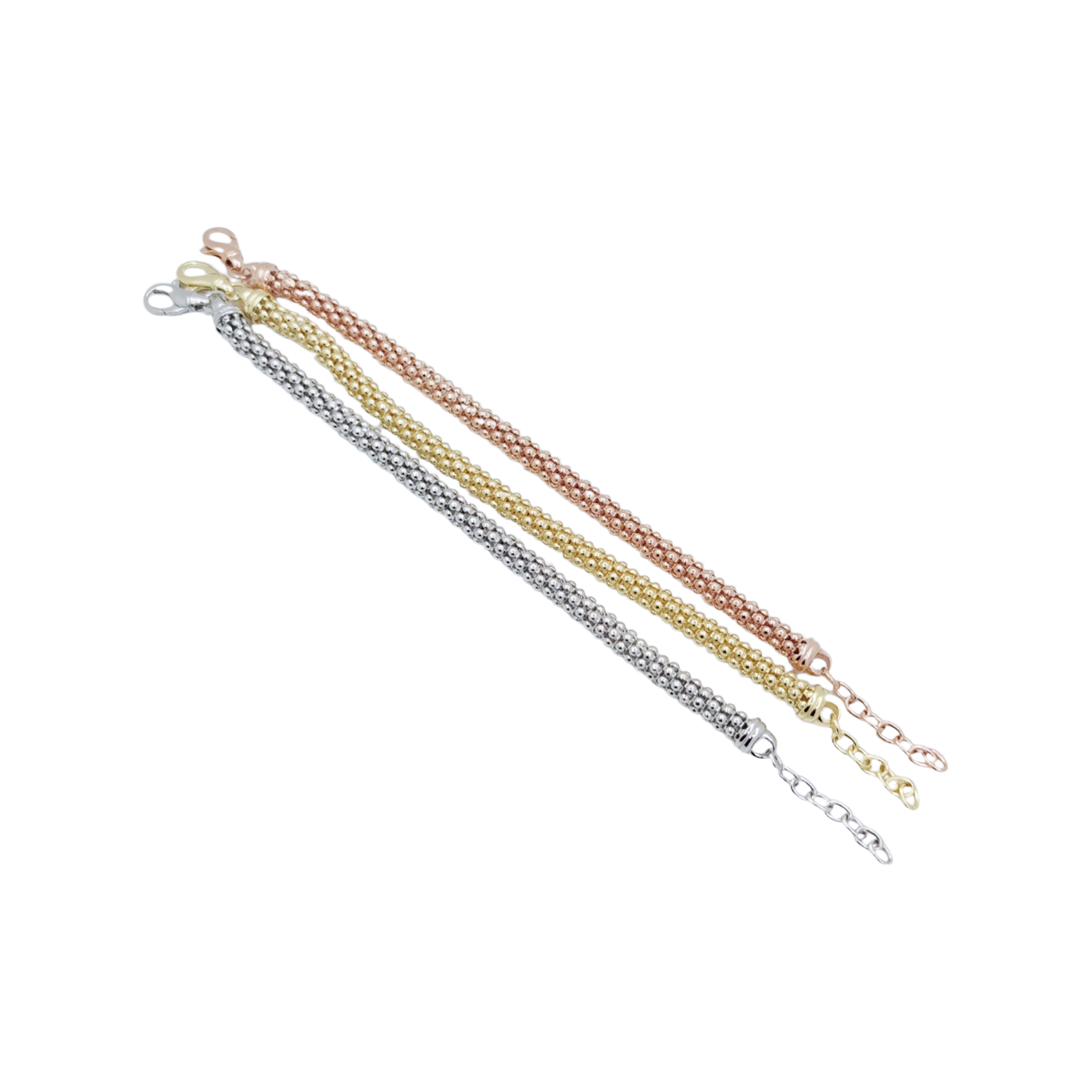 Braccial Silver 925% Tris Rosé, Silver and Golden, with Leaf Larga 1 cm.