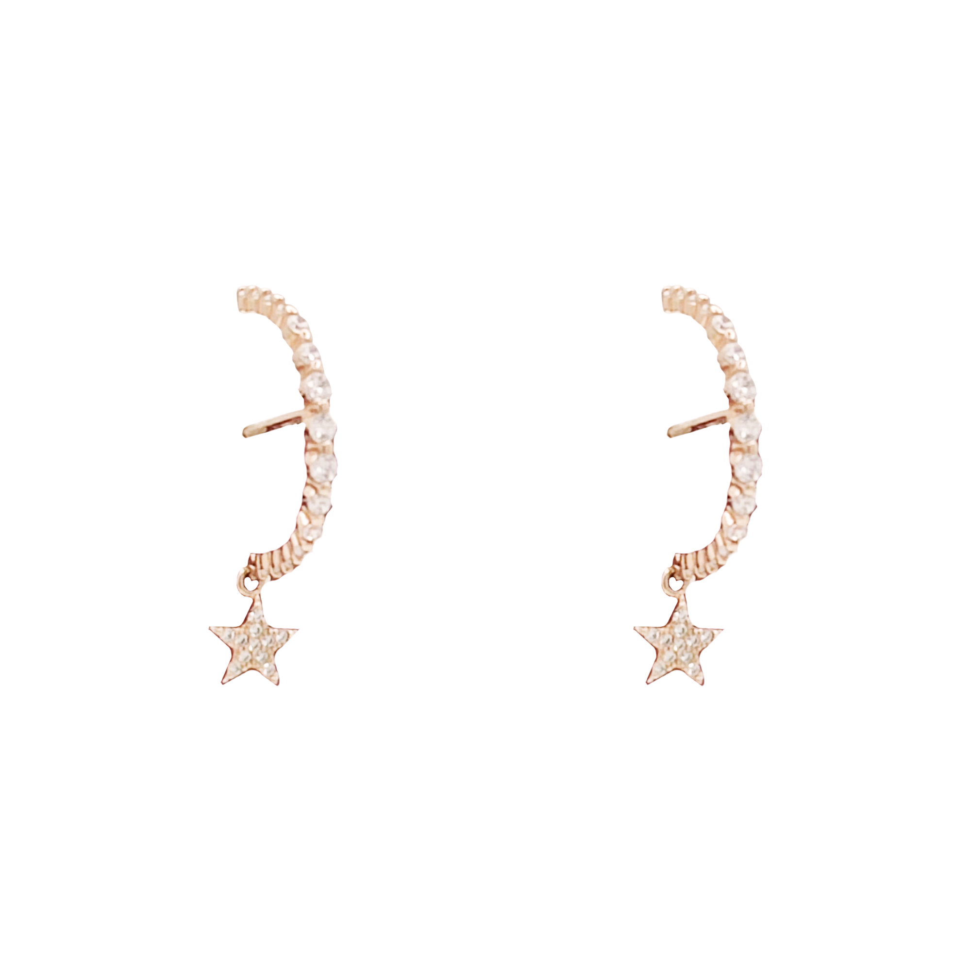 Silver Earrings 925% Rosé Model With Seeds Circle Set by White Zirconia and 5 mm Pendant Star.