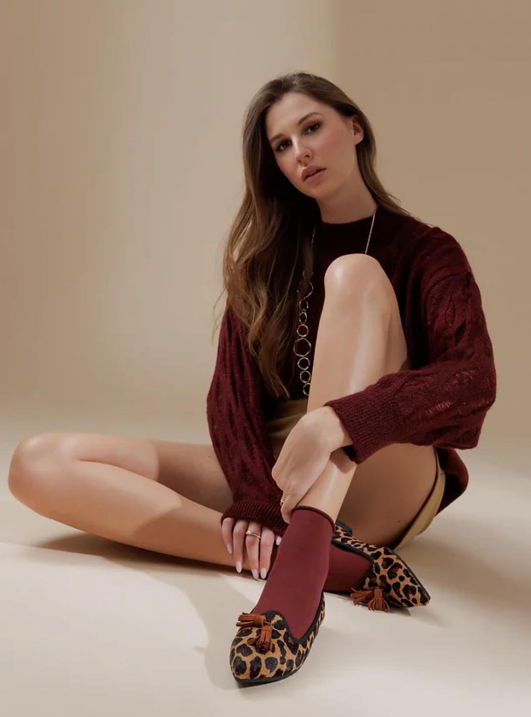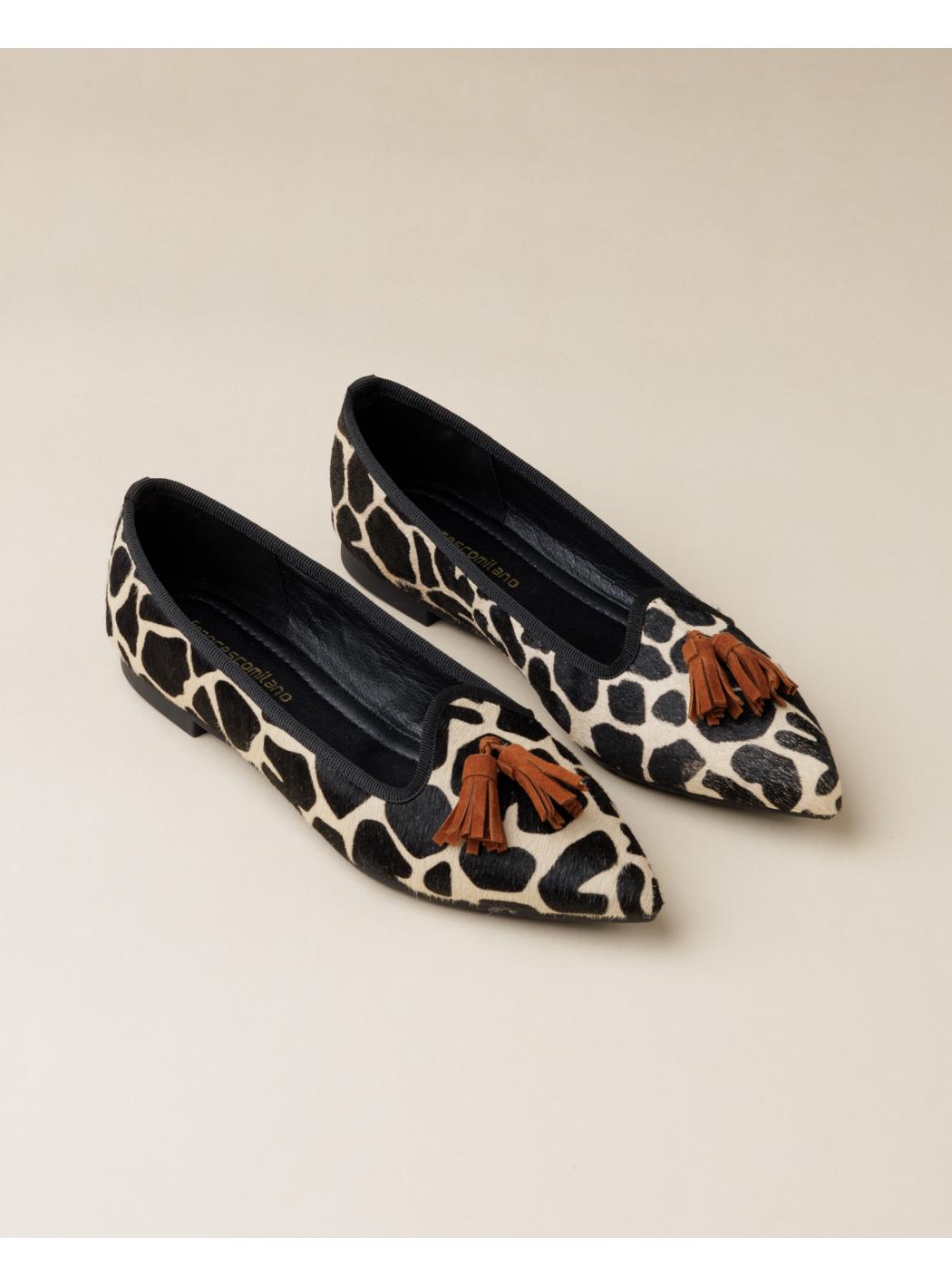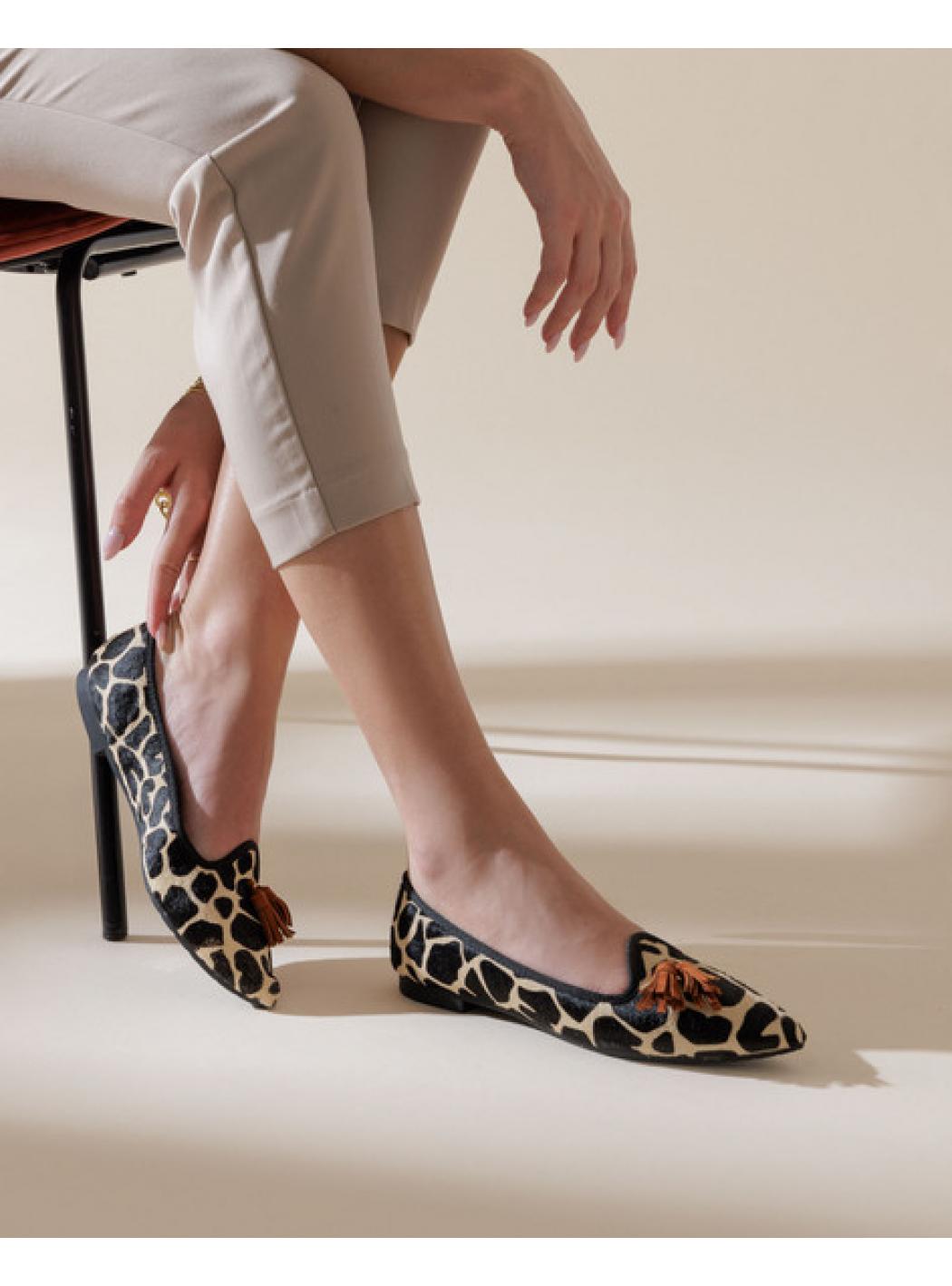Leather dancers with maculate horse effect with black. Mappine in brown leather on the tip.