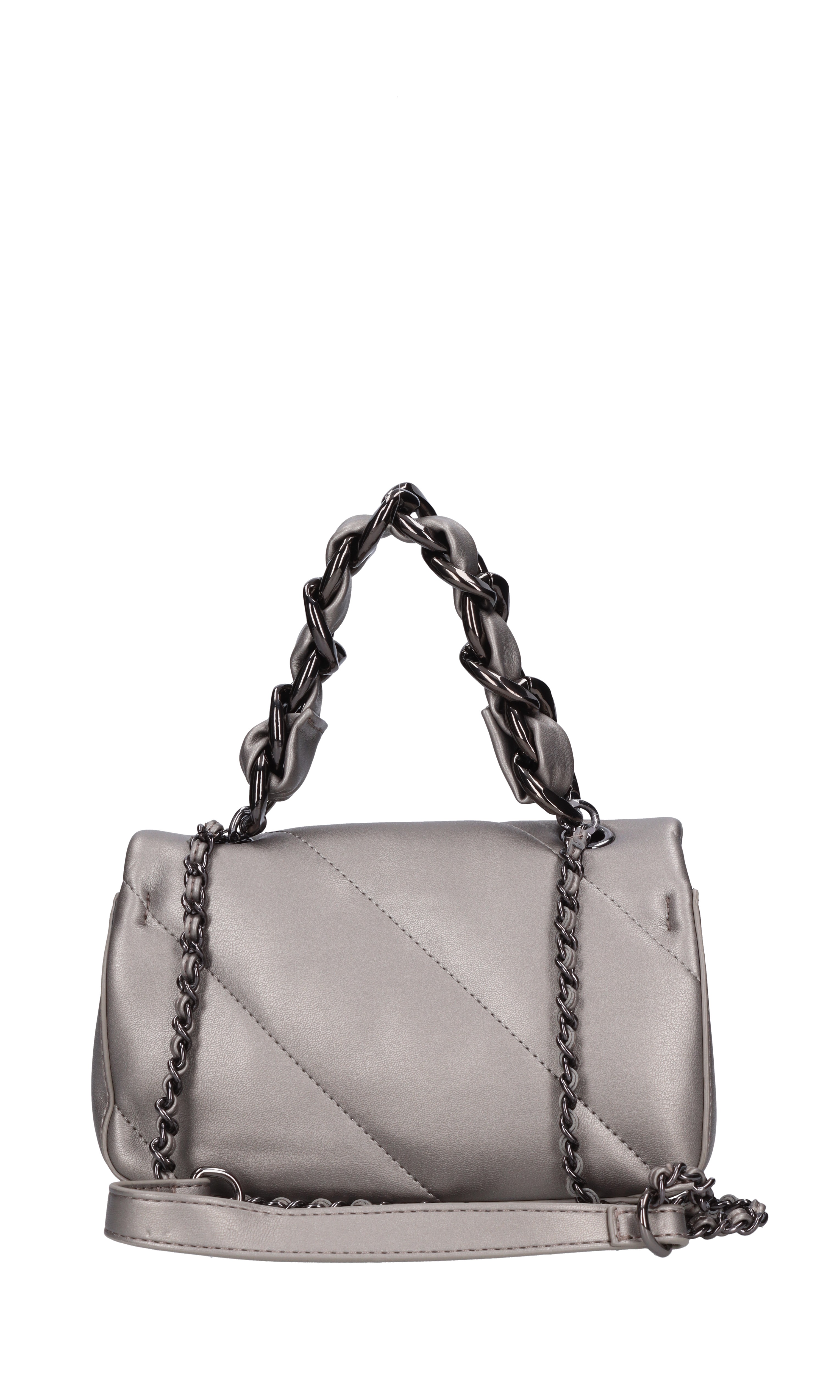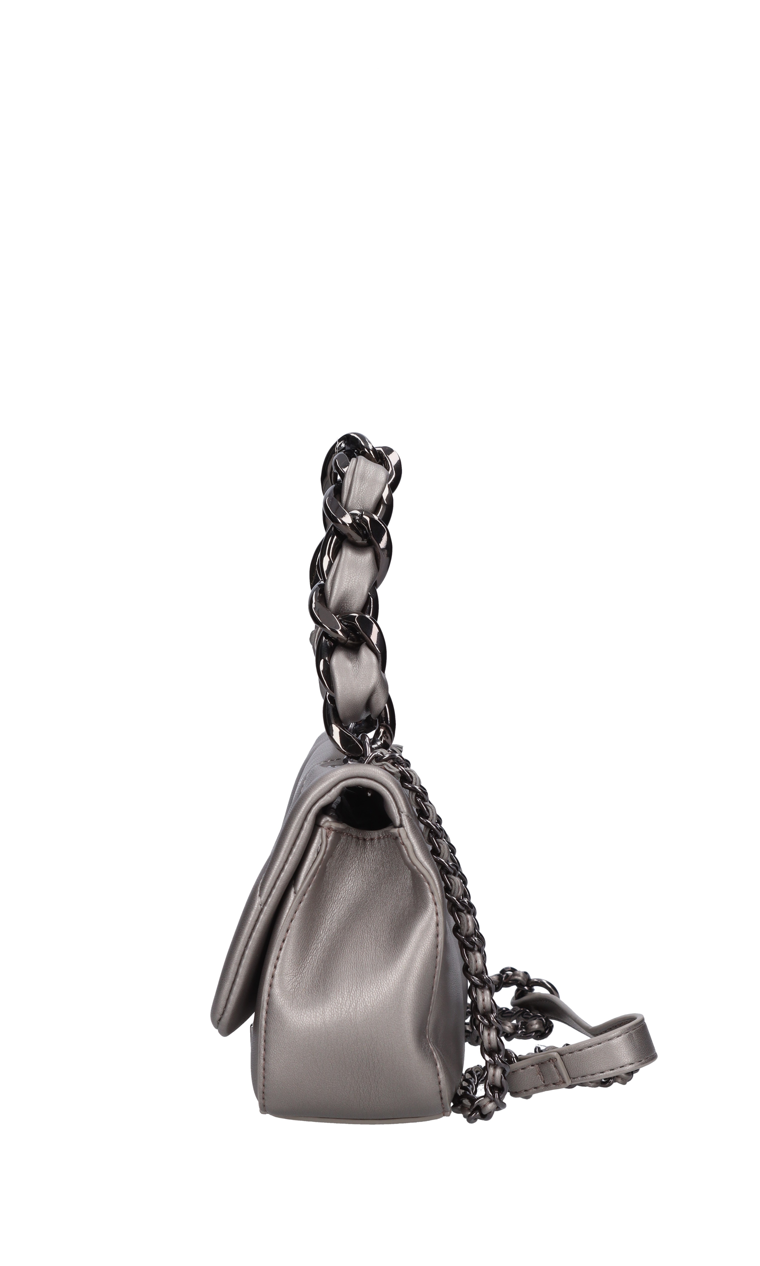 Mini bag in eco-leather. One compartment with snap button closure. Chain and eco-leather shoulder strap. Shipped in a transparent envelope.