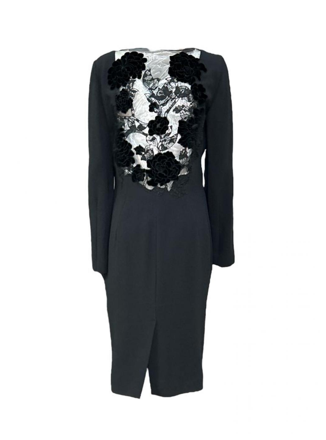 Women's Dress Gai Mattiolo model with semi-transparent back and with hidden side zip closure, characterized by applied decorative stones, slim fit, lined internally.