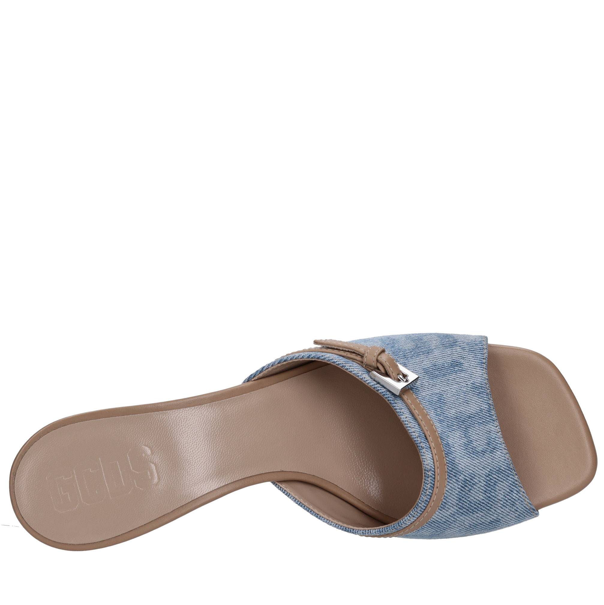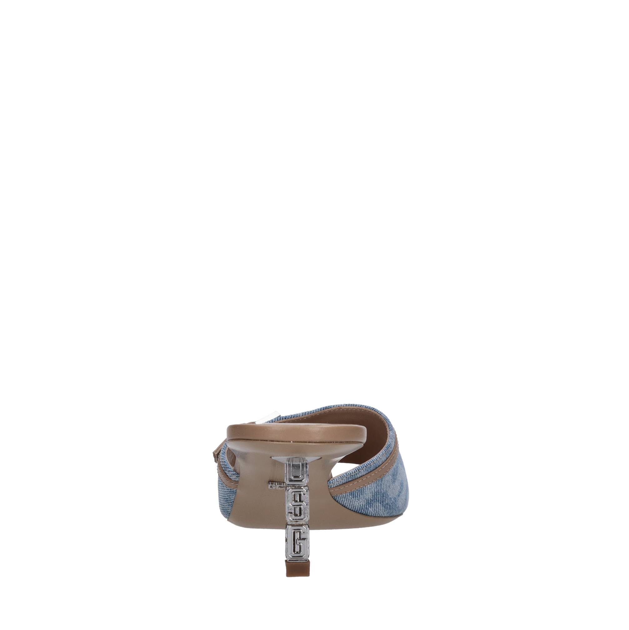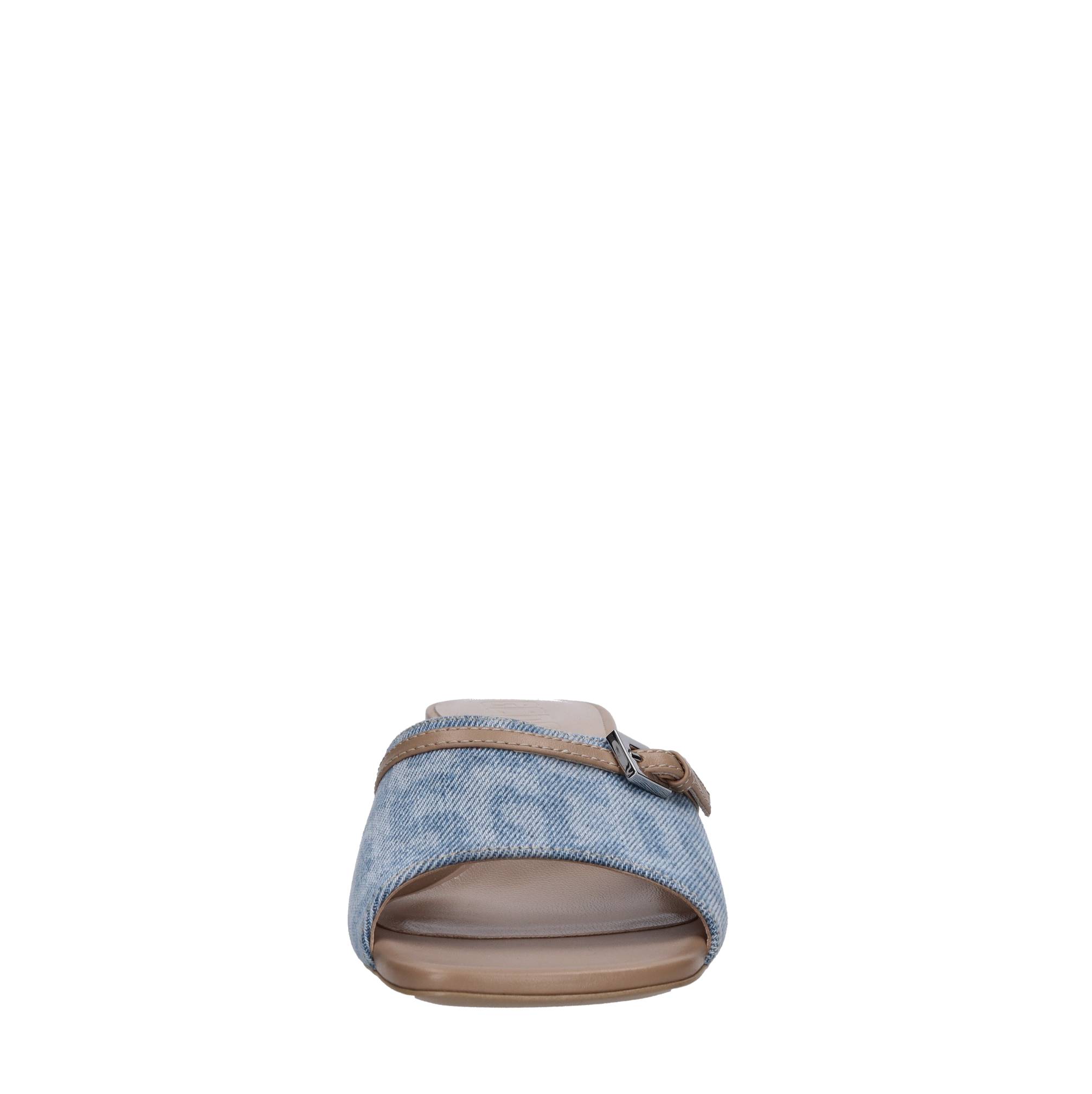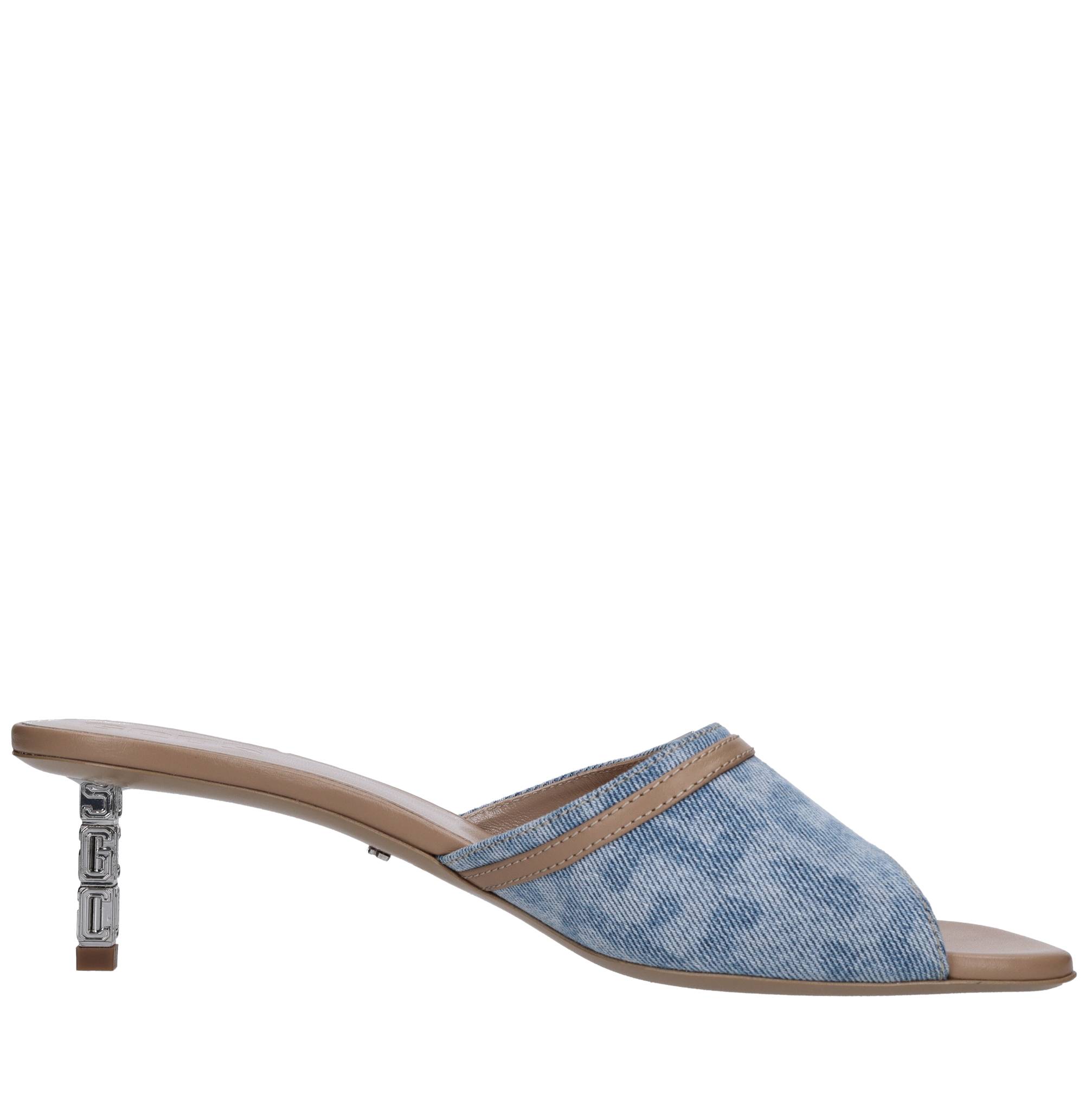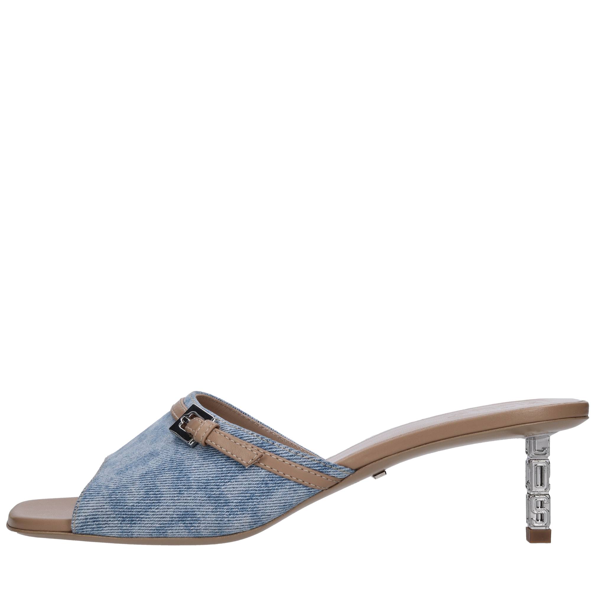 Leather and fabric mules. Leather outsole. Leather inner upper.