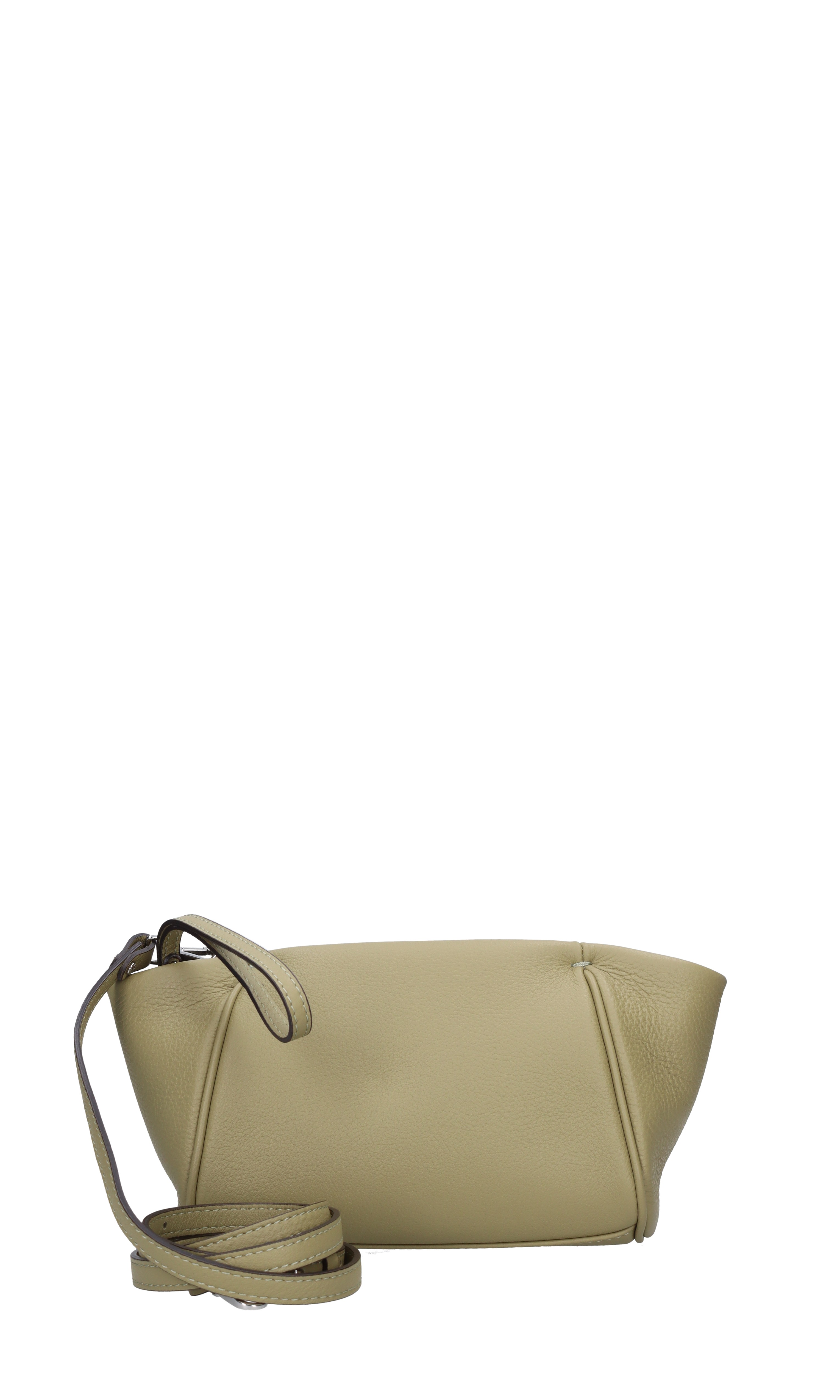 Margarita Pouch in leather. 1 compartment. Zip closure. Adjustable and removable shoulder strap. Wrist strap. Shipped on transparent pouch.